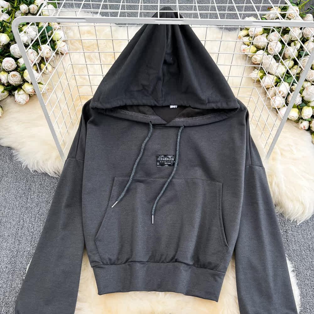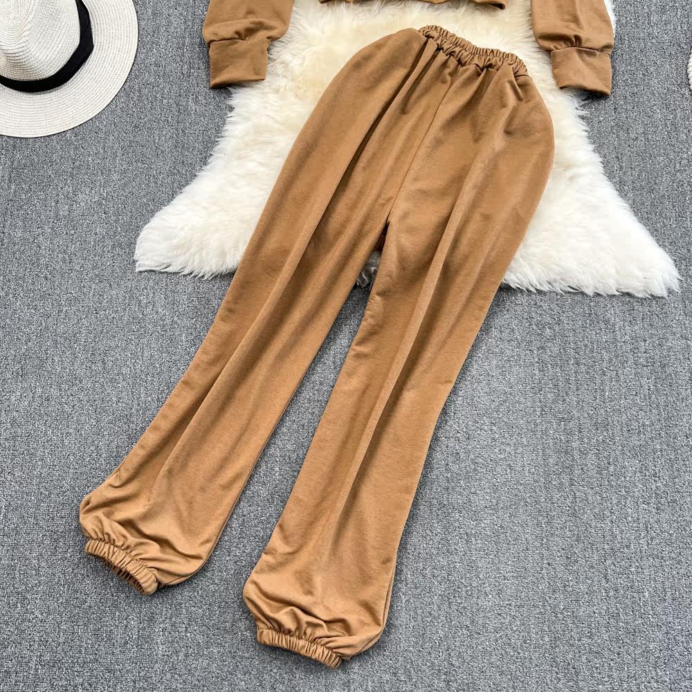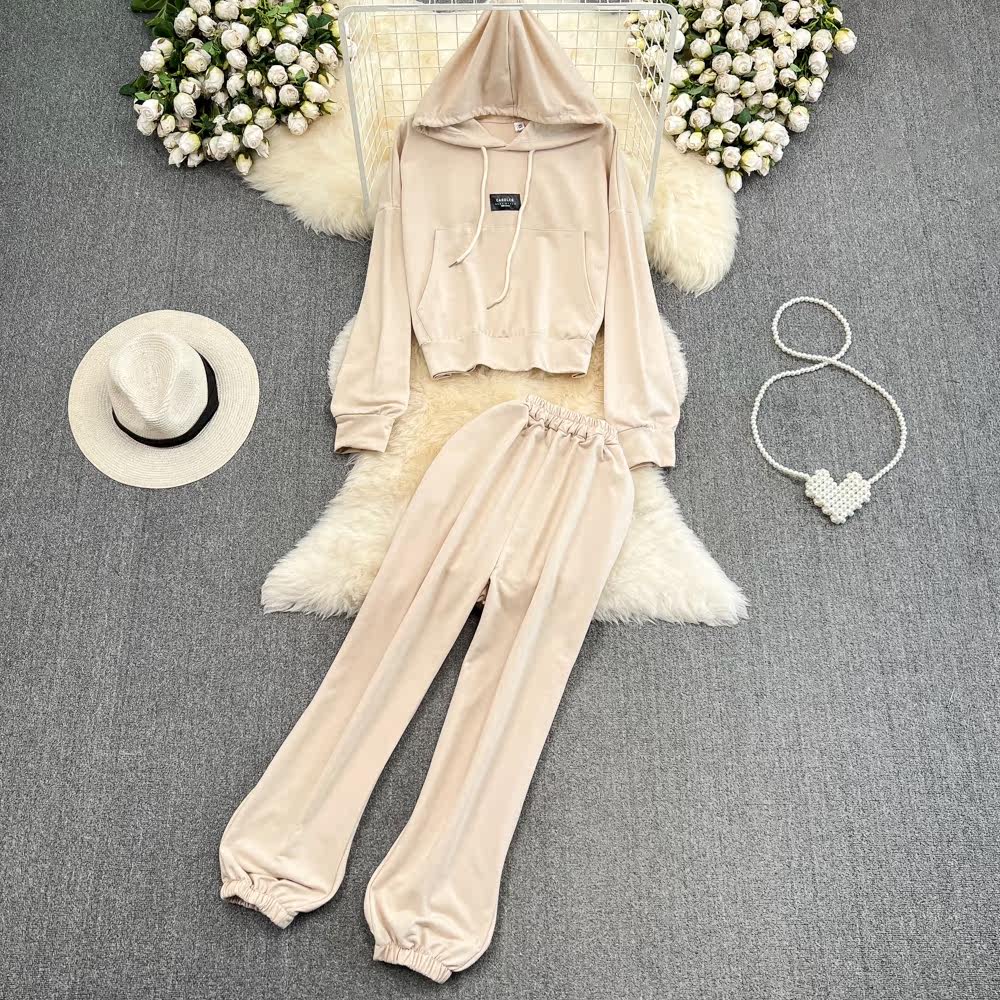 Ретро комплект для отдыха, короткая приталенная толстовка с капюшоном, осенние штаны, высокая талия