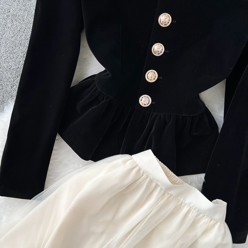 Ретро комплект, приталенный бархатный корсет, куртка, юбка, высокая талия