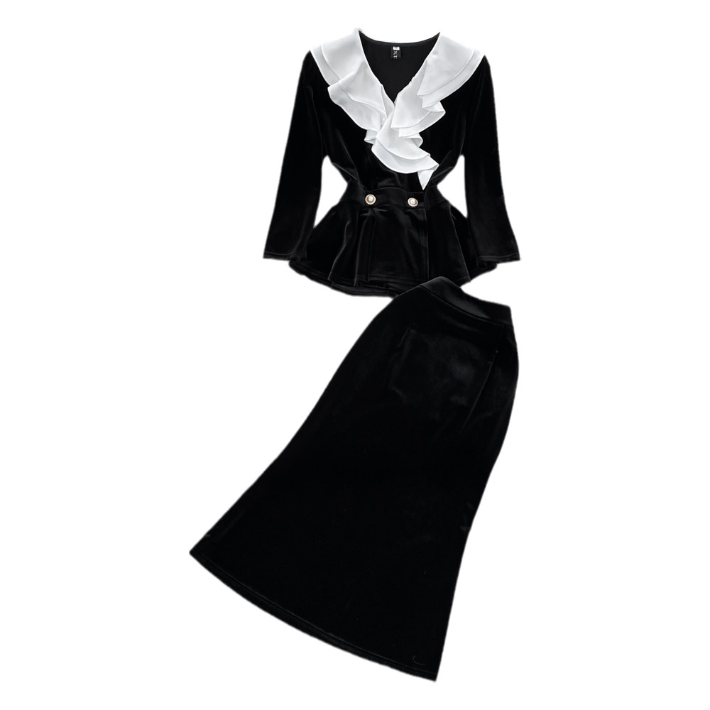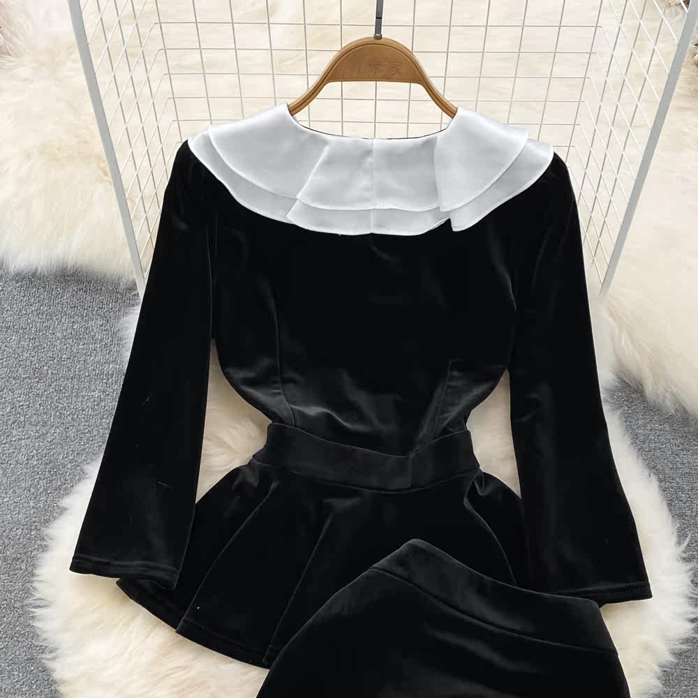 Комплект, приталенная кукла, бархатный корсет, утеплённая рубашка, поясная сумка, юбка, высокая талия, крой «рыбий хвост»
