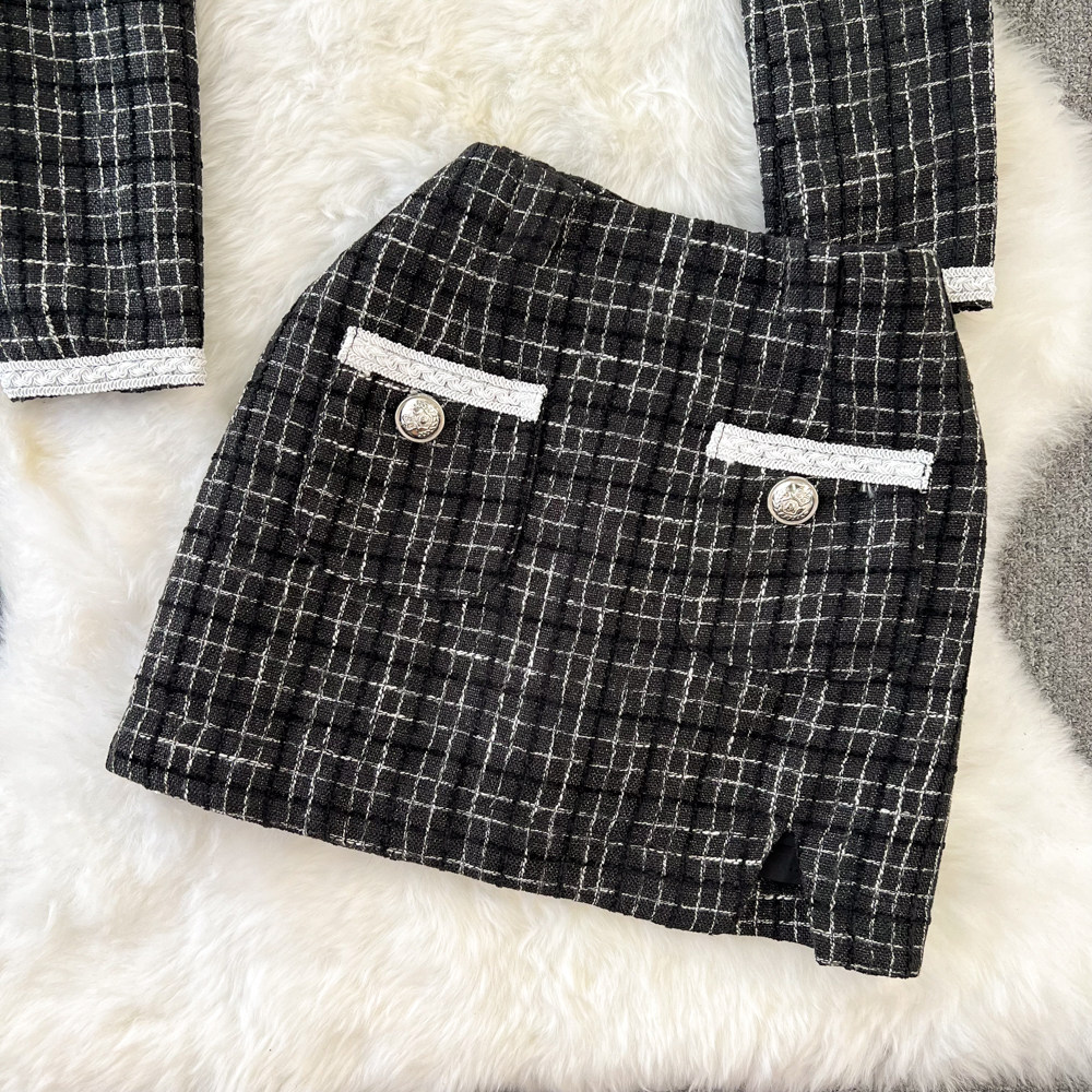 Ретро комплект, цветная куртка, поясная сумка, юбка, в стиле Шанель, высокая талия