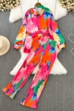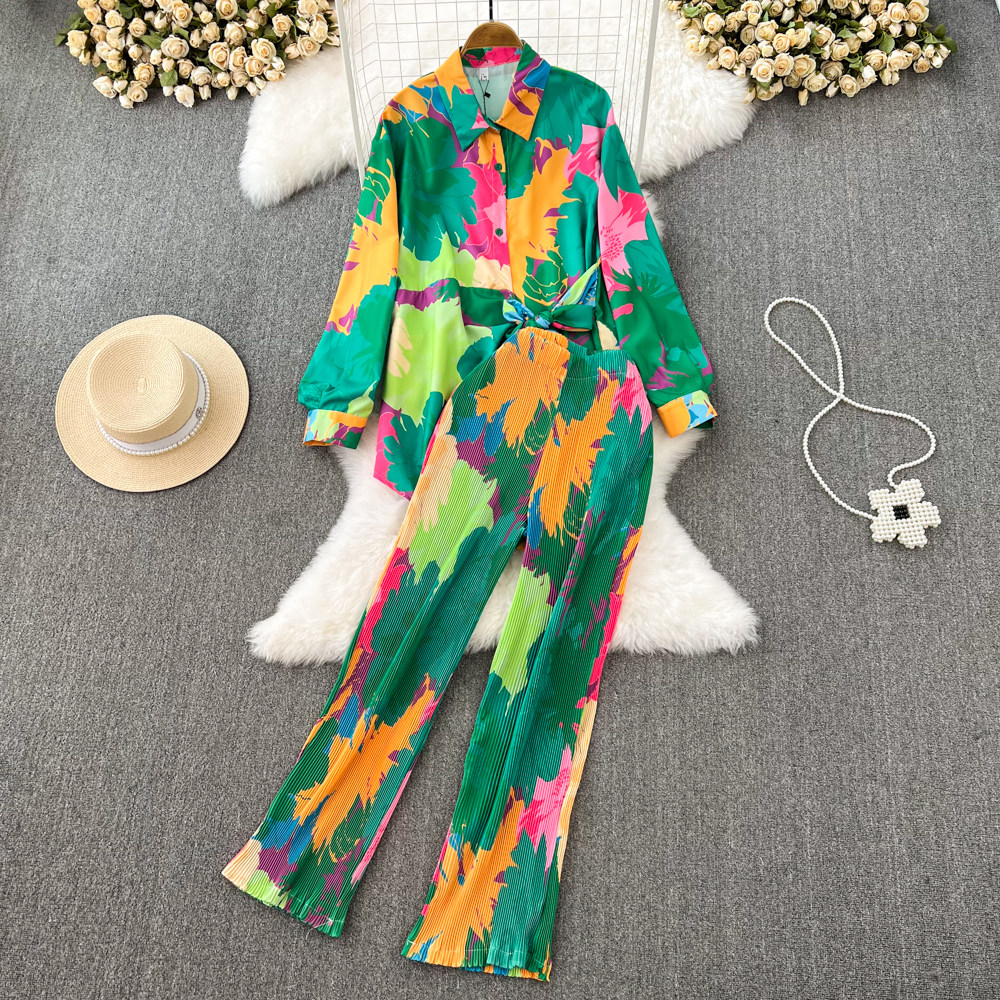 Комплект для отдыха, лонгслив, приталенная рубашка, штаны, высокая талия