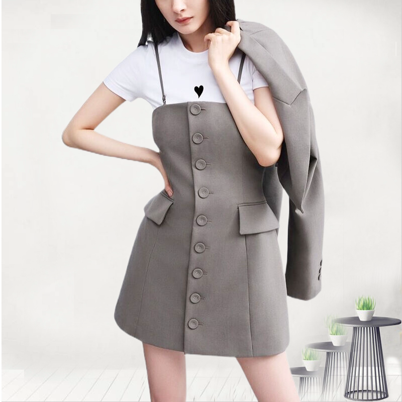 Костюм, топ с чашечками, платье без рукавов, осенний комплект, городской стиль, 2023