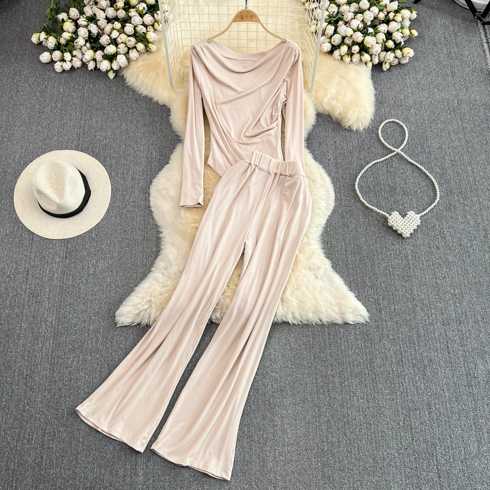 Ретро комплект, футболка, штаны, облегающий крой, высокая талия