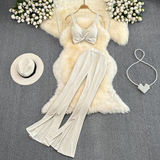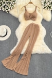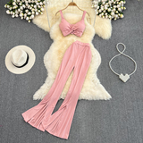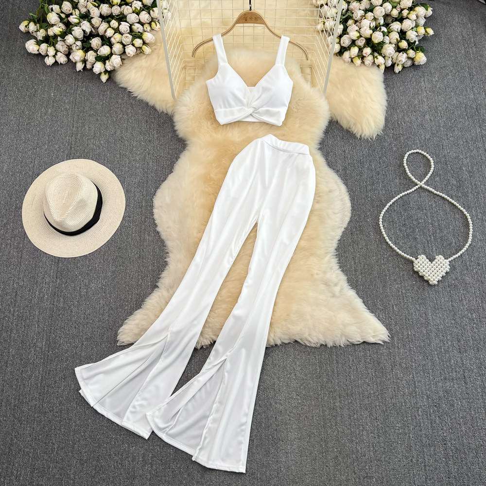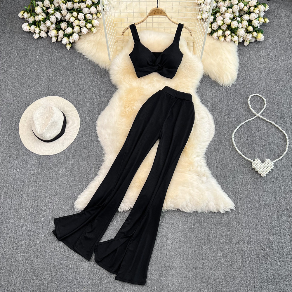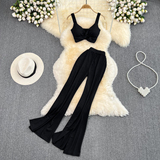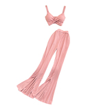 Сексуальный комплект, приталенный топ с чашечками, штаны, высокая талия, свободный прямой крой