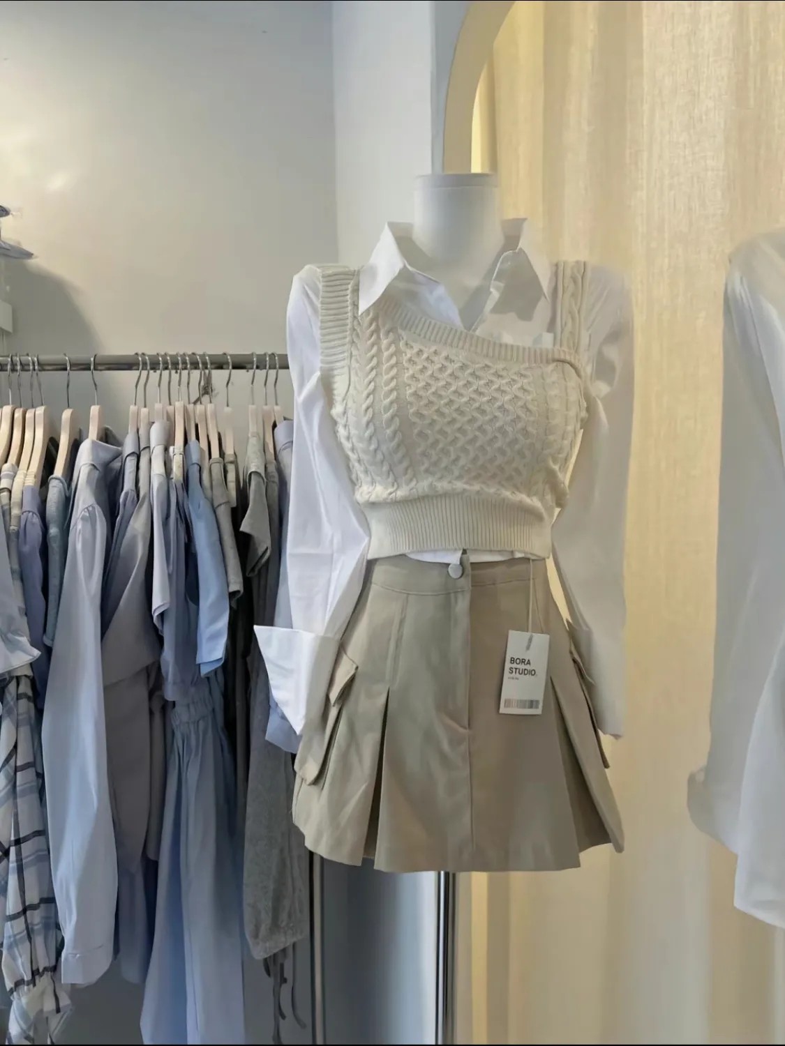 Комплект, трикотажный жилет, рубашка, мини-юбка, изысканный стиль