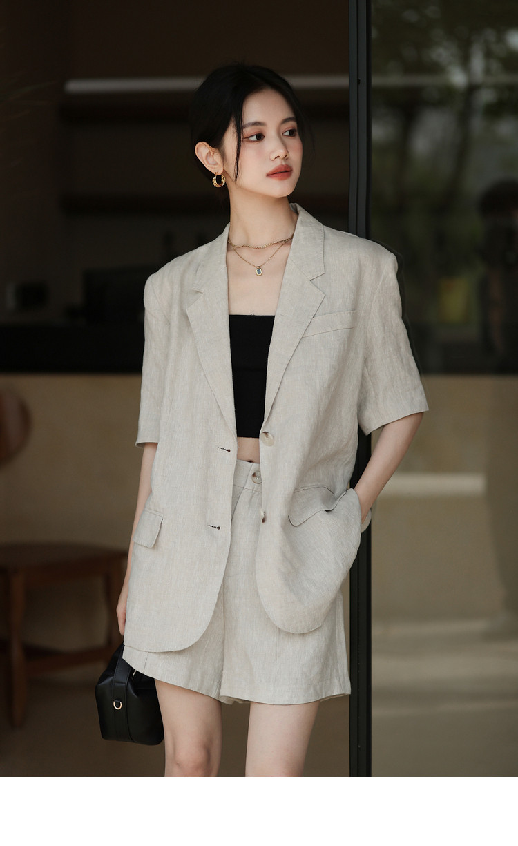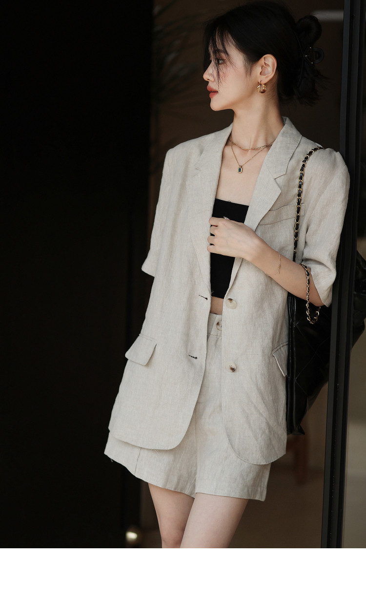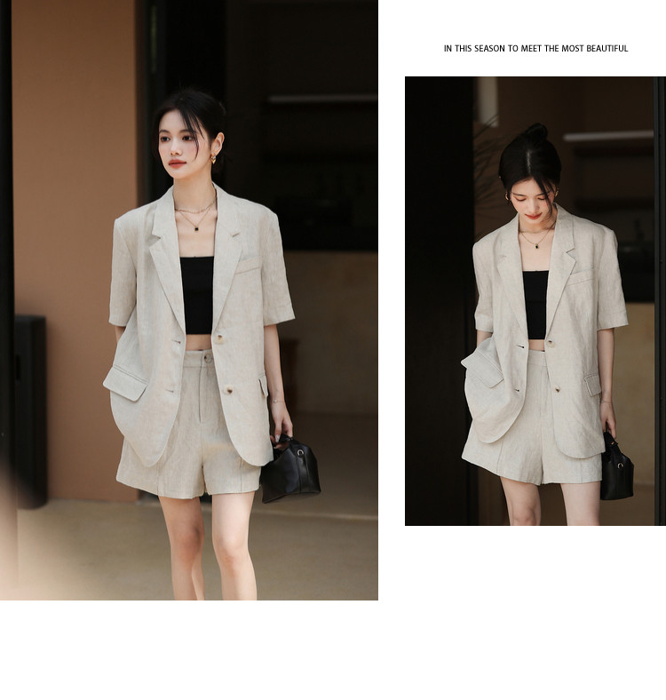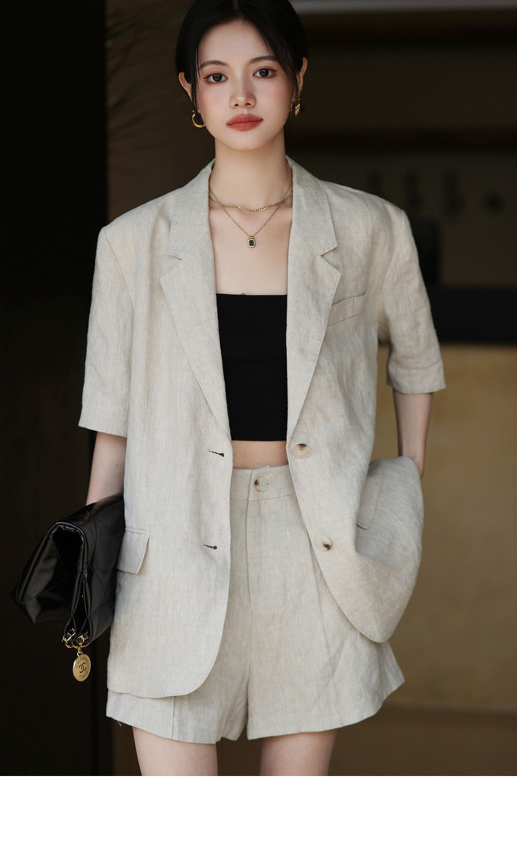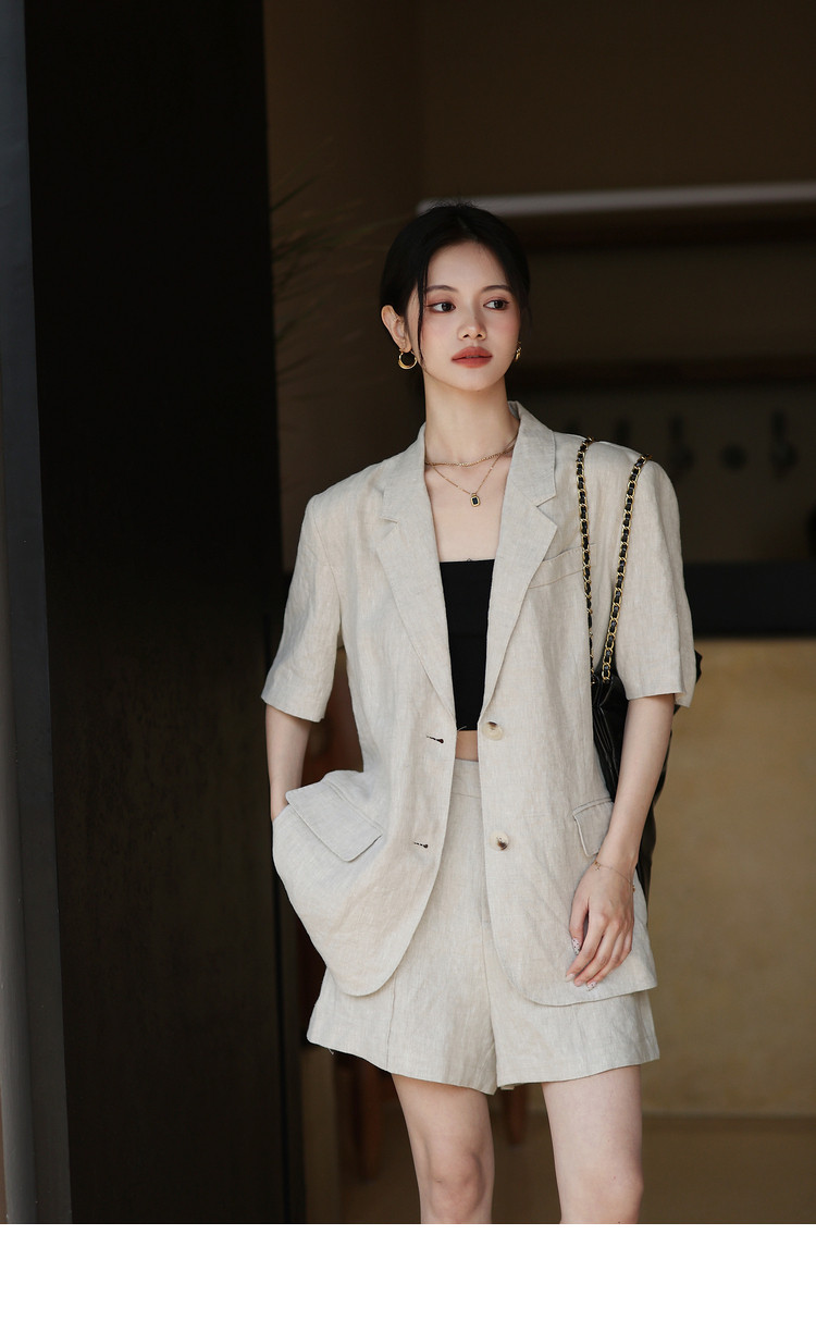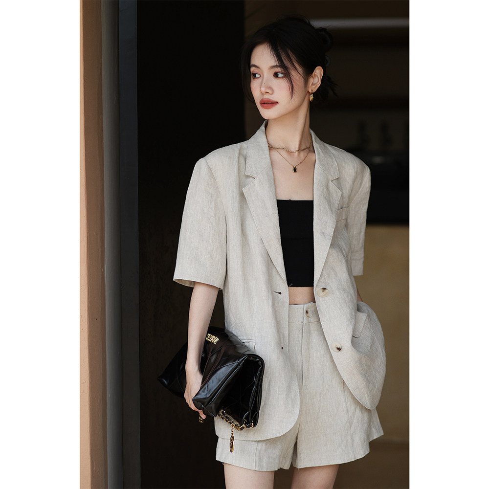 梅子熟了 Бежевый цветной костюм, шорты, куртка, комплект, легкий роскошный стиль, изысканный стиль