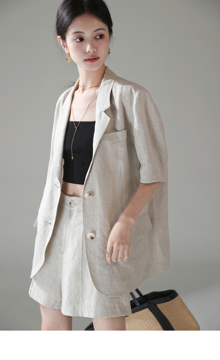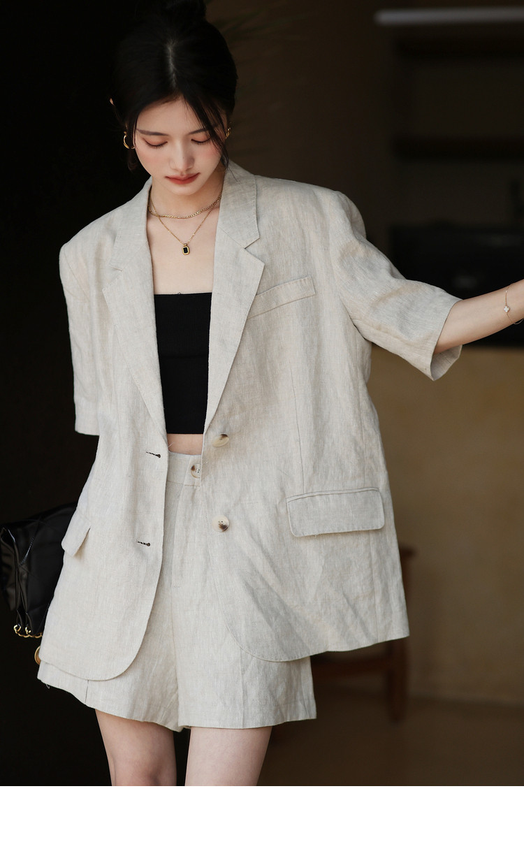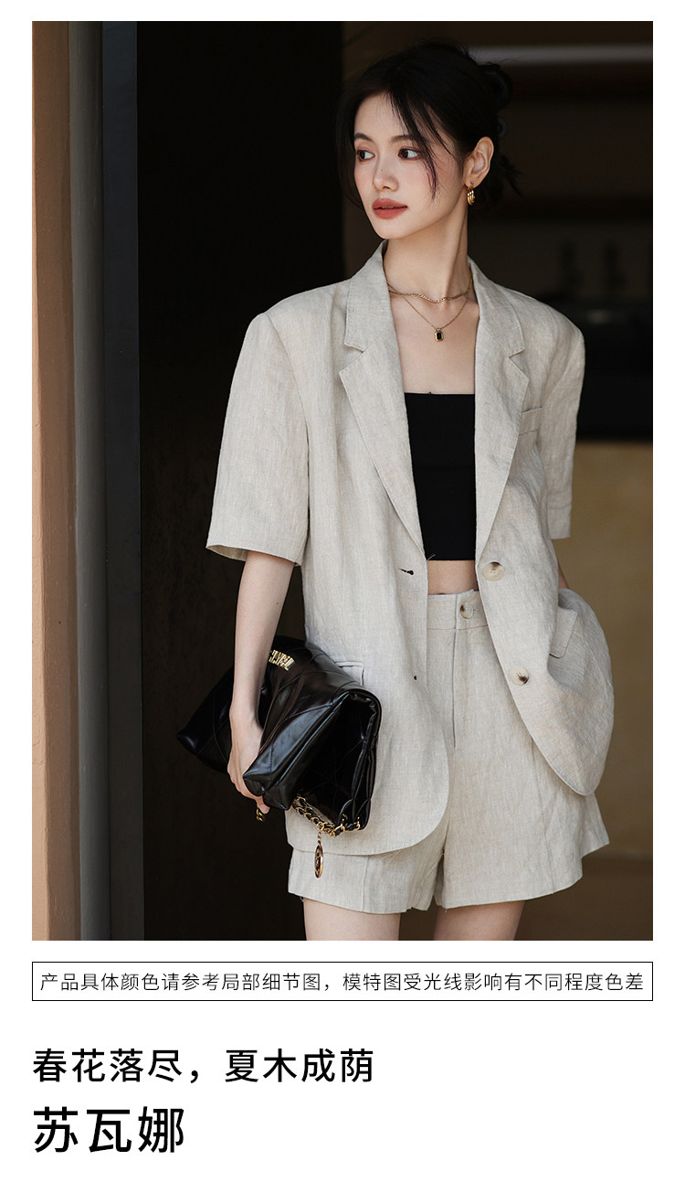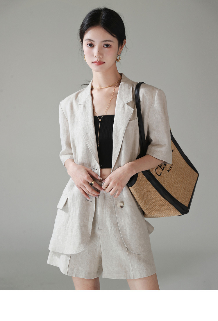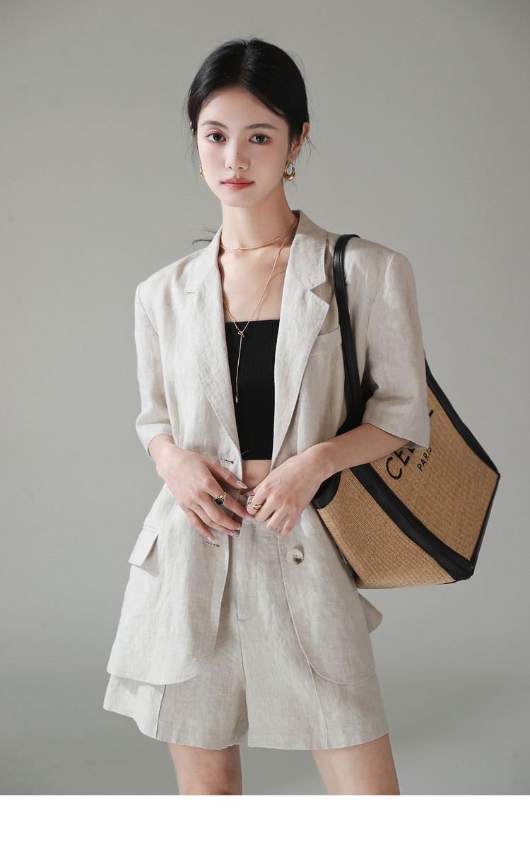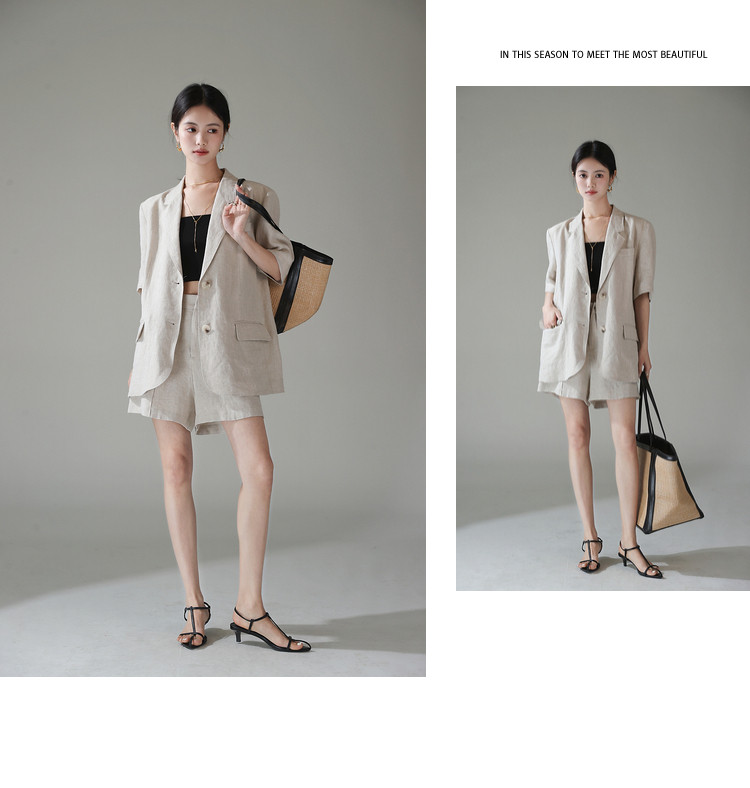梅子熟了 Бежевый цветной костюм, шорты, куртка, комплект, легкий роскошный стиль, изысканный стиль