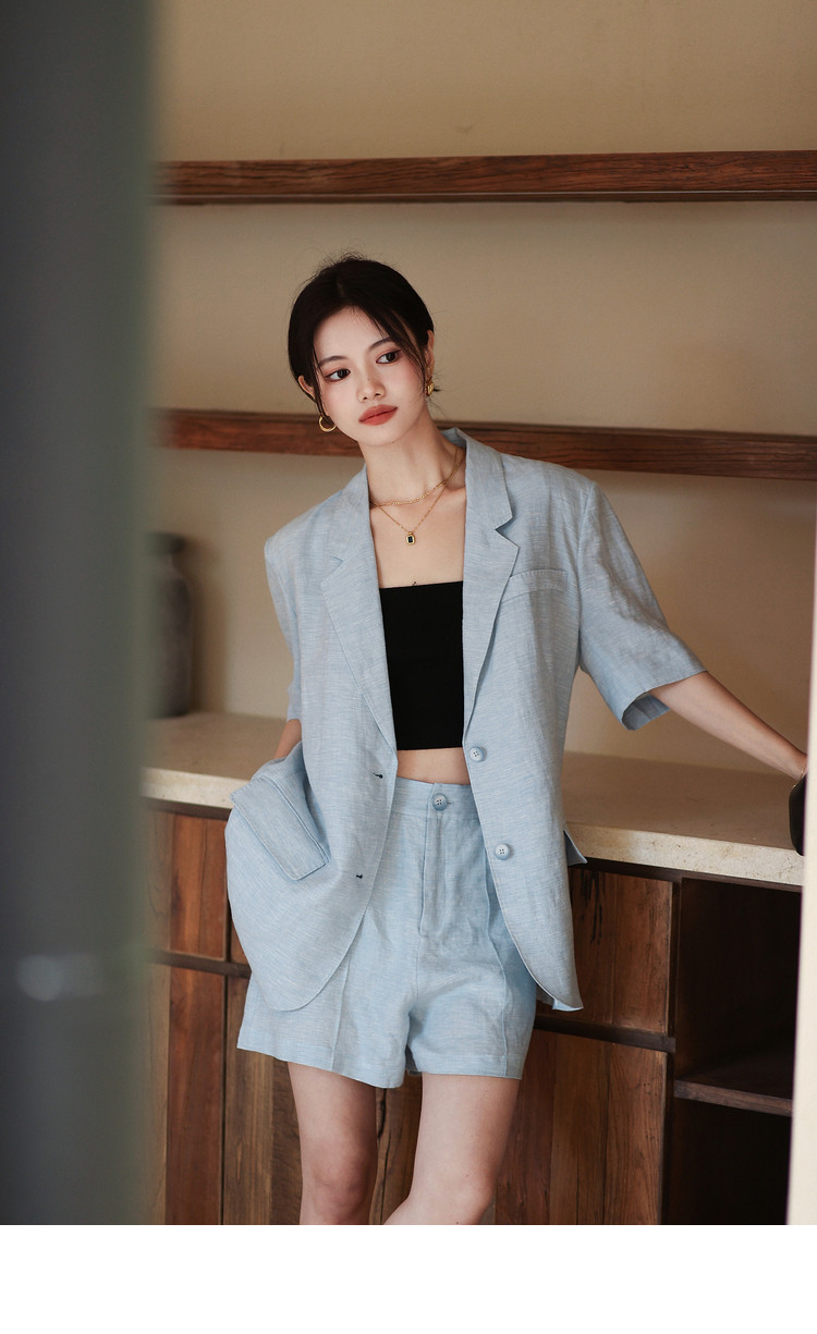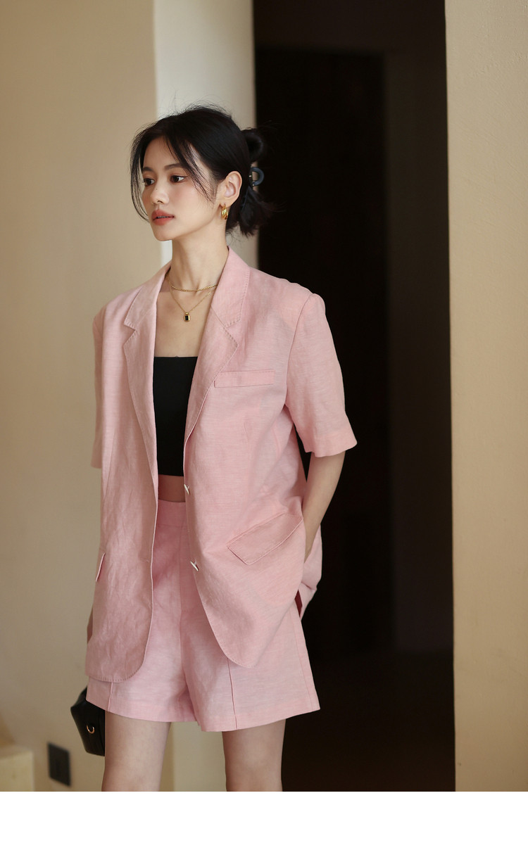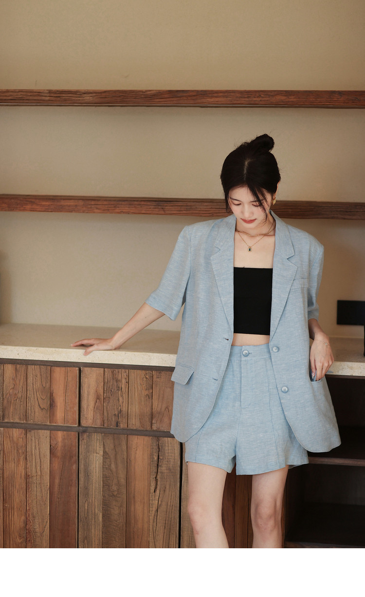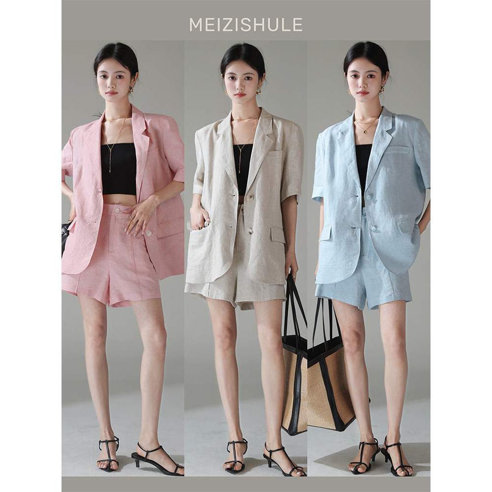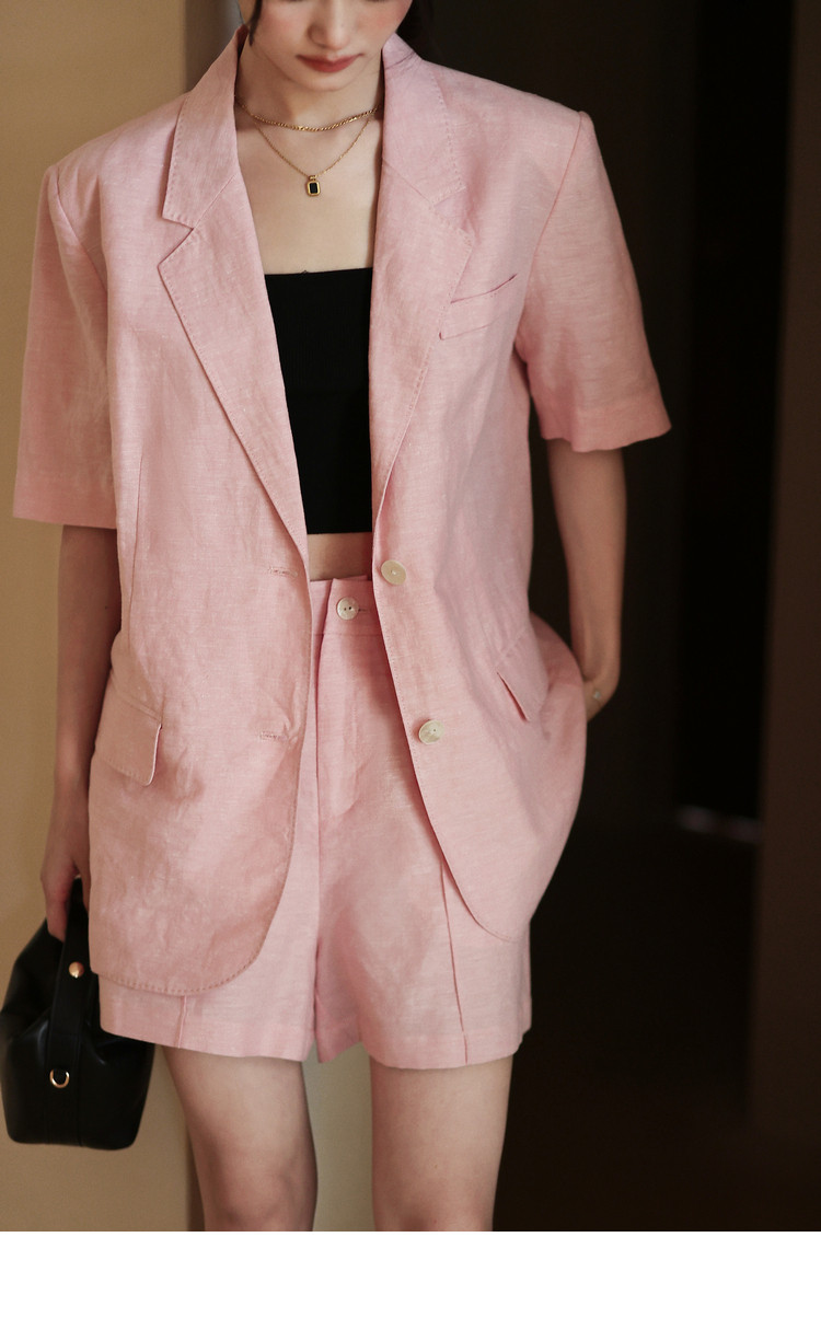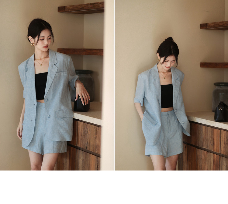 梅子熟了 Бежевый цветной костюм, шорты, куртка, комплект, легкий роскошный стиль, изысканный стиль