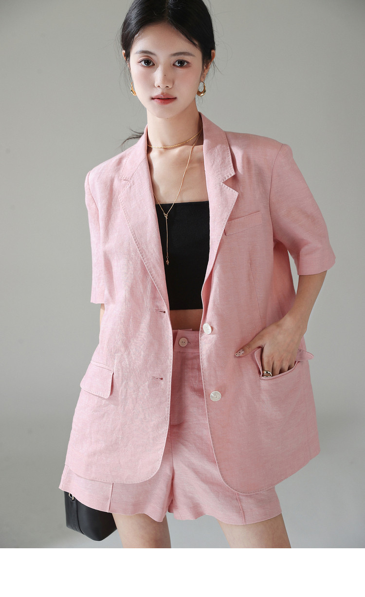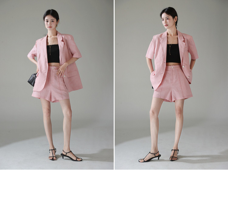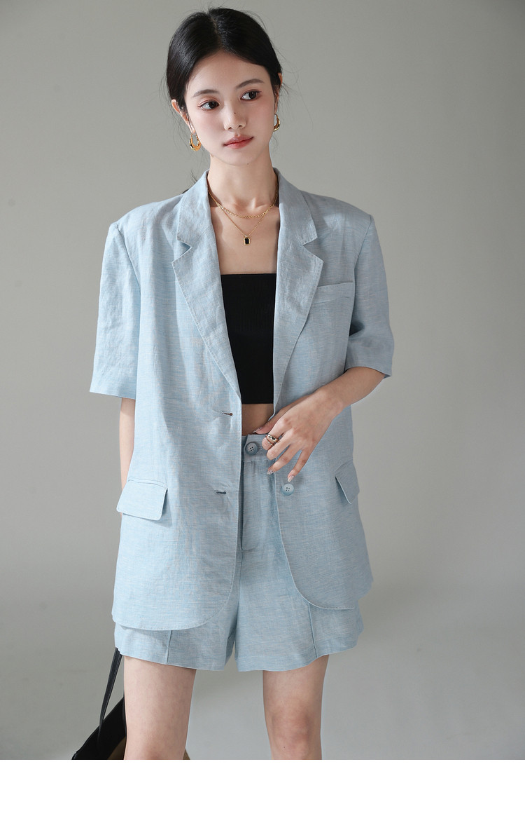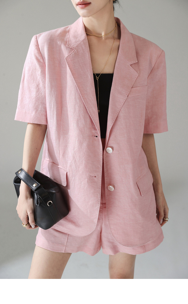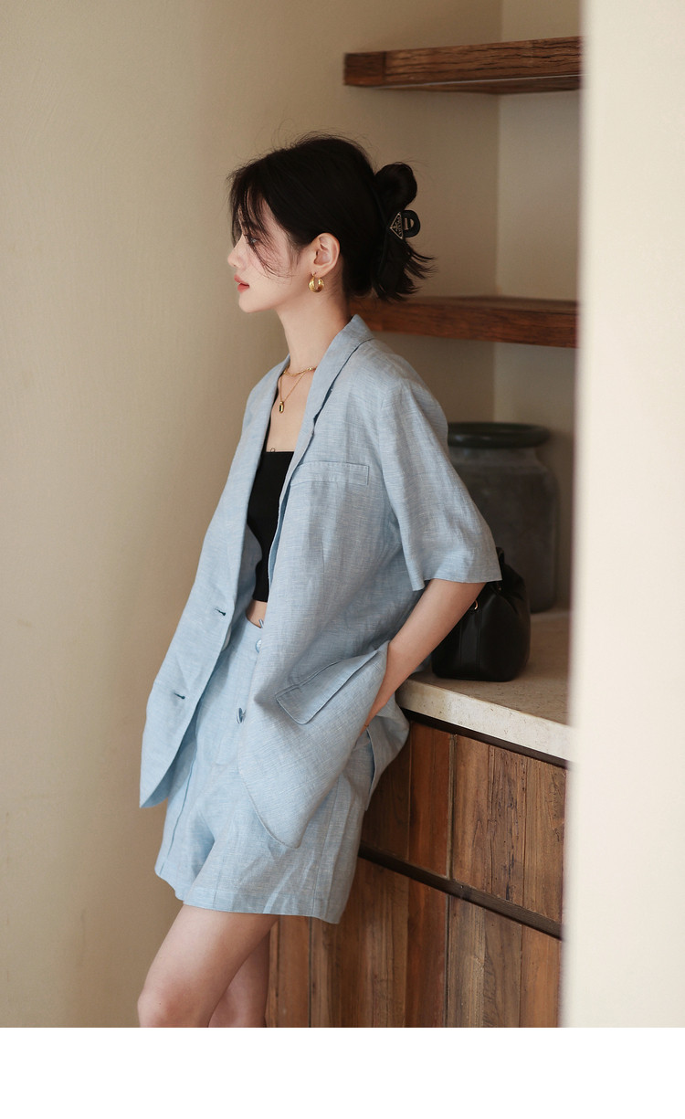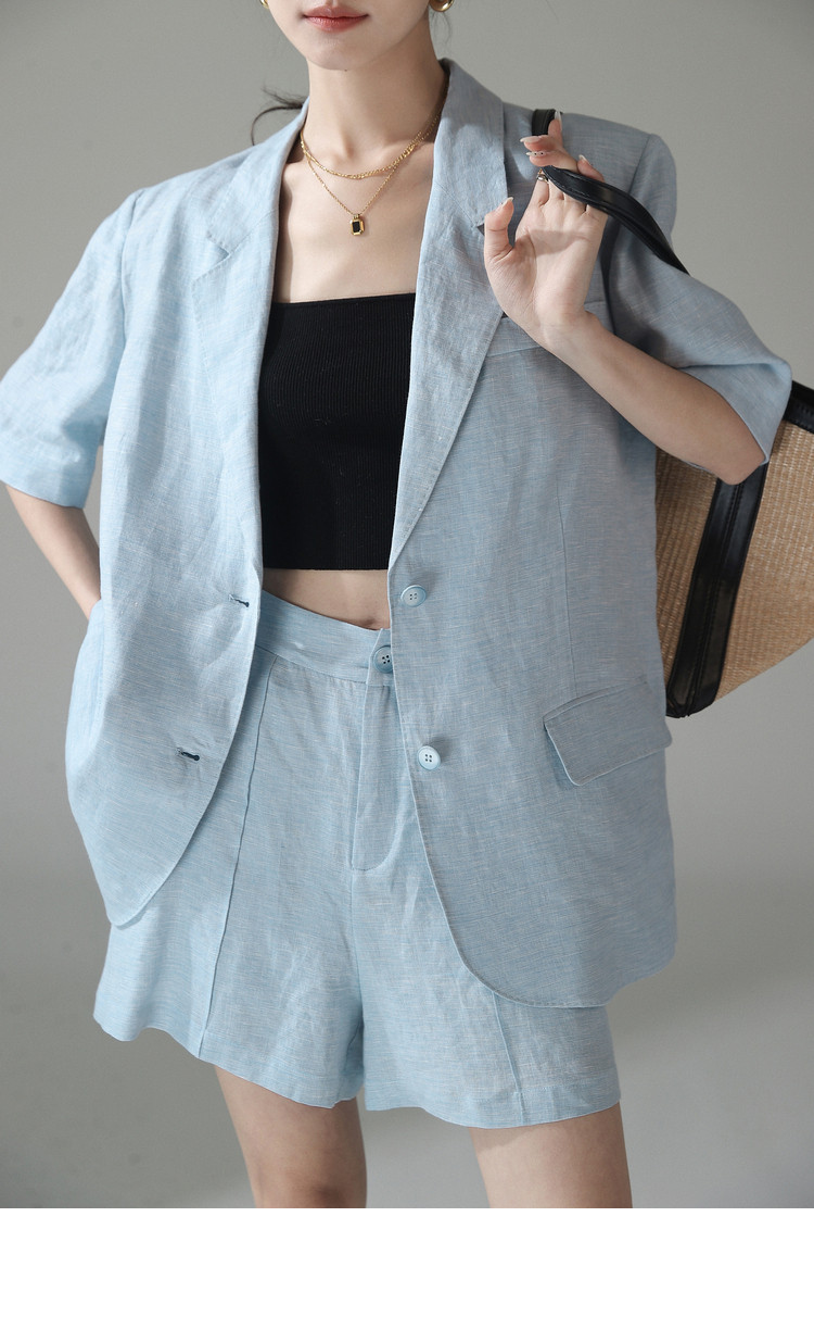 梅子熟了 Бежевый цветной костюм, шорты, куртка, комплект, легкий роскошный стиль, изысканный стиль