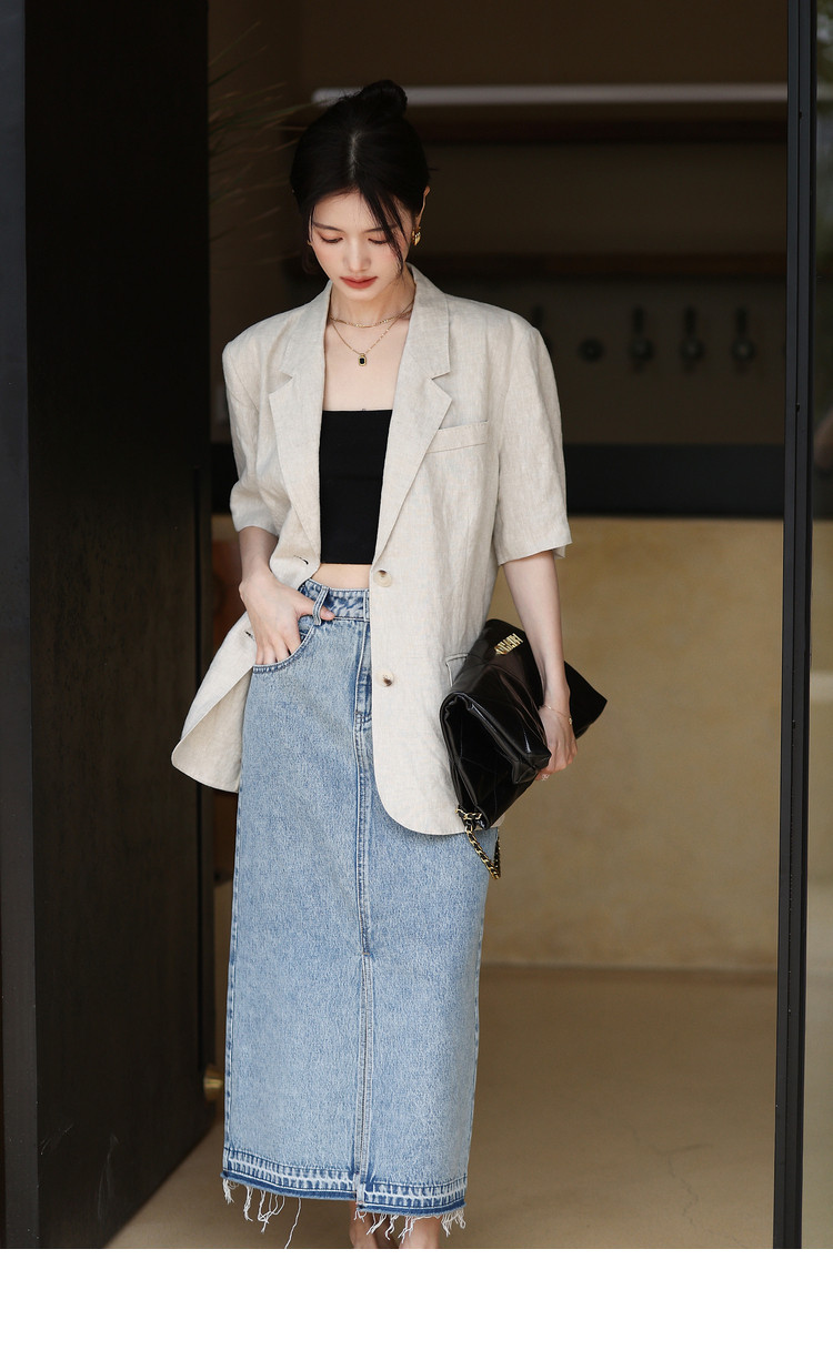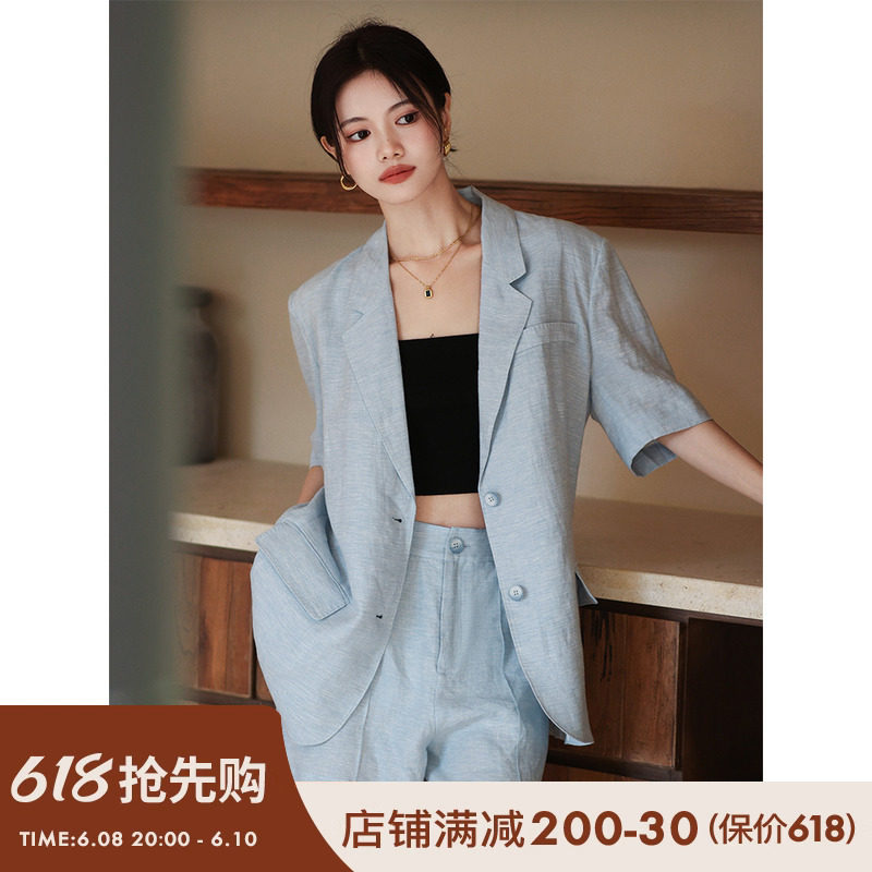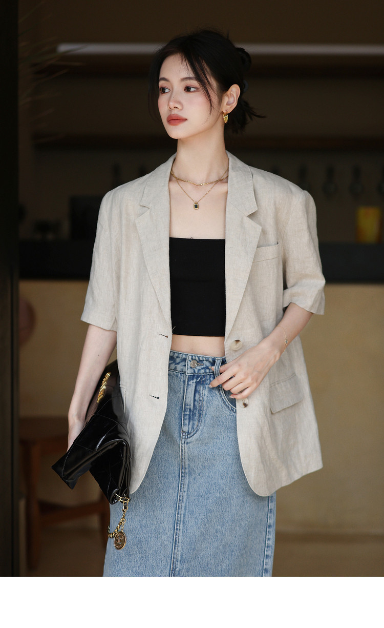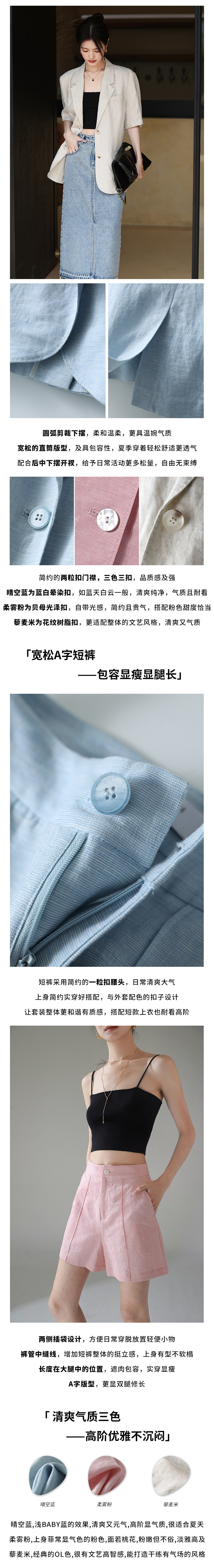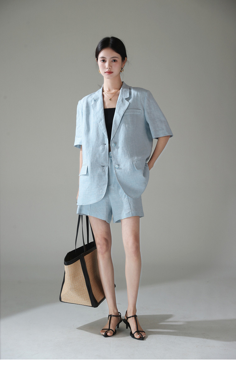梅子熟了 Бежевый цветной костюм, шорты, куртка, комплект, легкий роскошный стиль, изысканный стиль