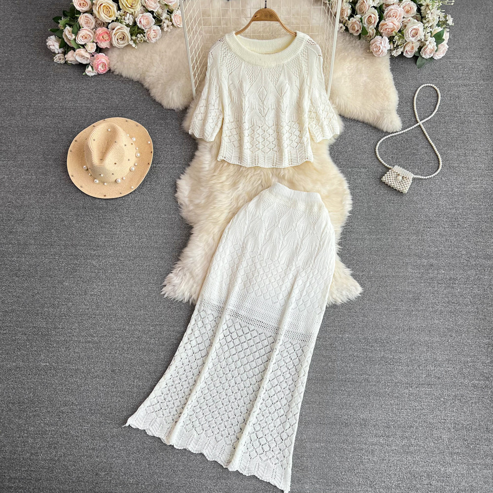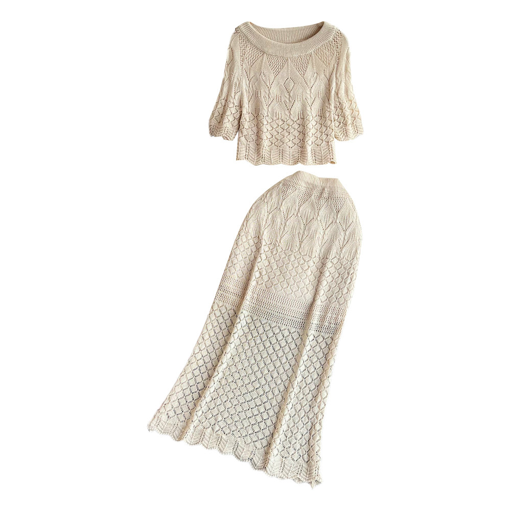 Элегантный шелковый комплект, трикотажная поясная сумка с круглым воротником, юбка, высокая талия, крой «рыбий хвост»