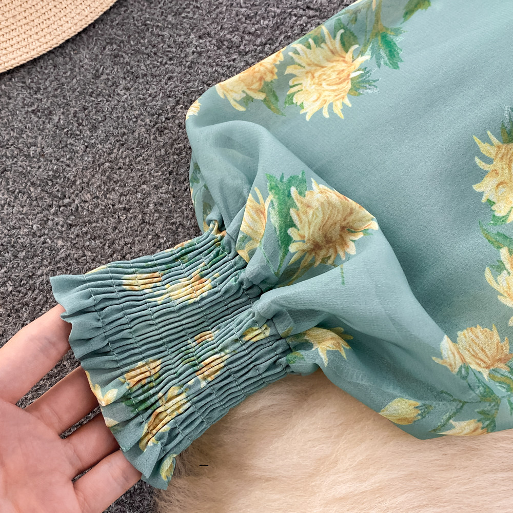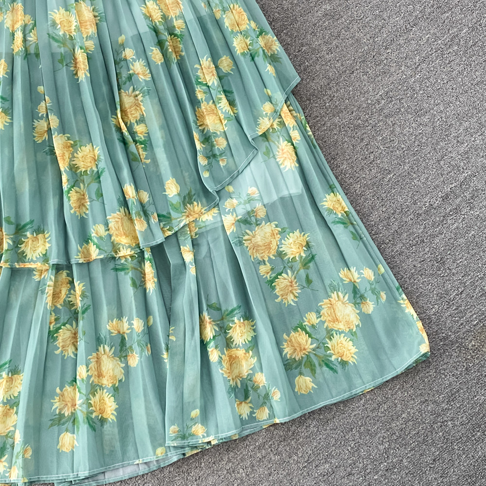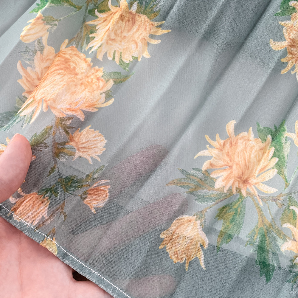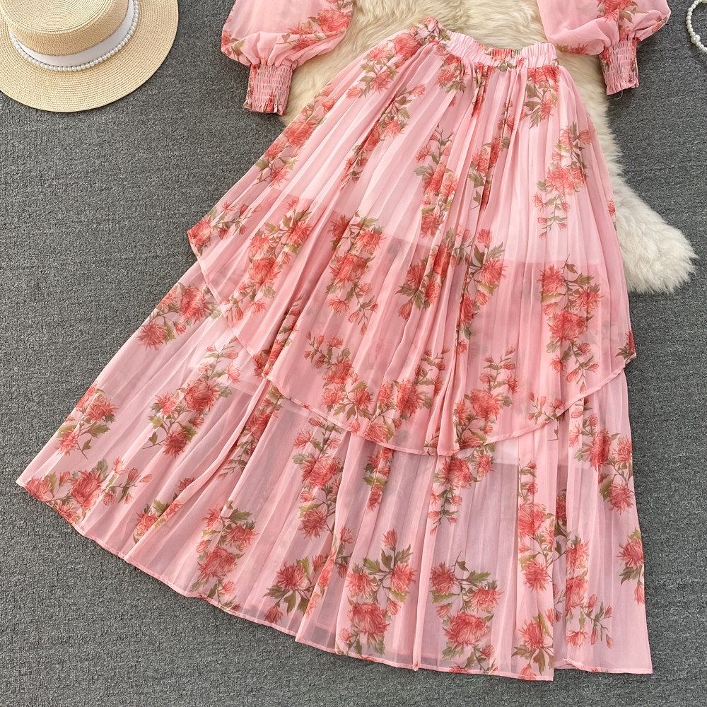 Комплект, фонарь, лонгслив с бантиком, шифоновая юбка, свободный крой, шифоновый с принтом, высокая талия