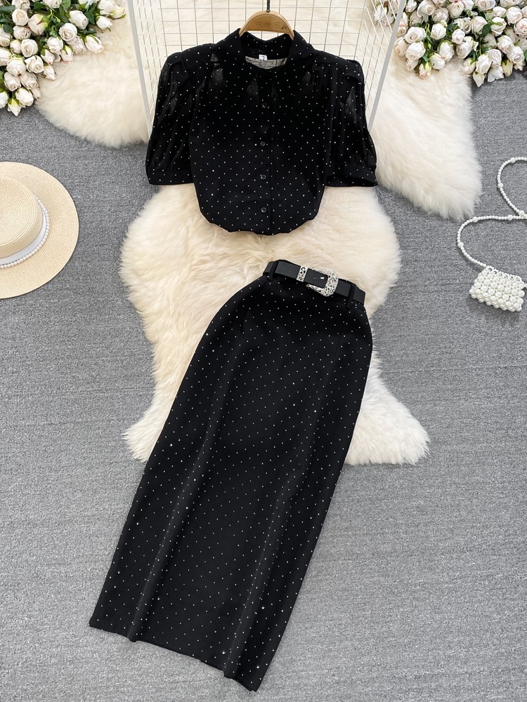 Модный комплект, рубашка, стиль, придает объем, короткий рукав, высокая талия