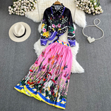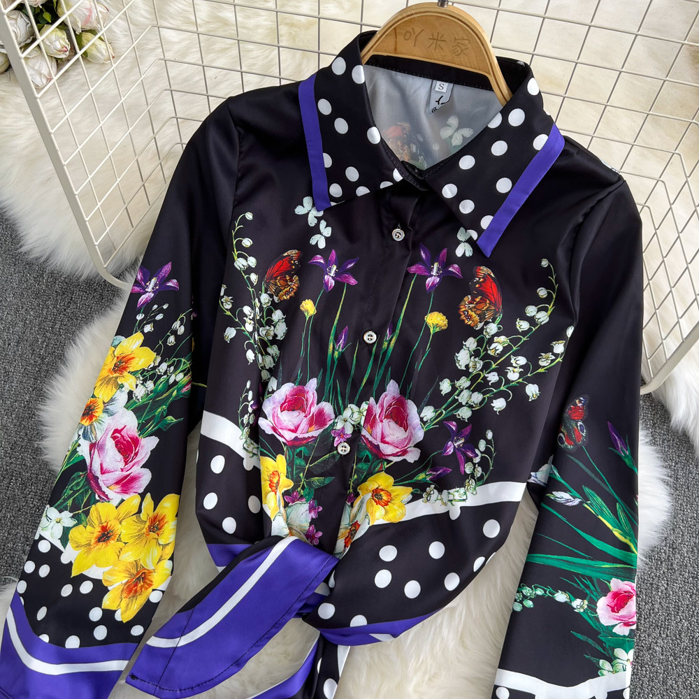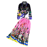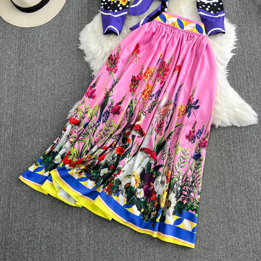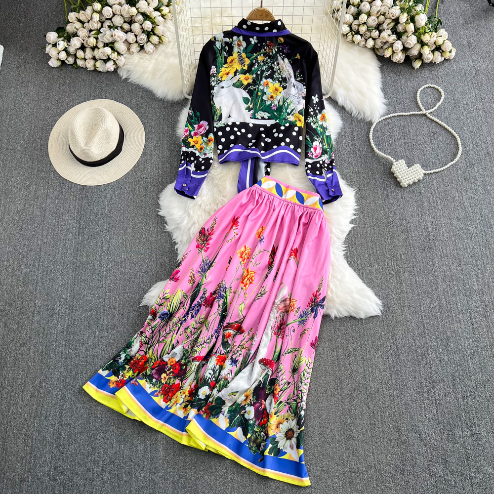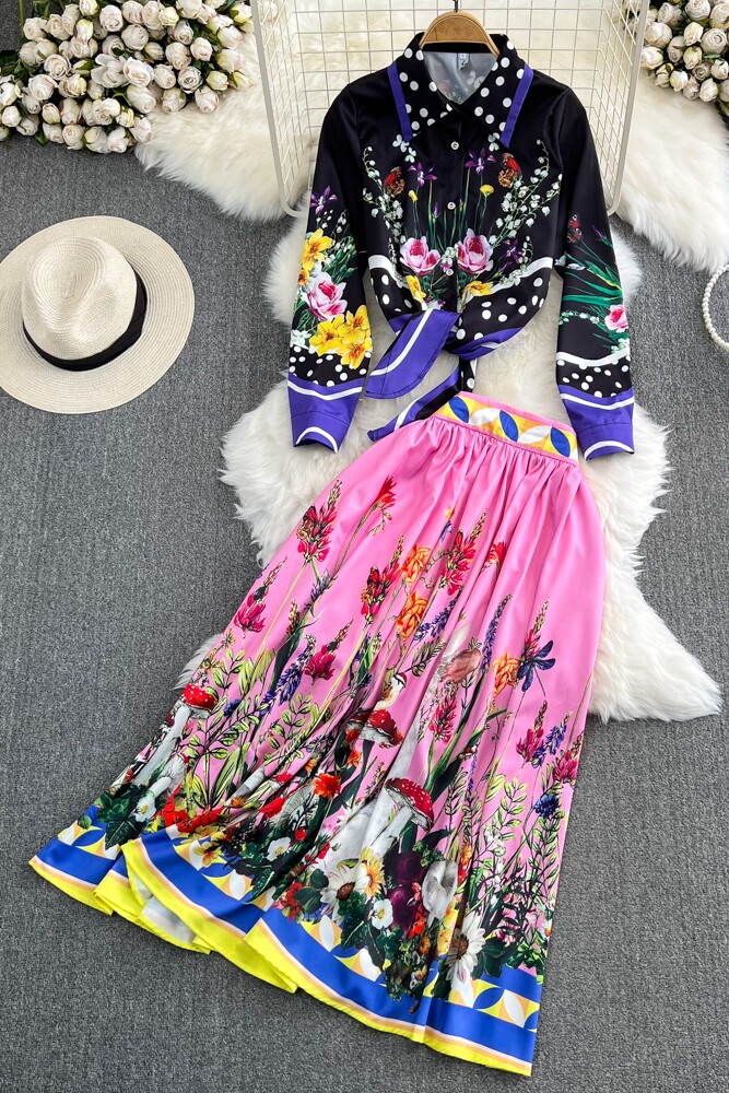 Комплект, ретро лонгслив, рубашка, юбка, свободный крой, высокая талия