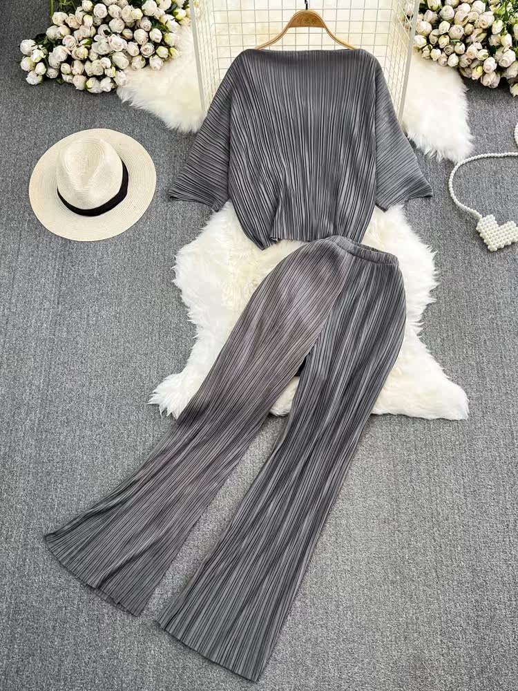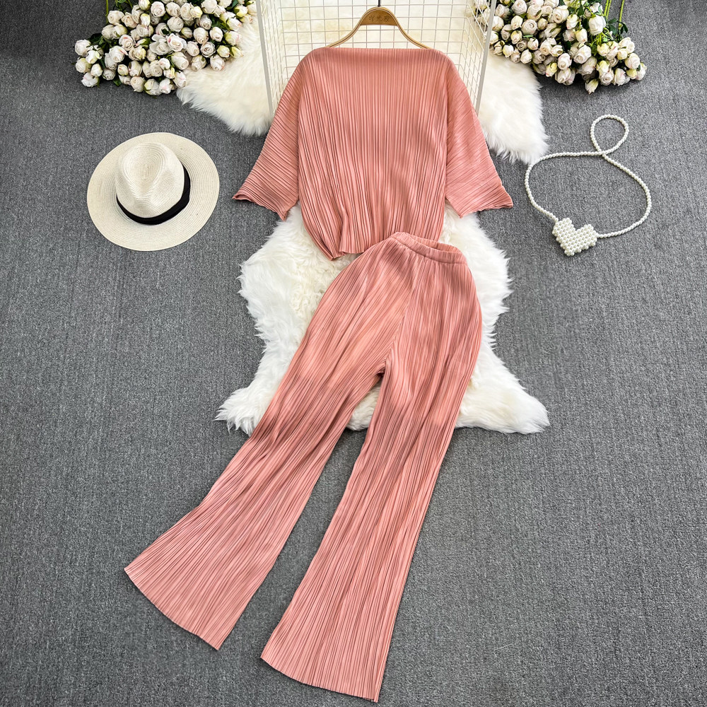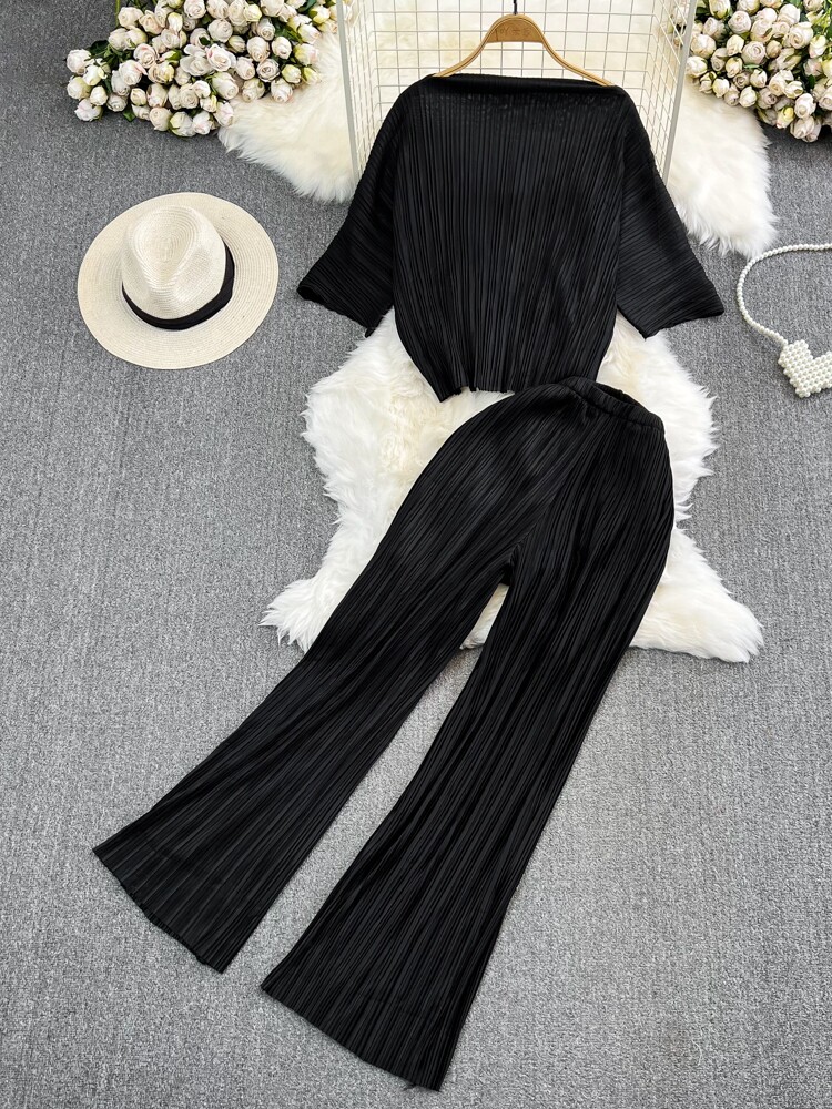 Комплект, приталенные штаны, открытые плечи, свободный крой, высокая талия