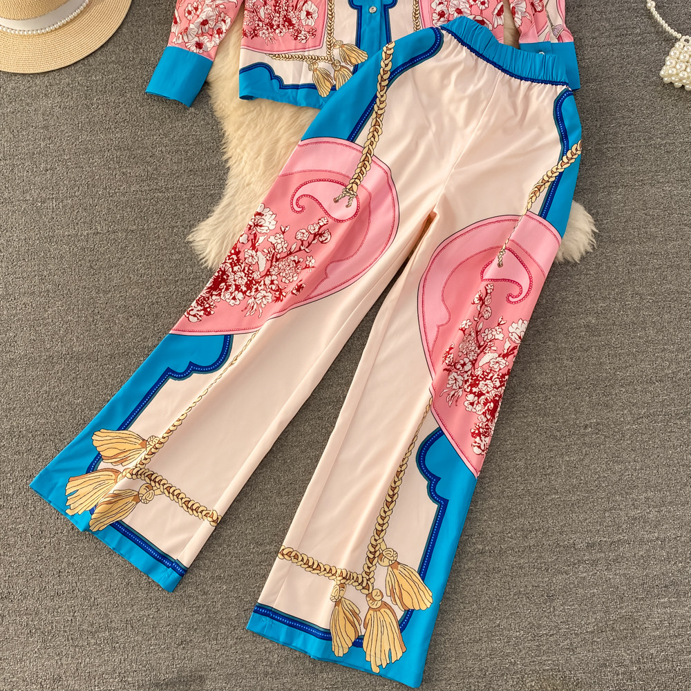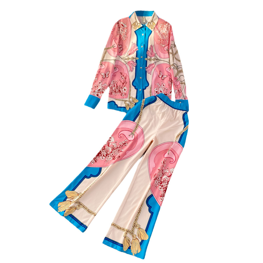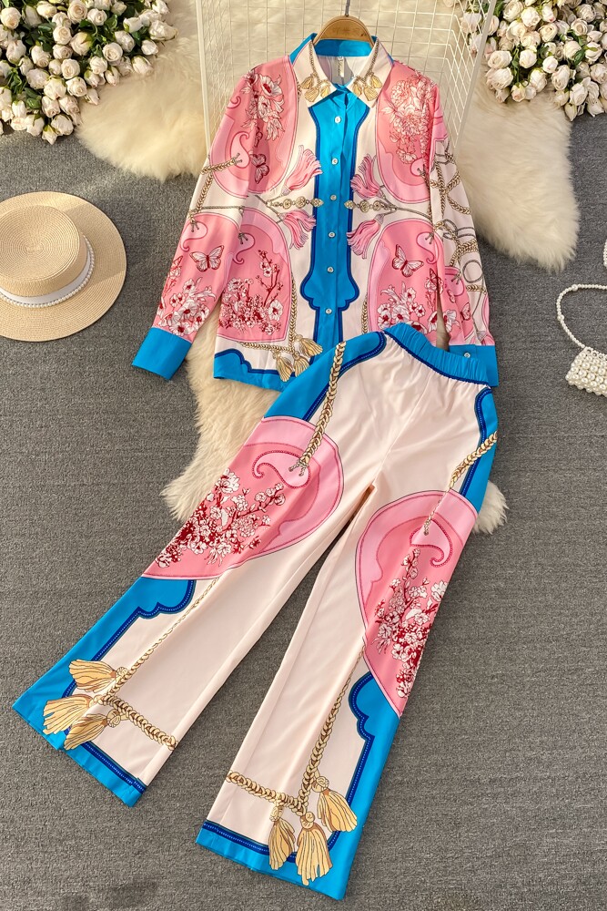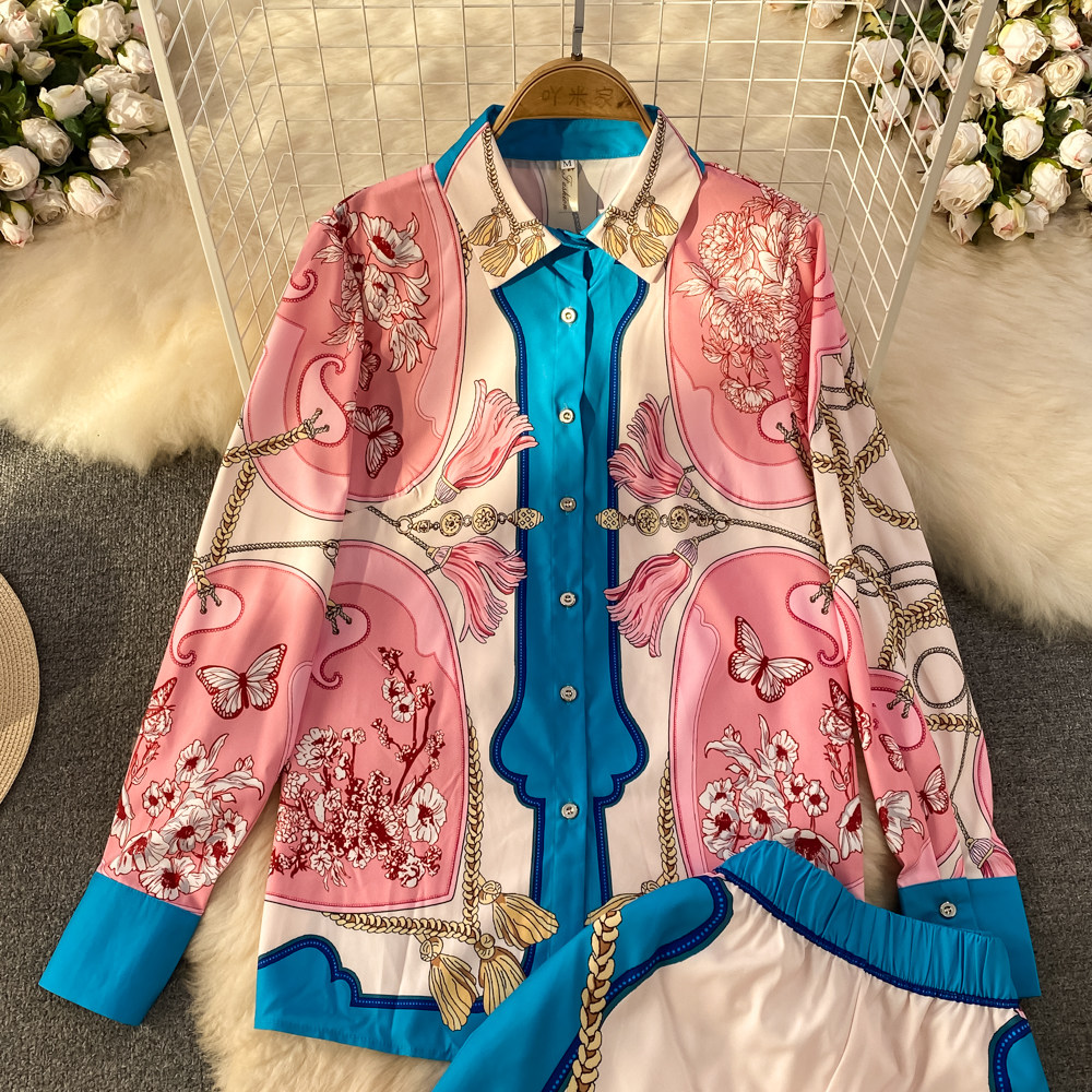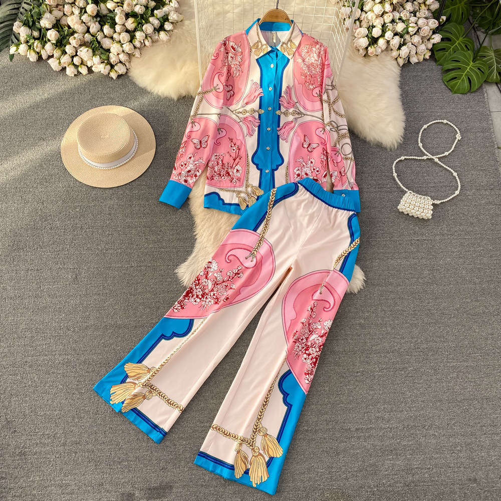 Ретро комплект, рубашка, приталенные штаны, свободный крой, высокая талия