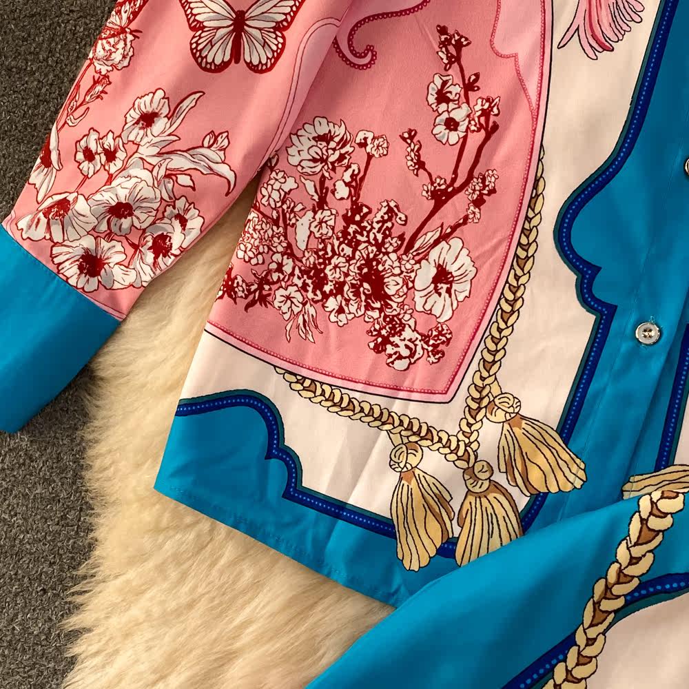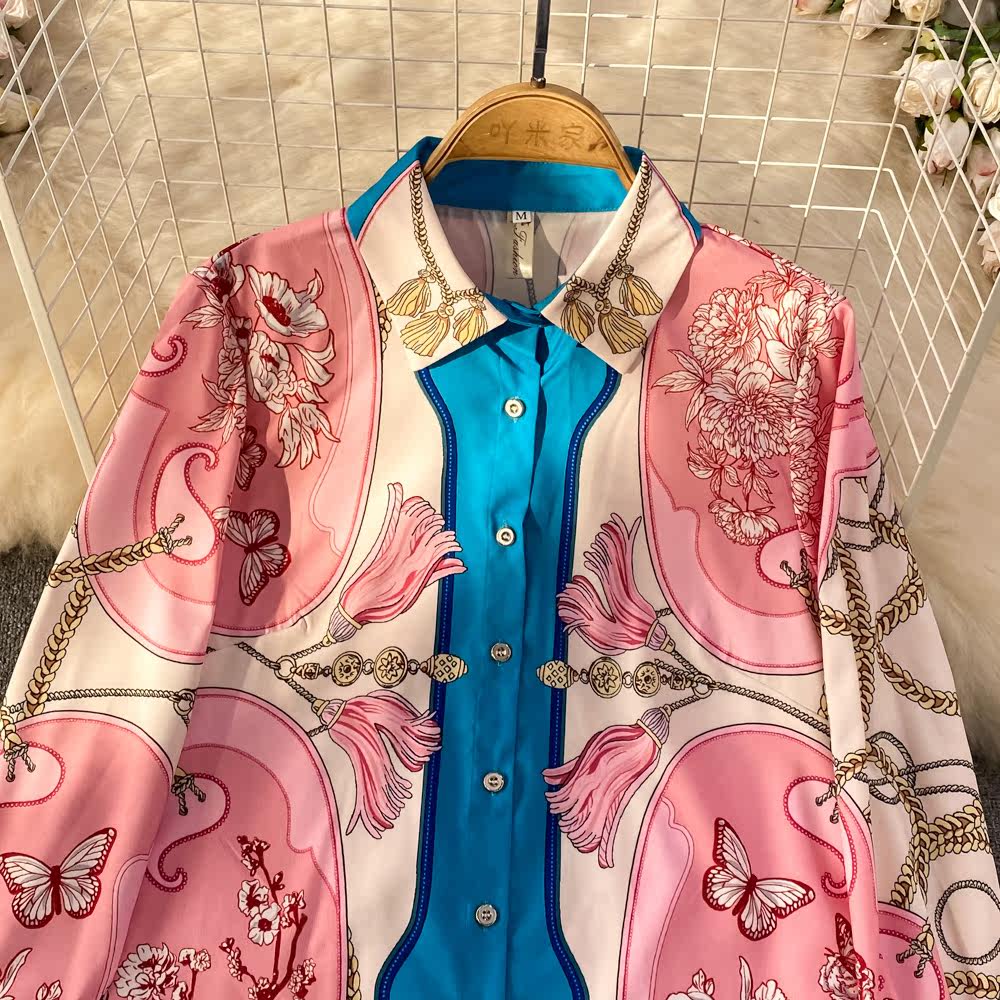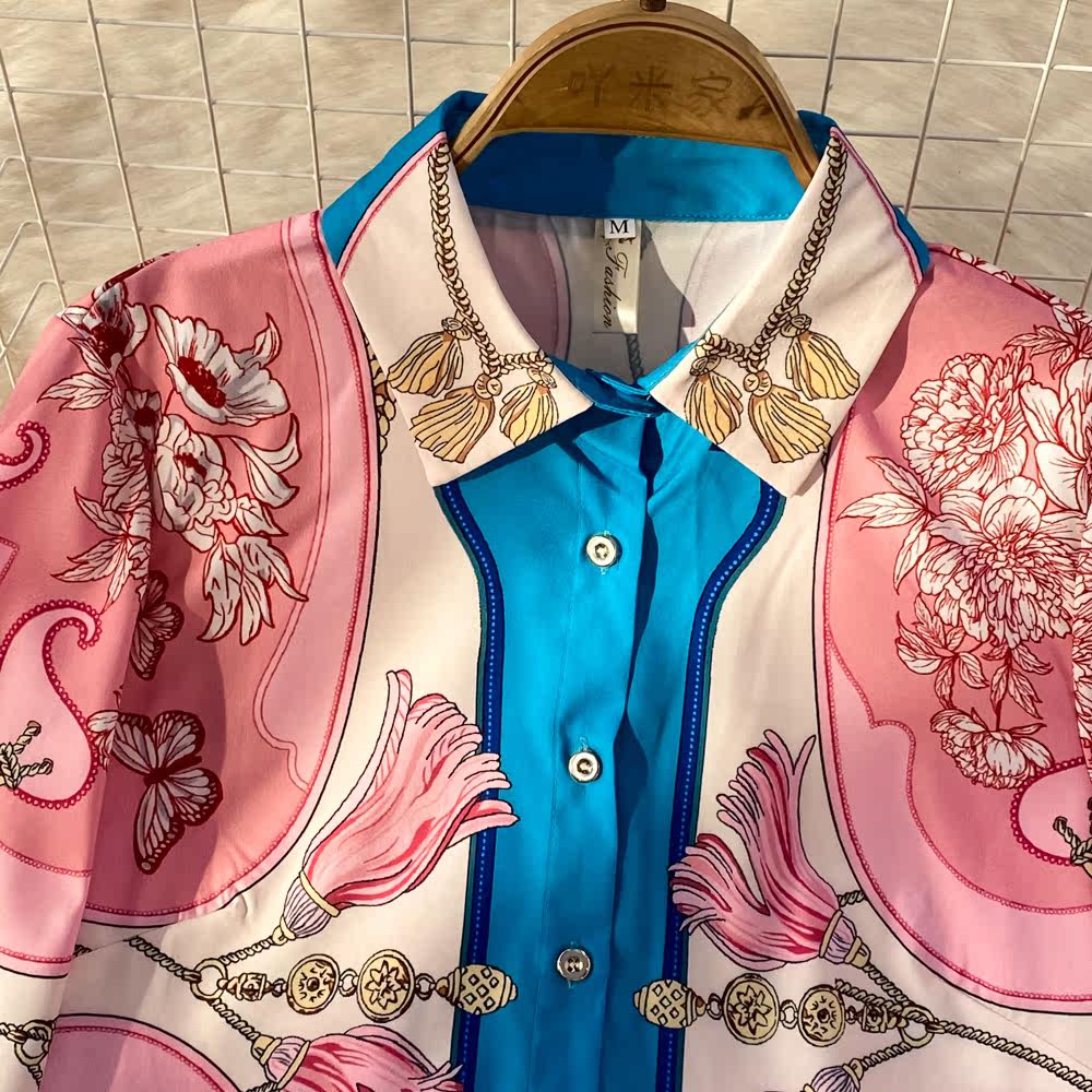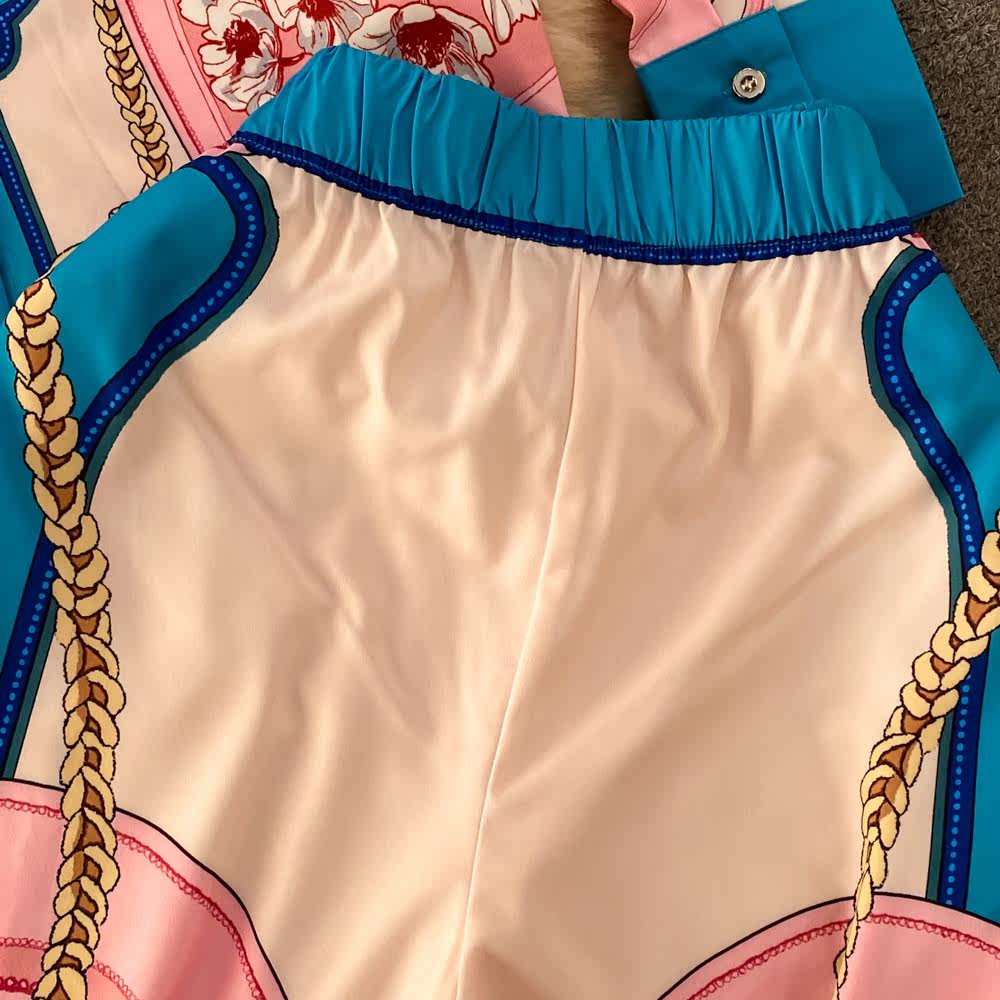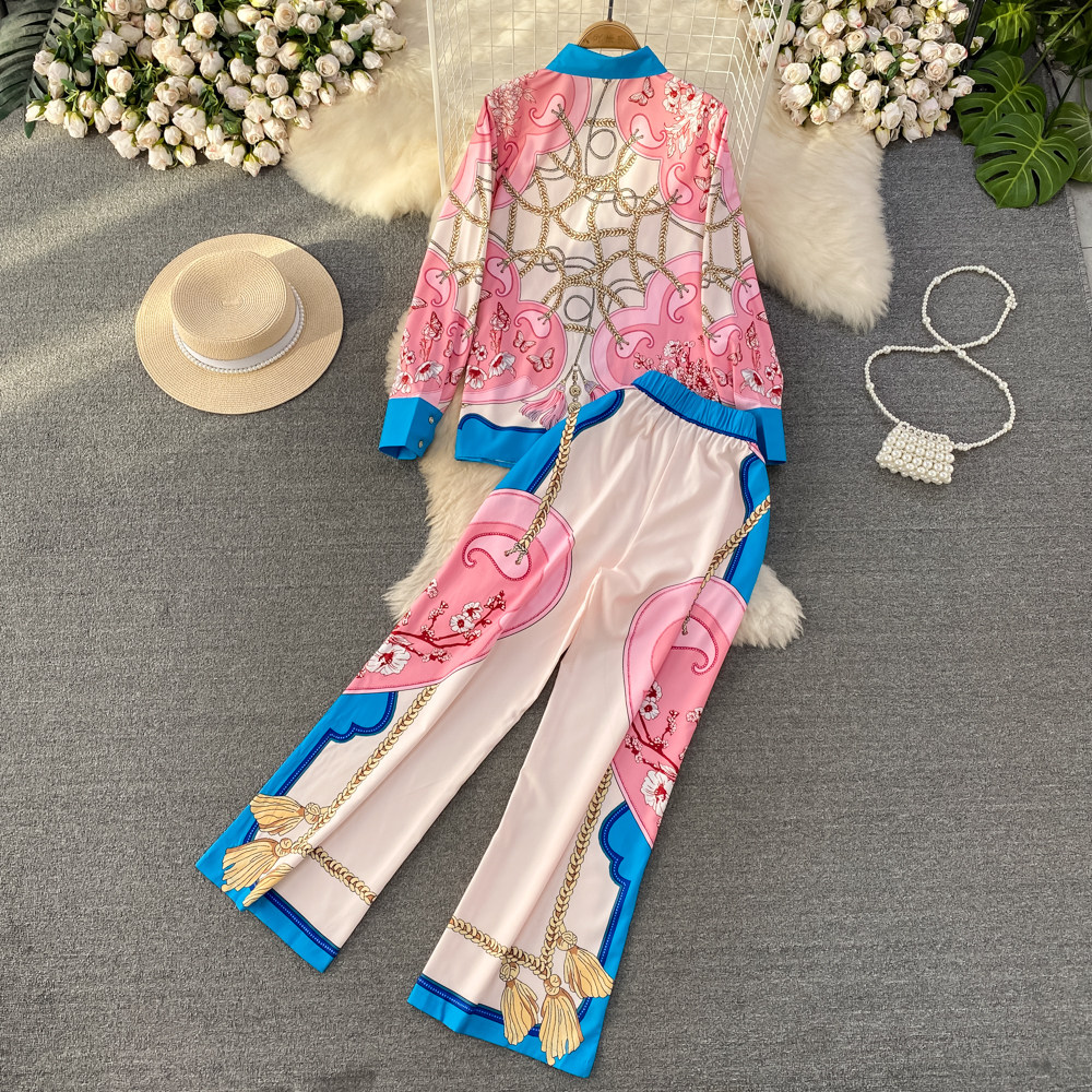 Ретро комплект, рубашка, приталенные штаны, свободный крой, высокая талия