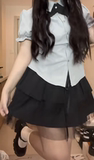 Студенческая юбка в складку, комплект, короткая рубашка, большой размер