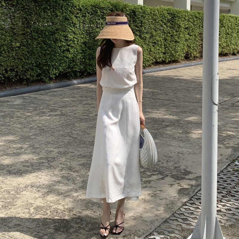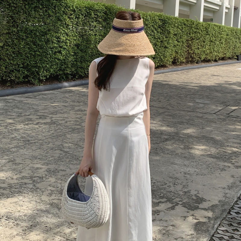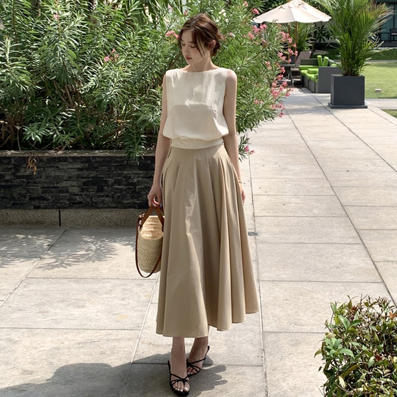 Комплект, летняя рубашка без рукавов, приталенная юбка, французский стиль, яркий броский стиль