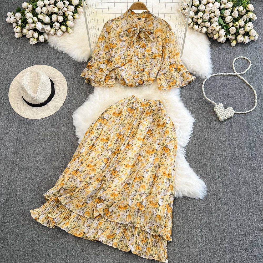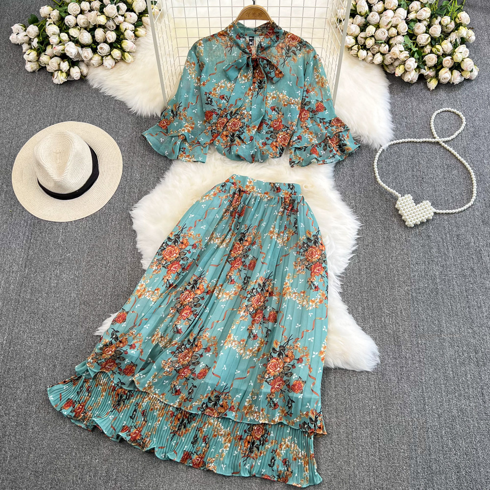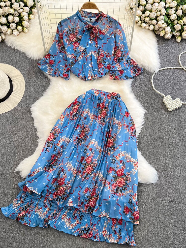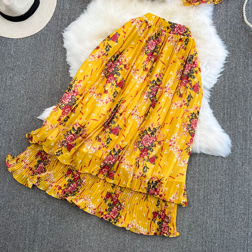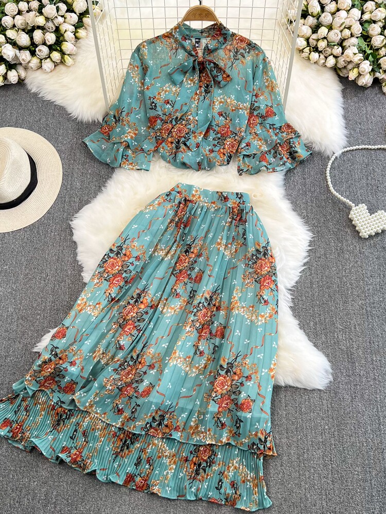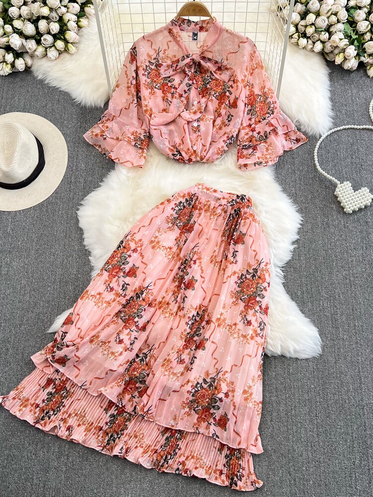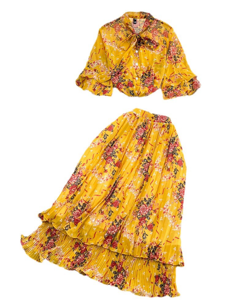 Комплект, мегафон с бантиком, шифоновая юбка в складку, свободный крой, высокая талия