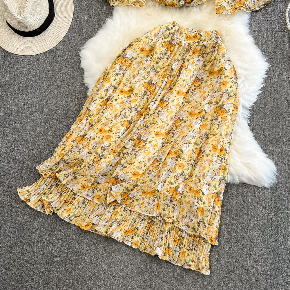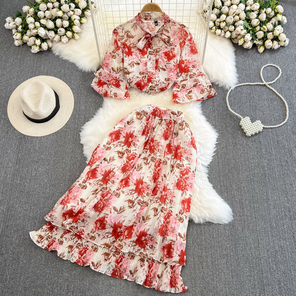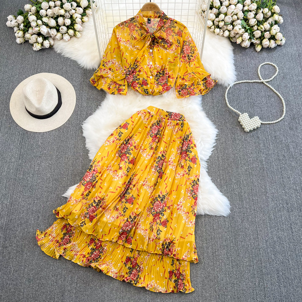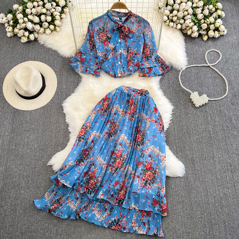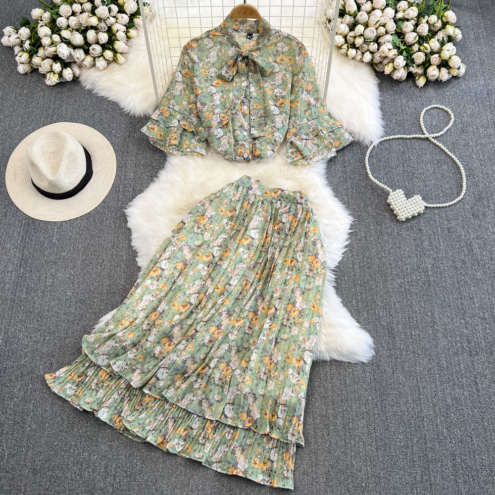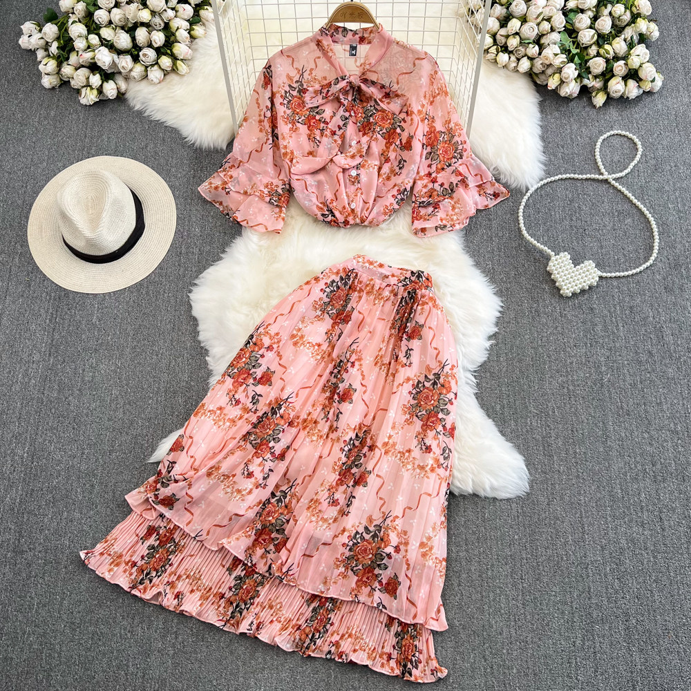 Комплект, мегафон с бантиком, шифоновая юбка в складку, свободный крой, высокая талия