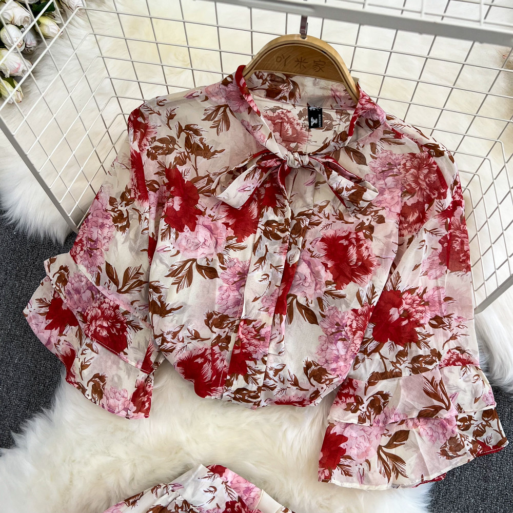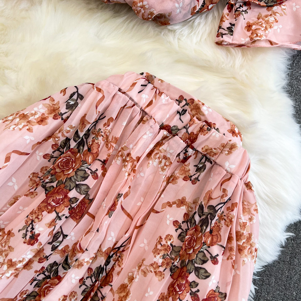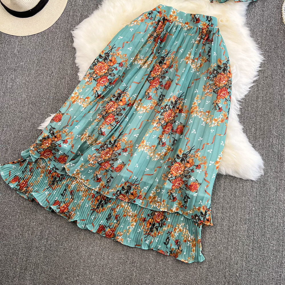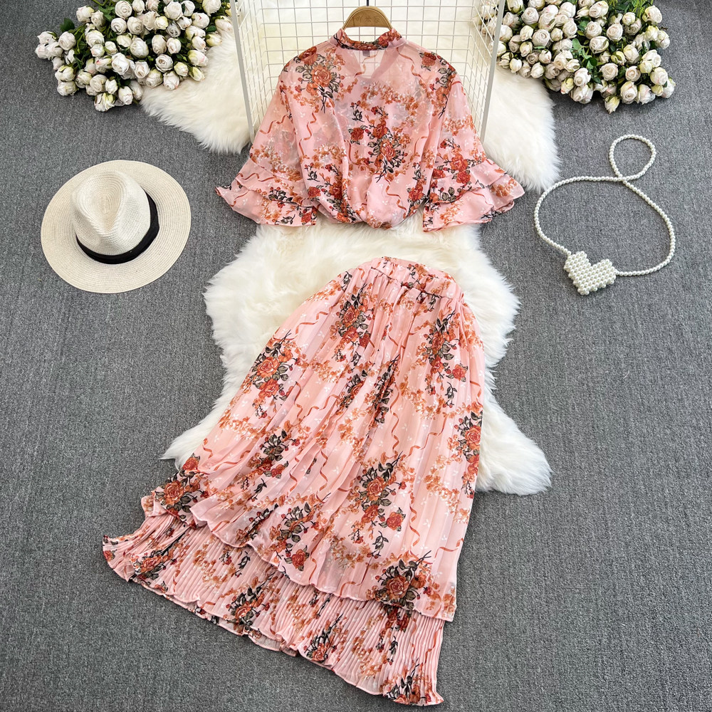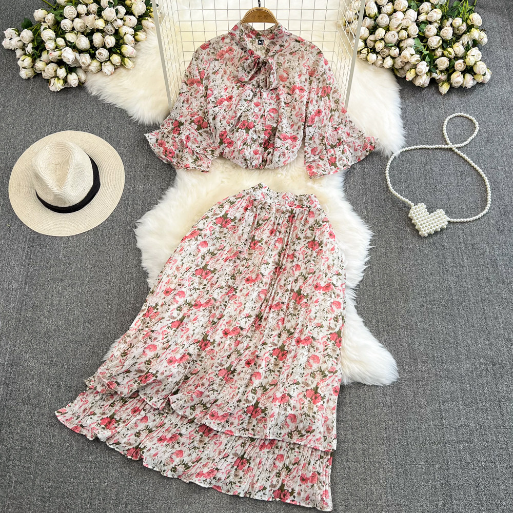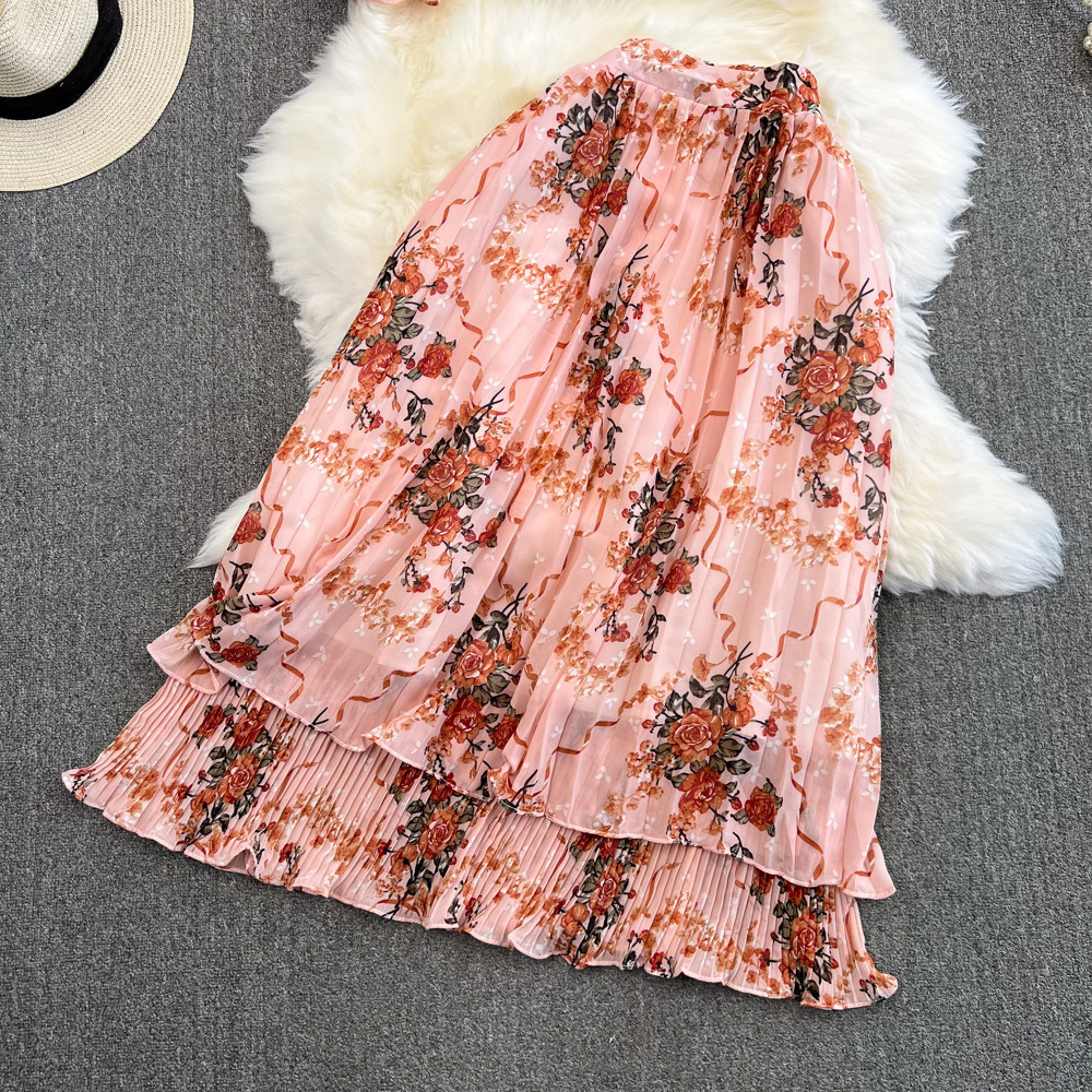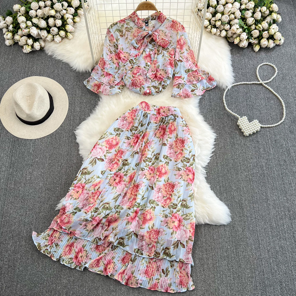 Комплект, мегафон с бантиком, шифоновая юбка в складку, свободный крой, высокая талия