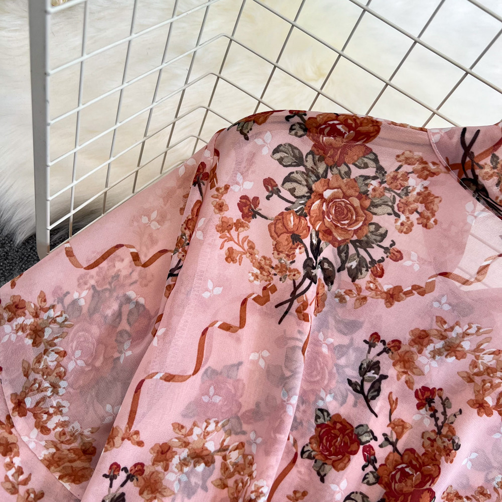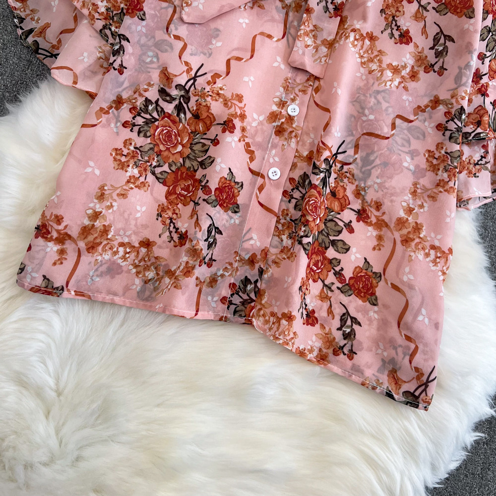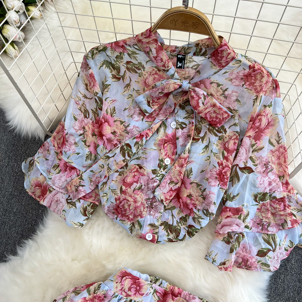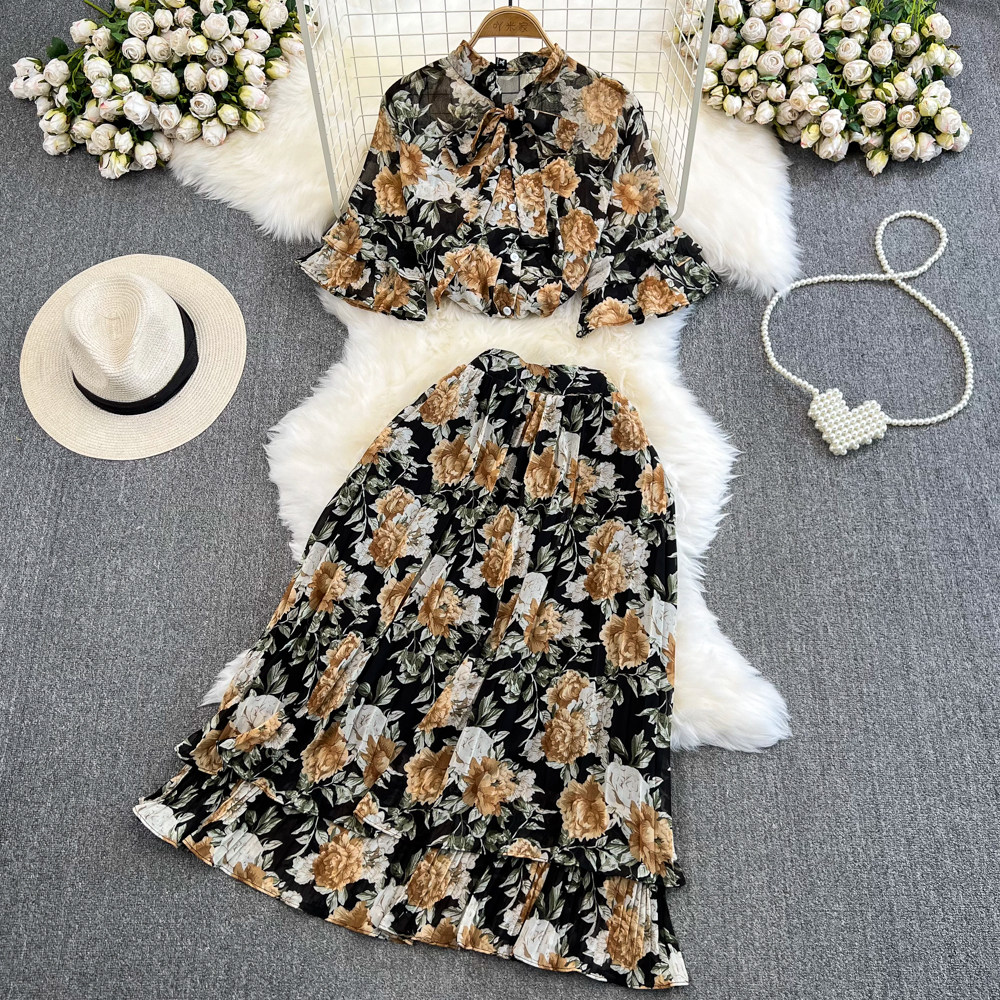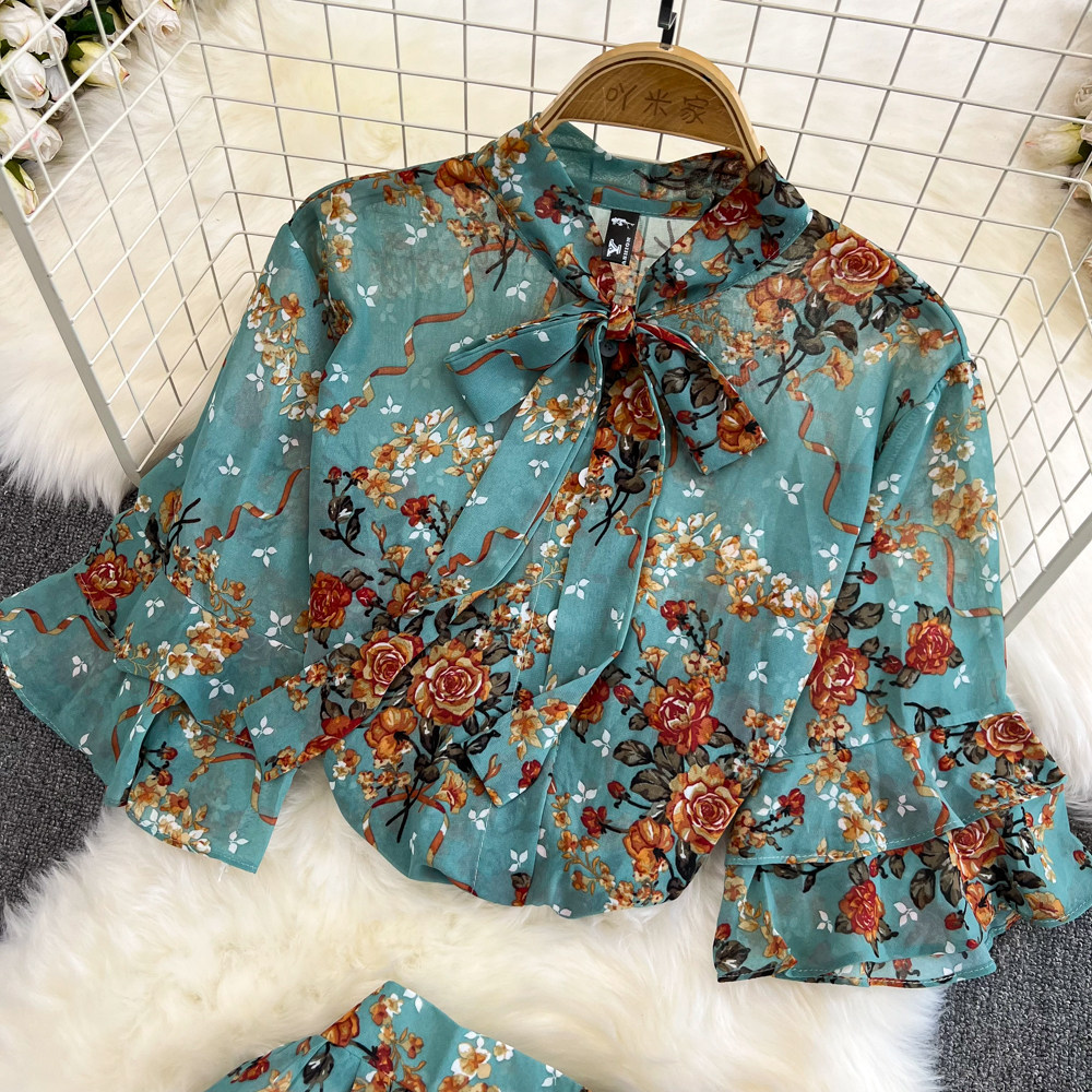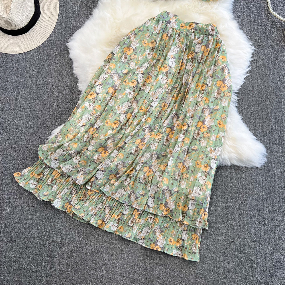 Комплект, мегафон с бантиком, шифоновая юбка в складку, свободный крой, высокая талия