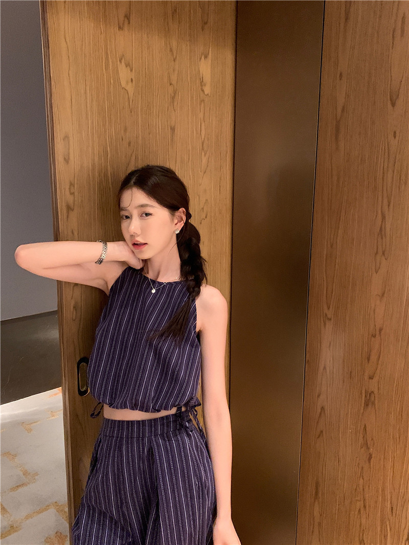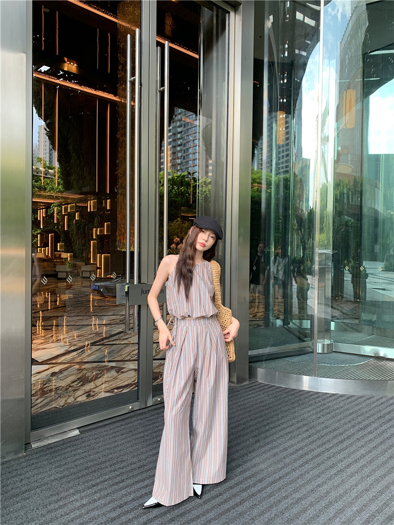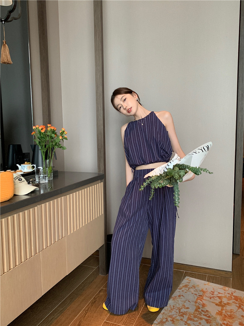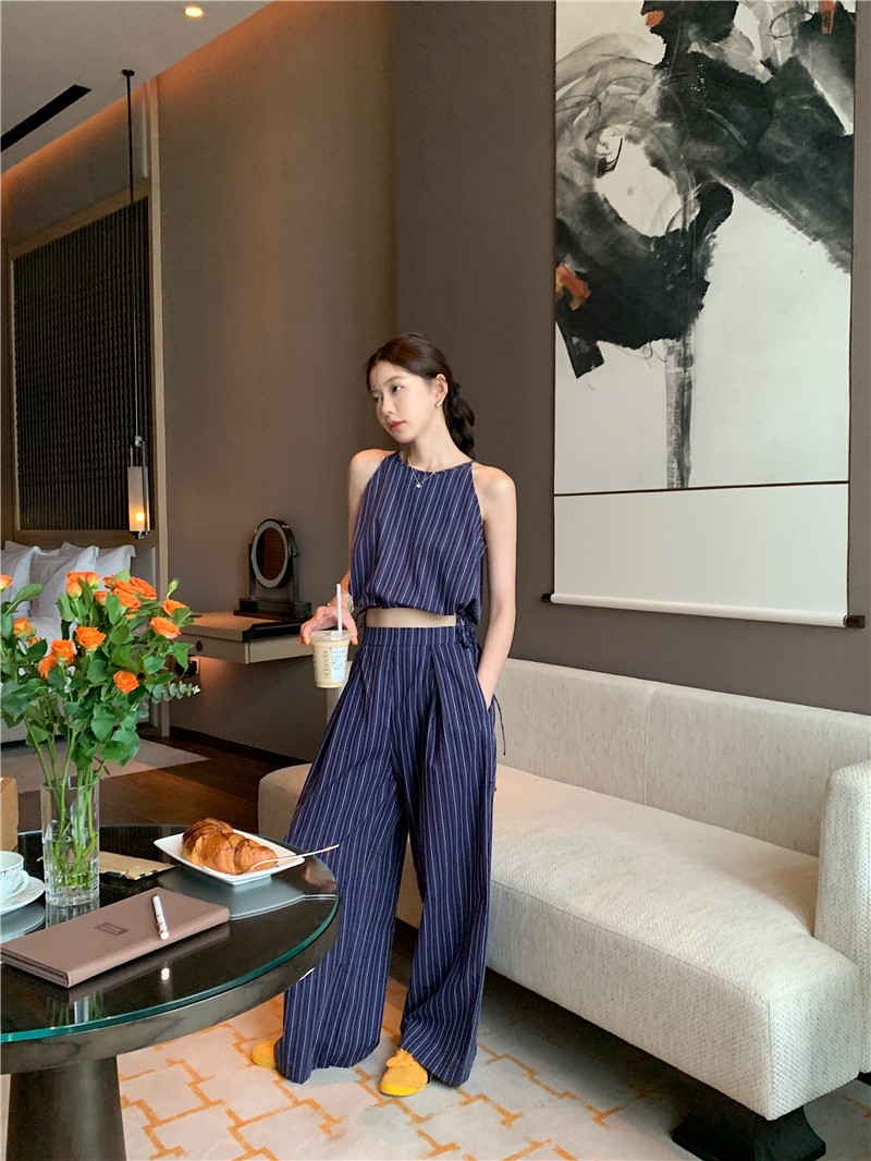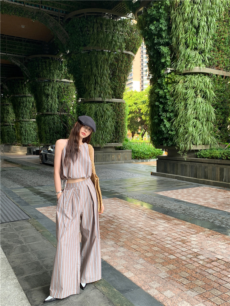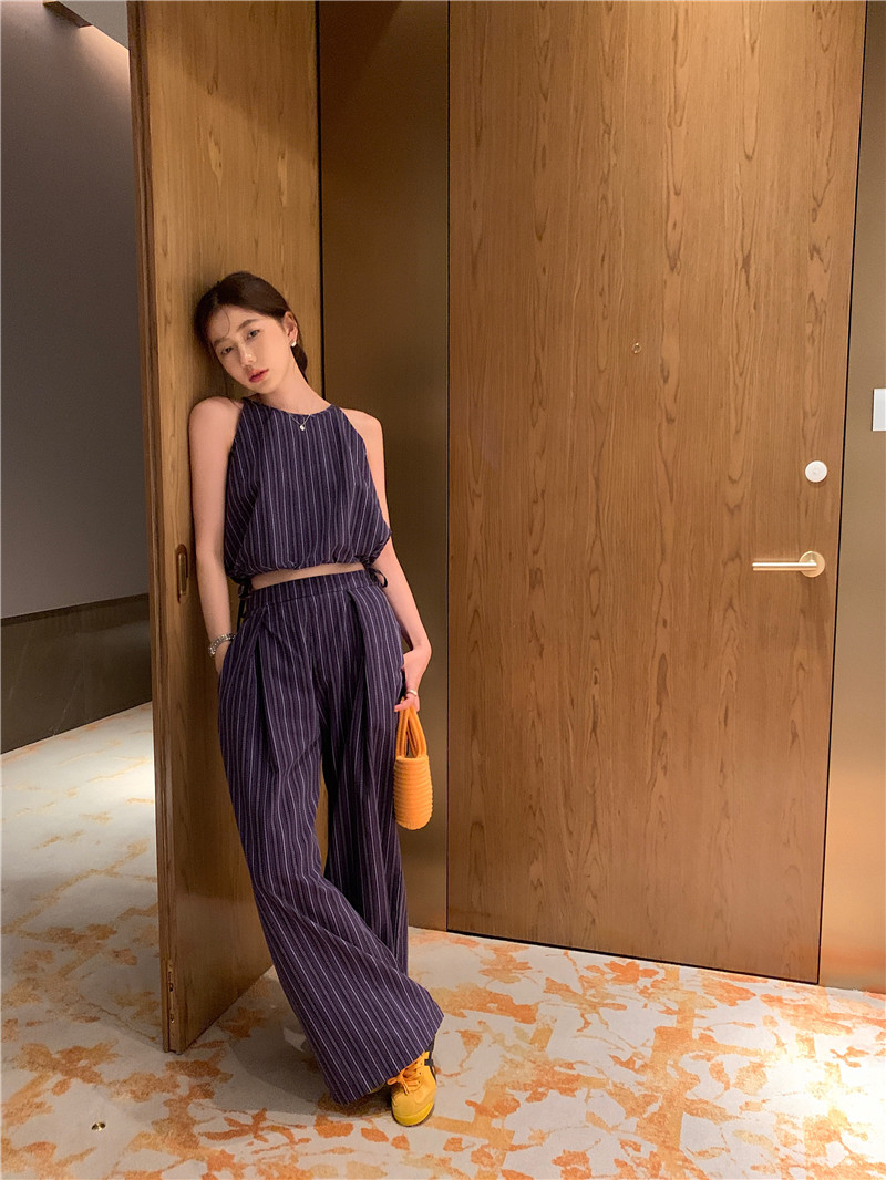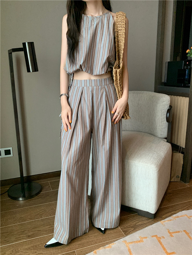 Комплект, летняя майка топ, штаны, китайский стиль, высокая талия, свободный прямой крой