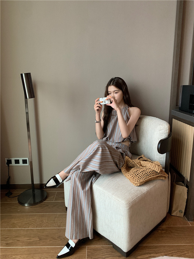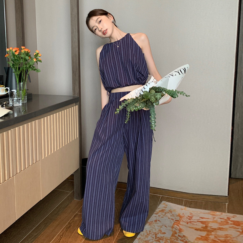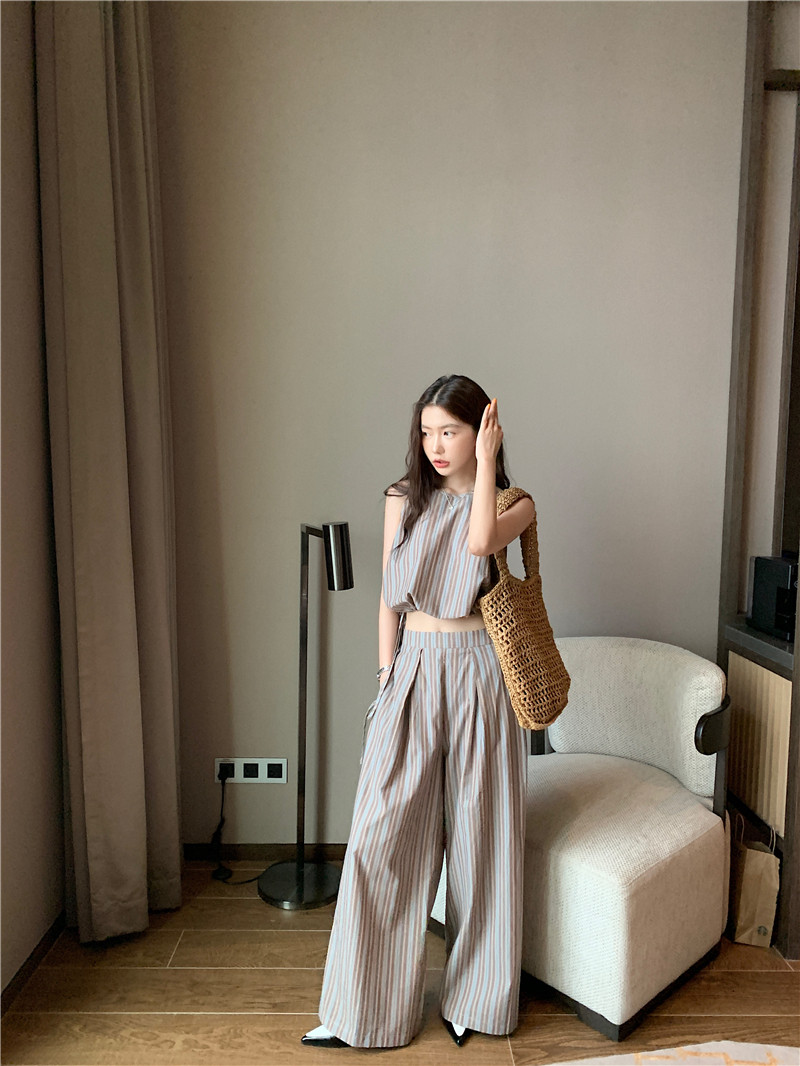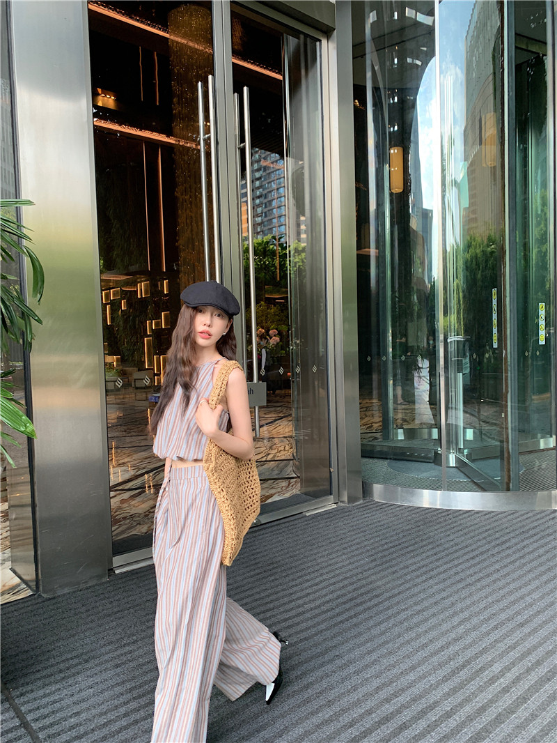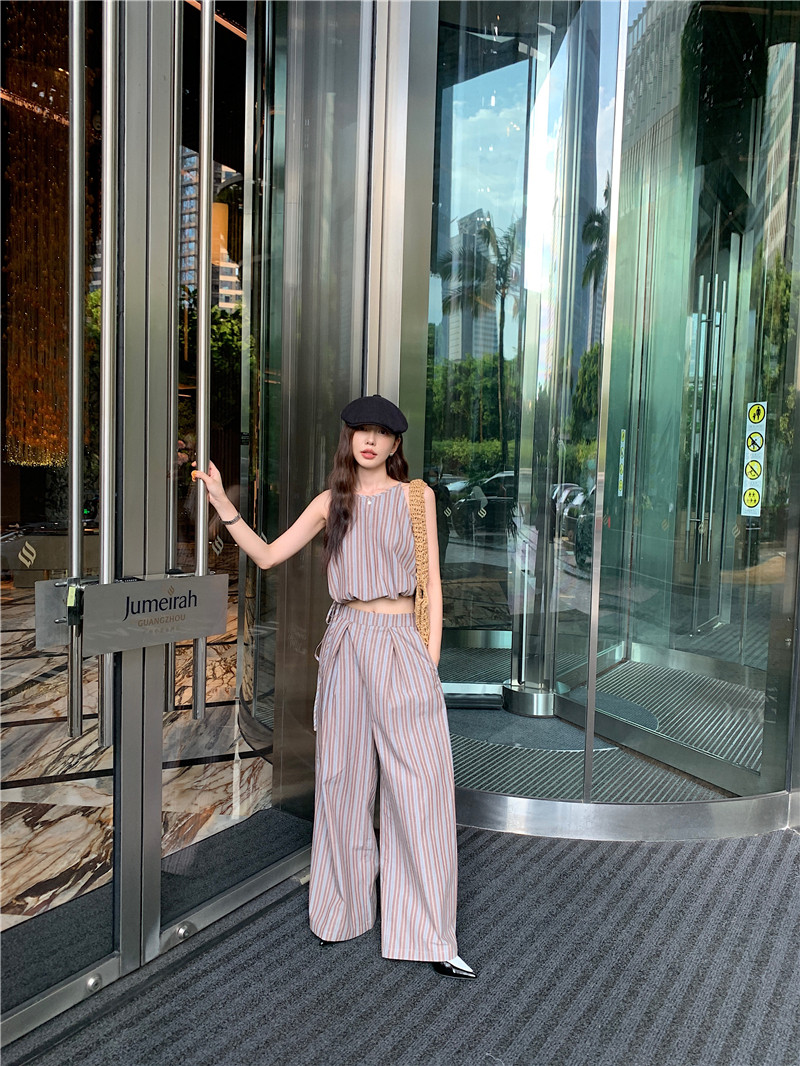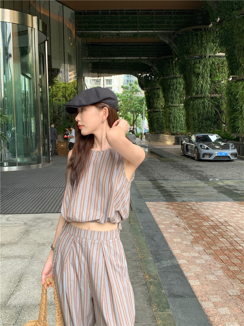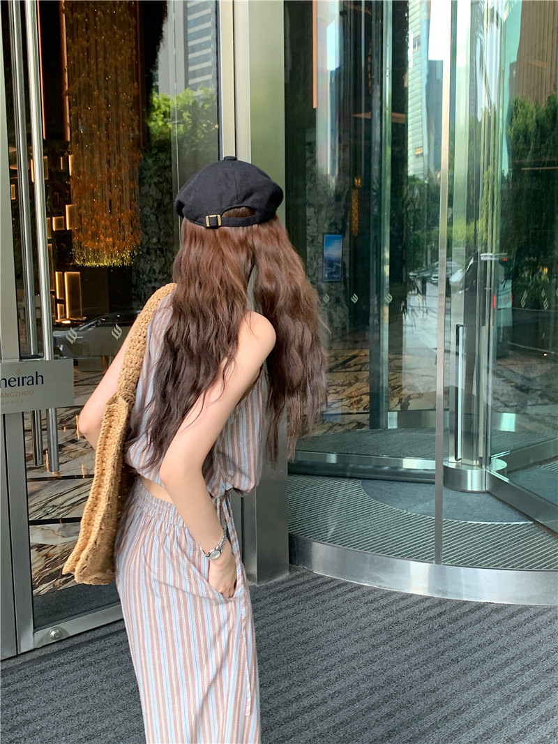 Комплект, летняя майка топ, штаны, китайский стиль, высокая талия, свободный прямой крой