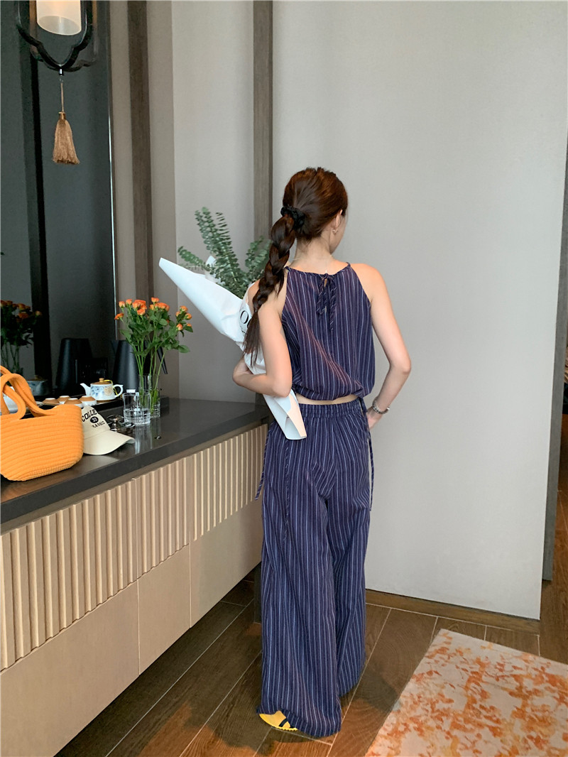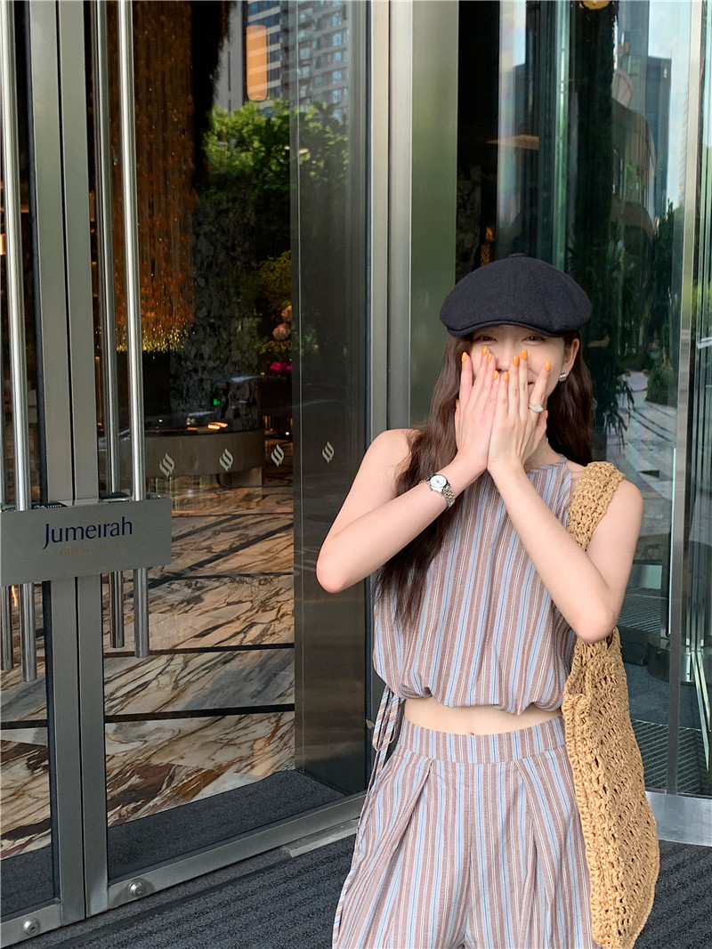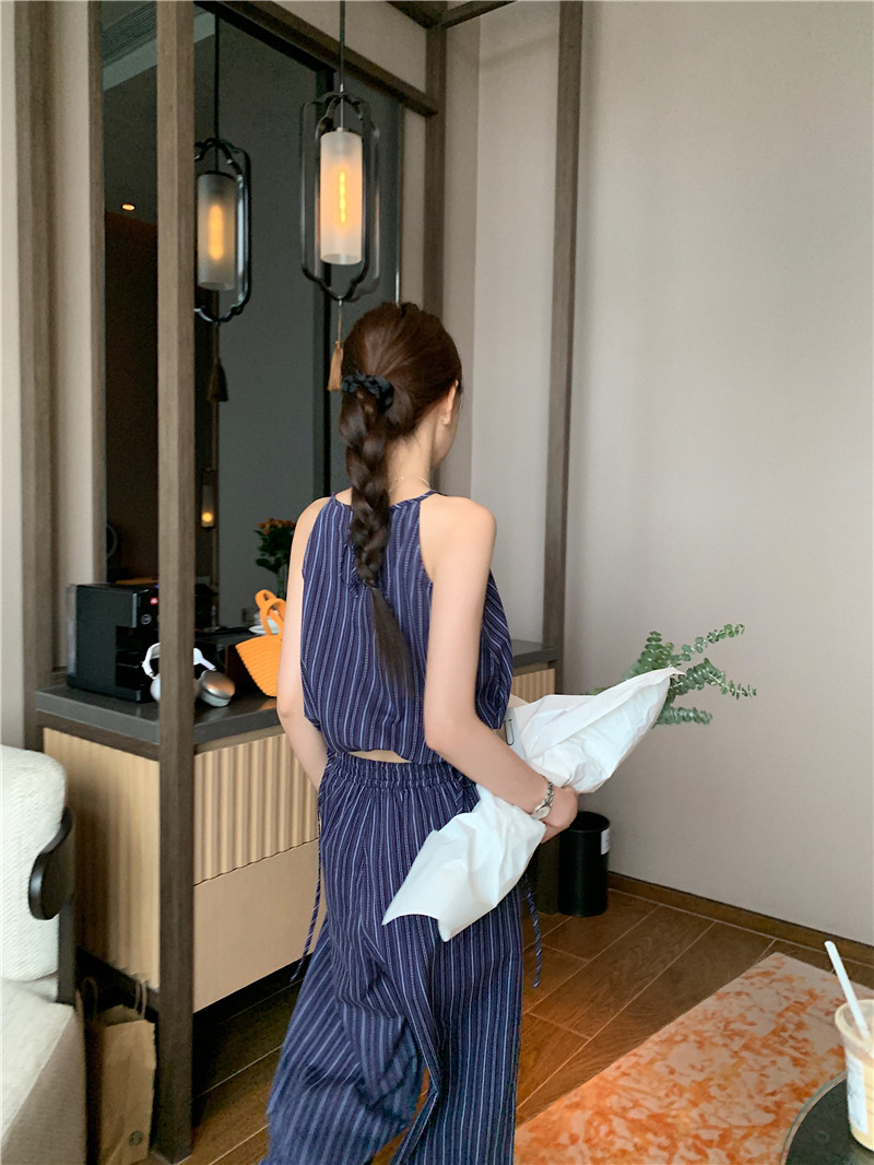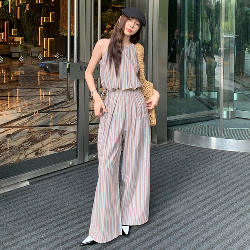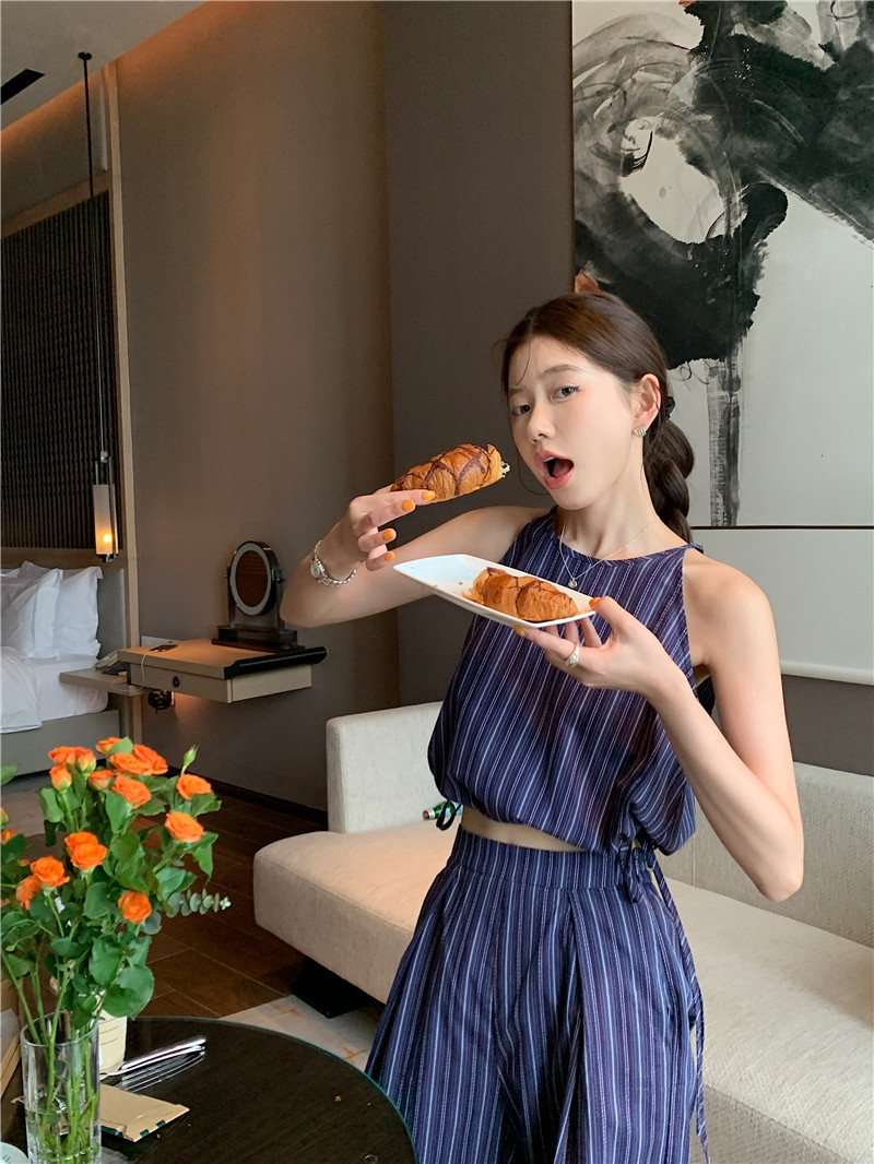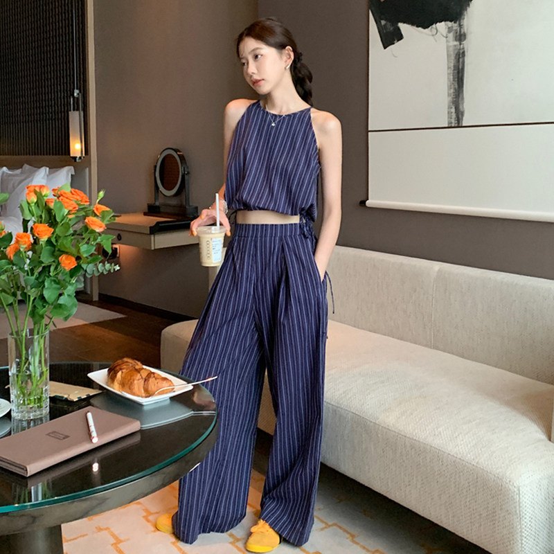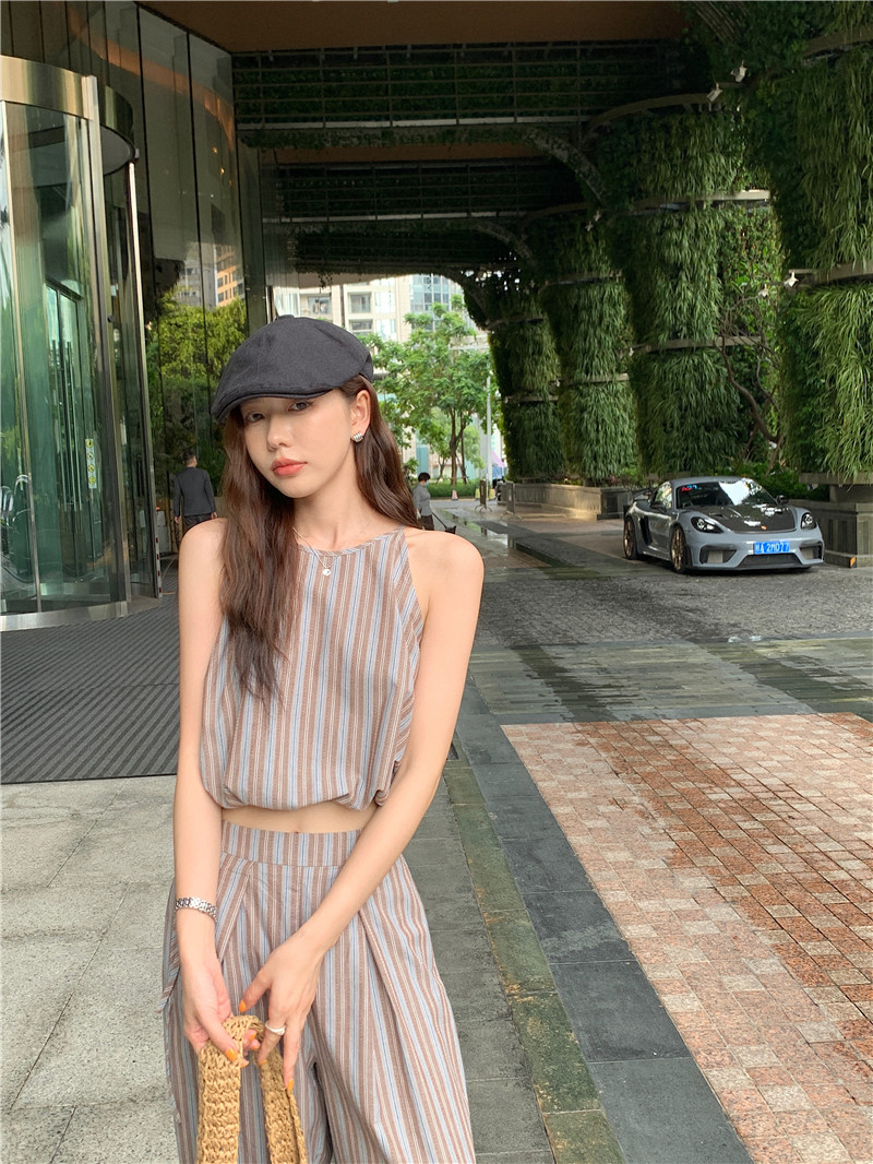 Комплект, летняя майка топ, штаны, китайский стиль, высокая талия, свободный прямой крой