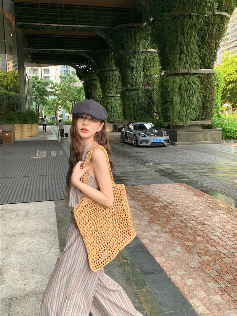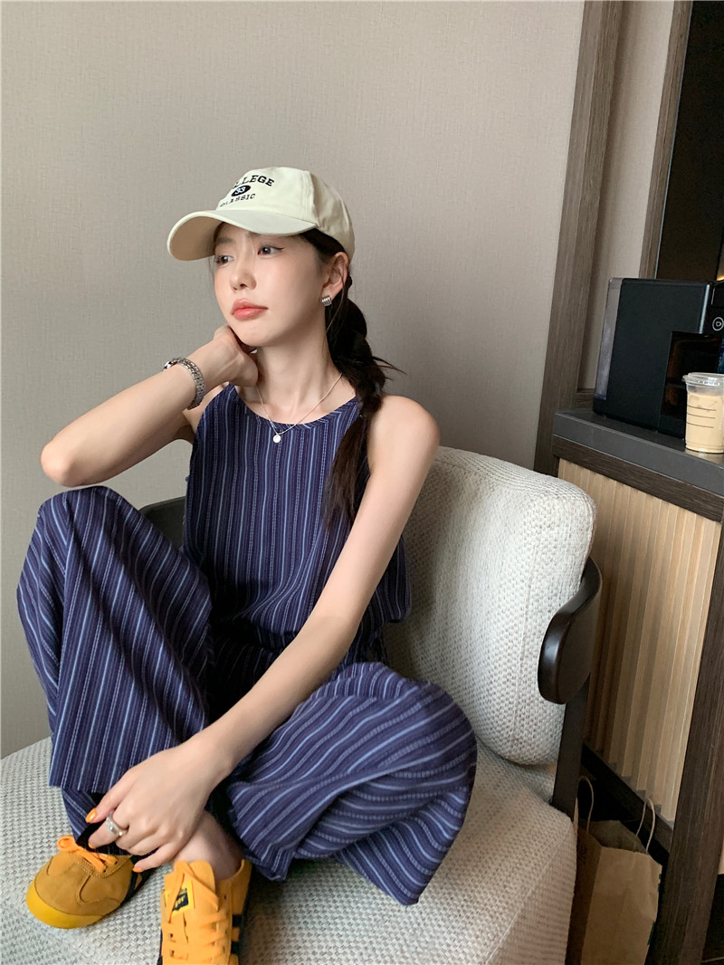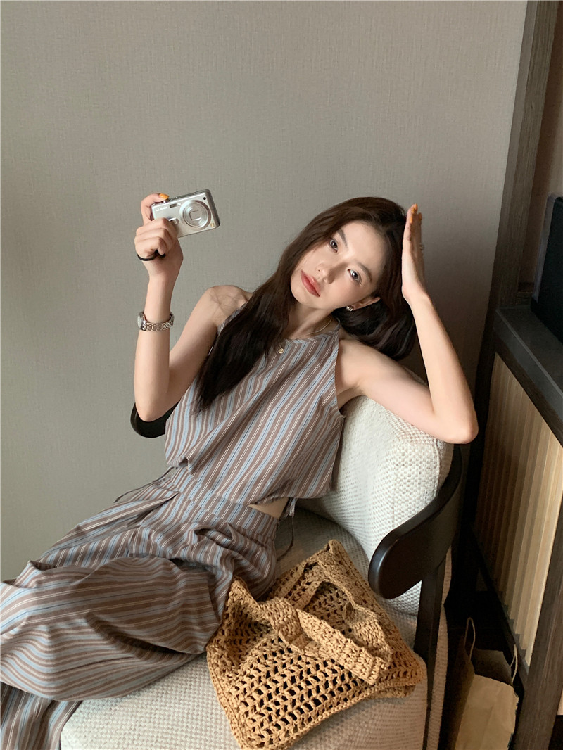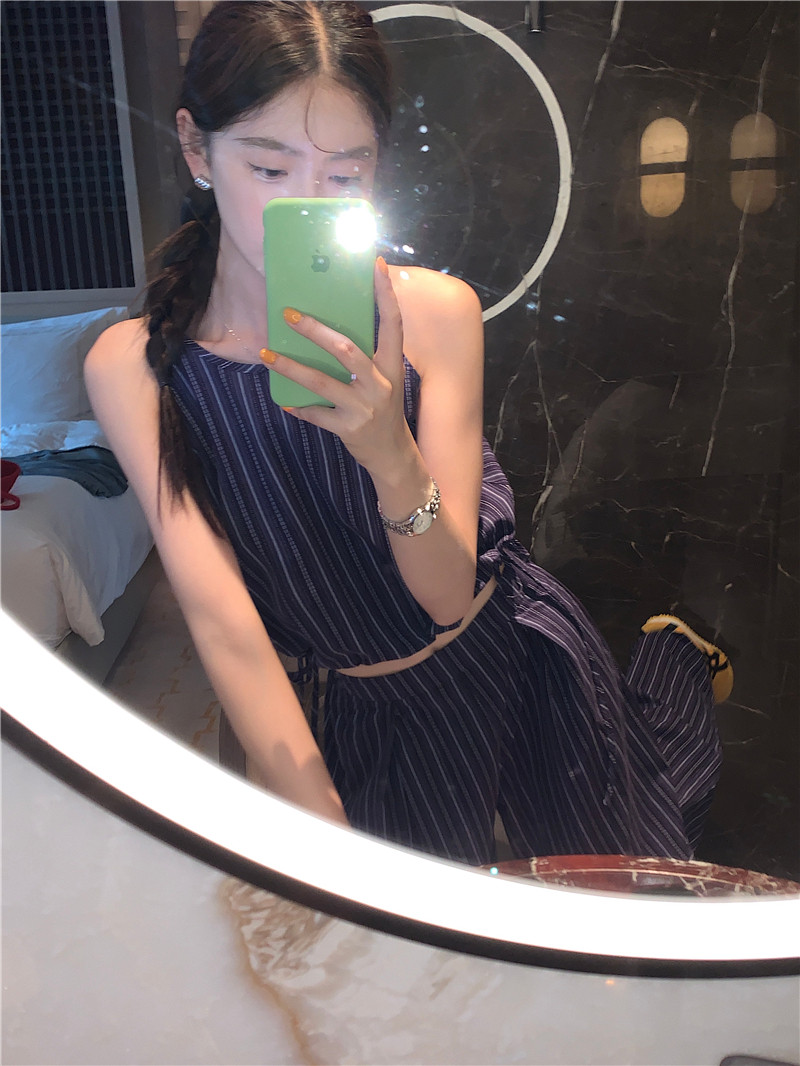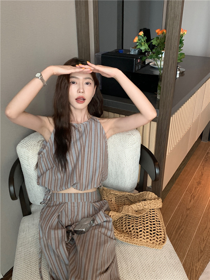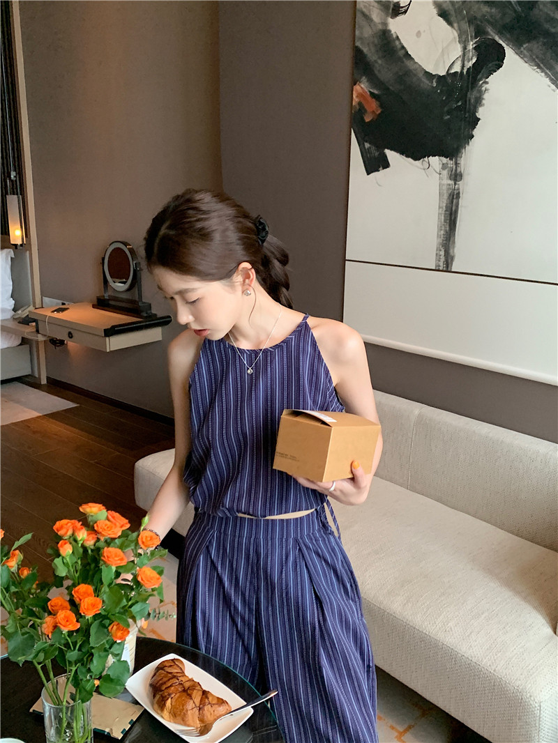 Комплект, летняя майка топ, штаны, китайский стиль, высокая талия, свободный прямой крой