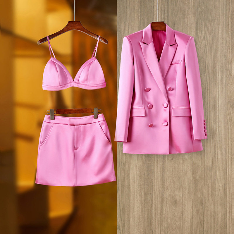 Розовый костюм, модный комплект, с акцентом на бедрах, 3 предмета