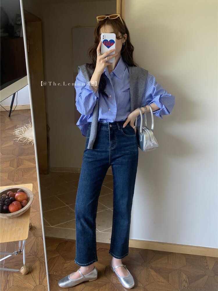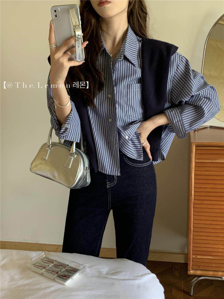 Осенний лонгслив, рубашка, трикотажная модная накидка, универсальный комплект, в корейском стиле