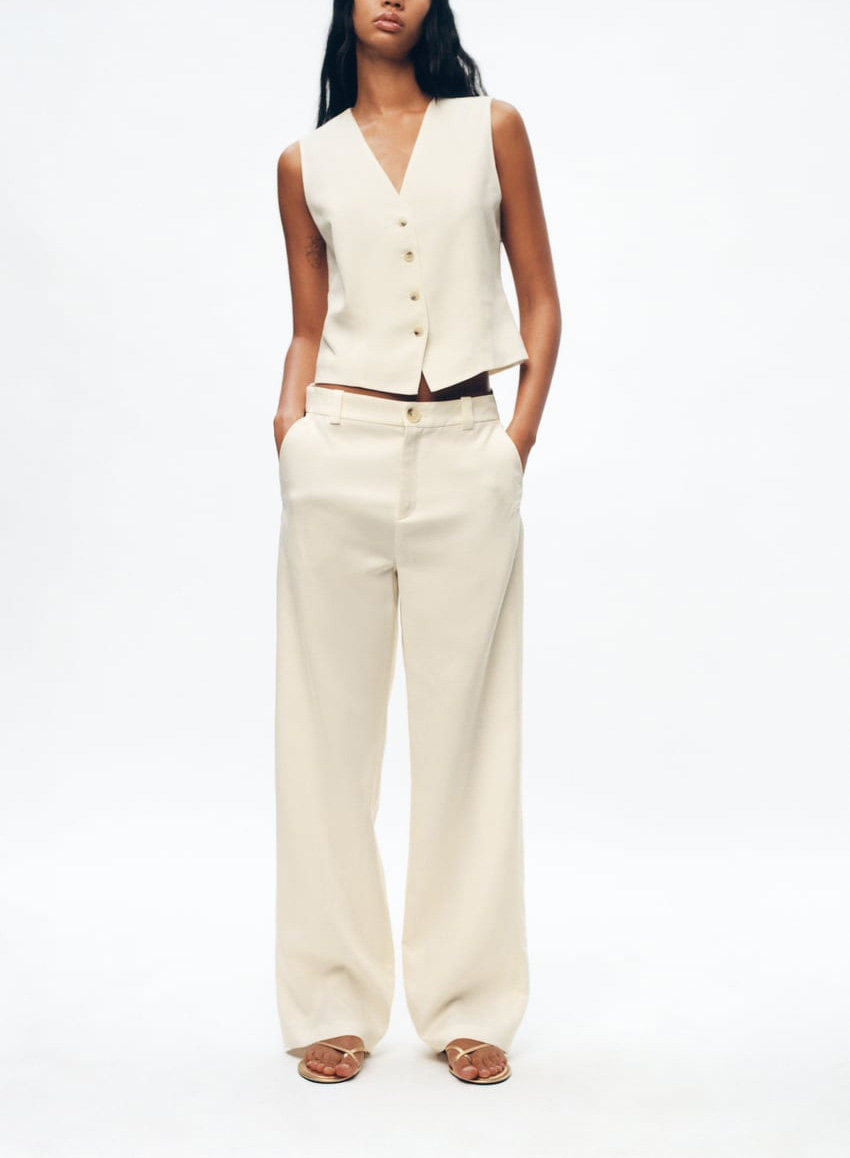 Весенний комплект, жилет, штаны-клёш, штаны, тренд сезона, высокая талия