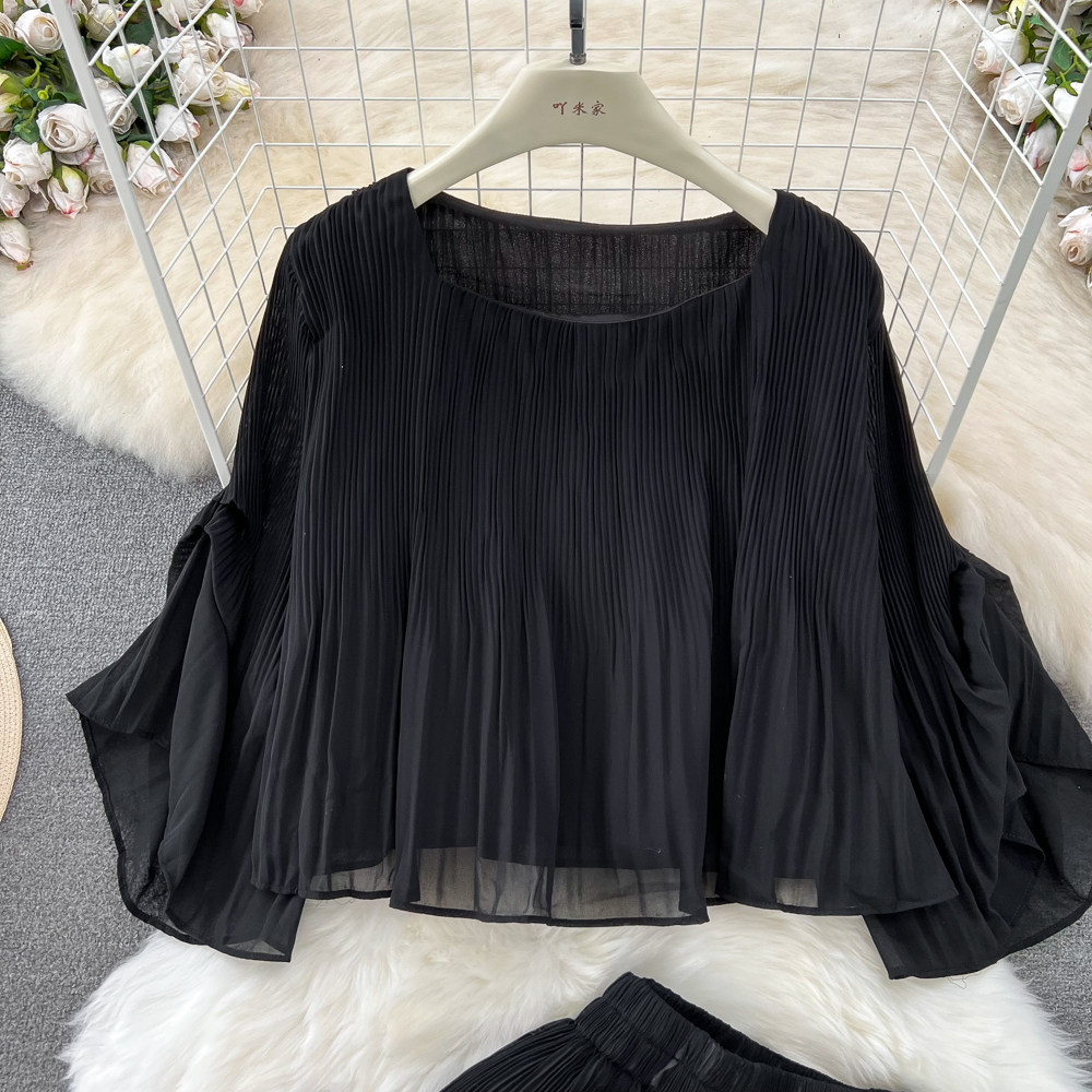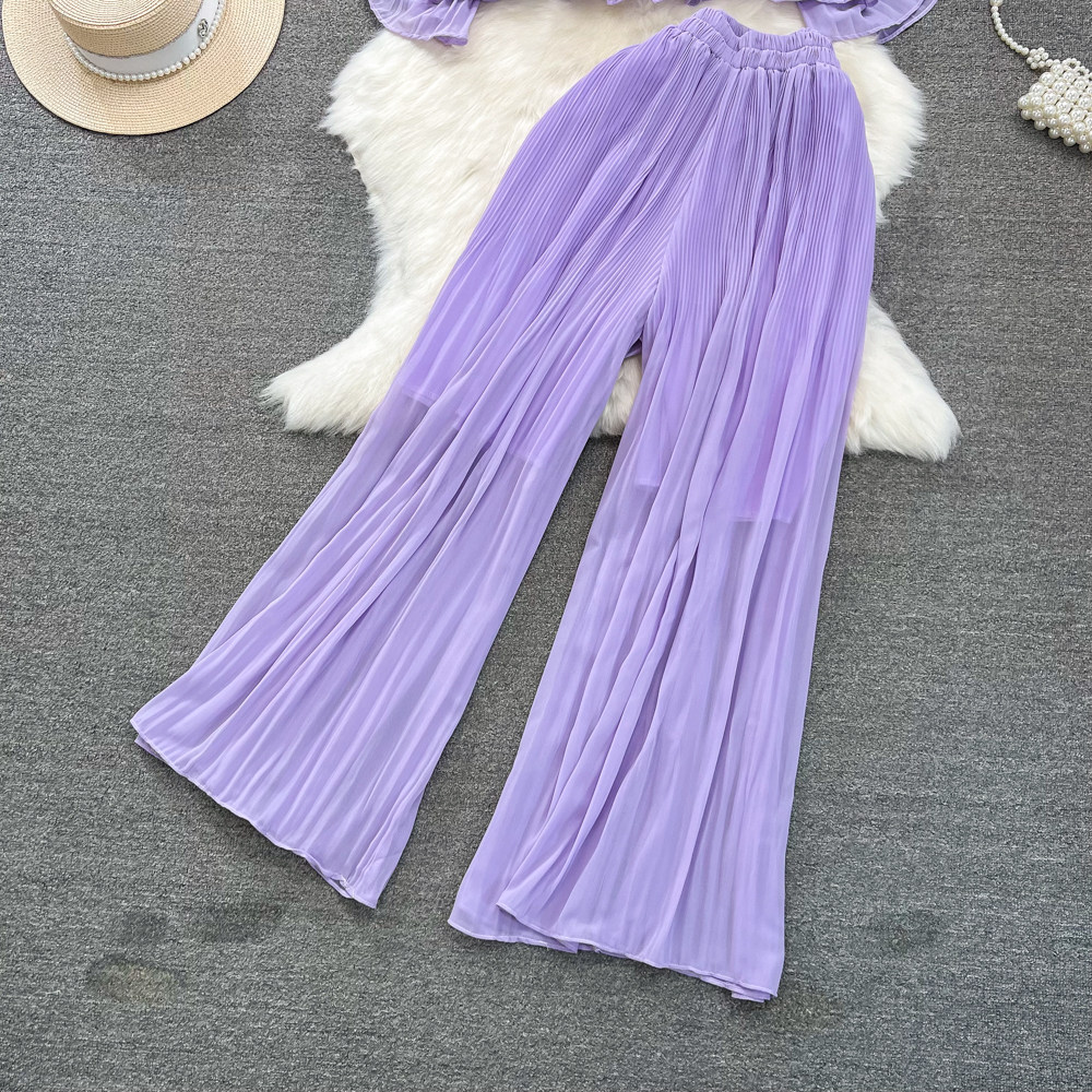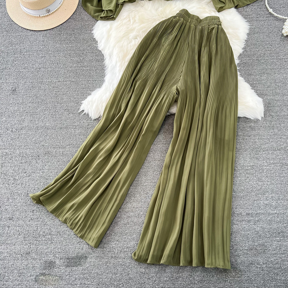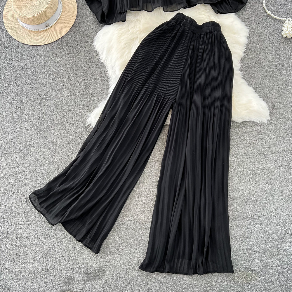Шифоновый комплект, футболка, штаны, простой и элегантный дизайн, свободный крой, высокая талия