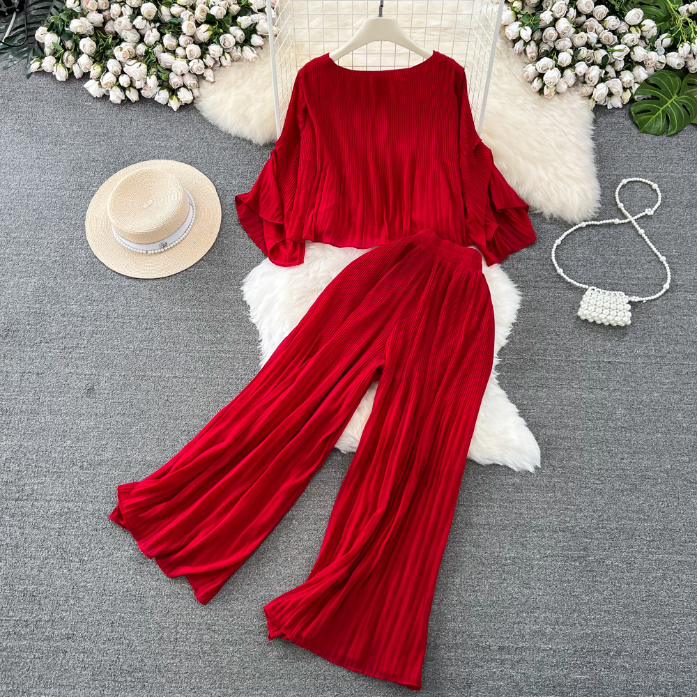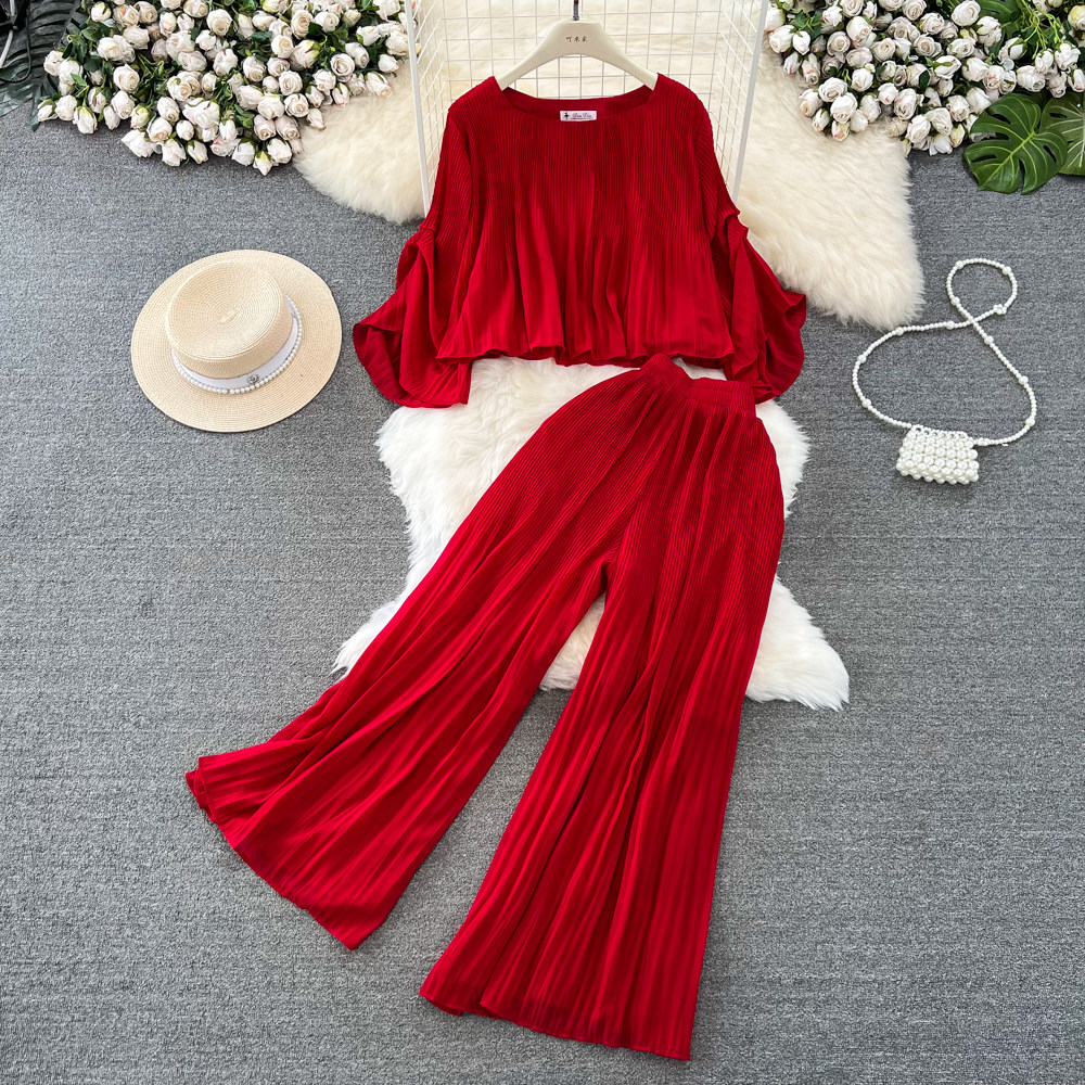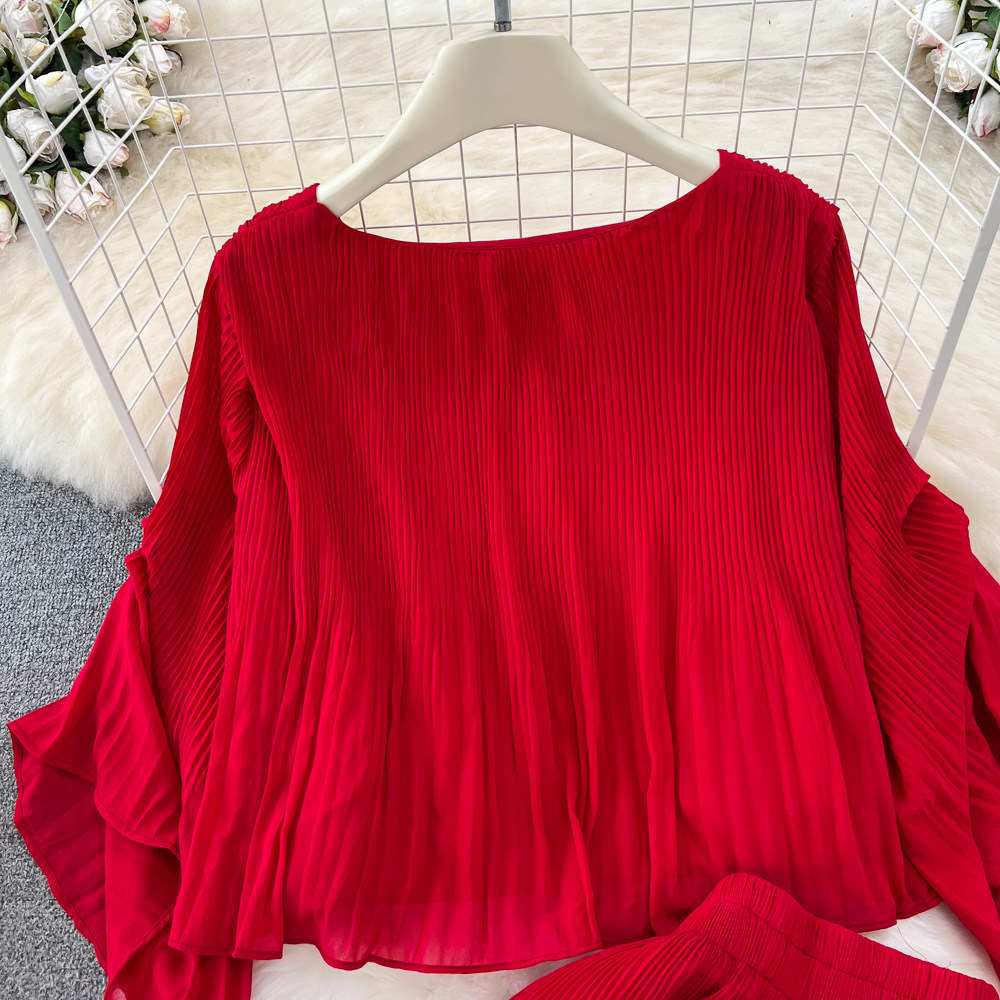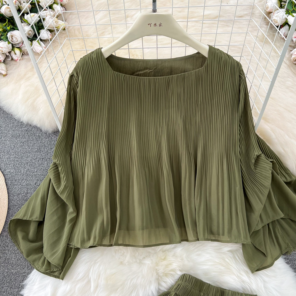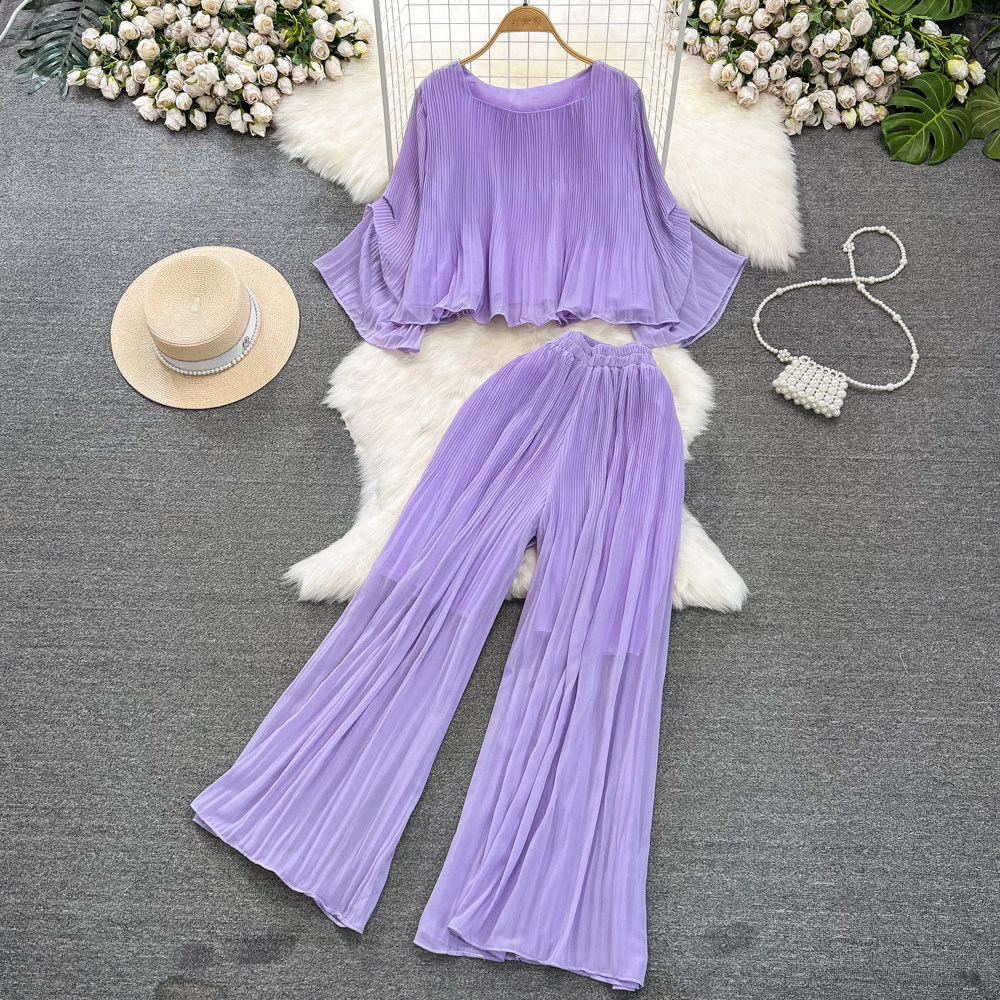Шифоновый комплект, футболка, штаны, простой и элегантный дизайн, свободный крой, высокая талия