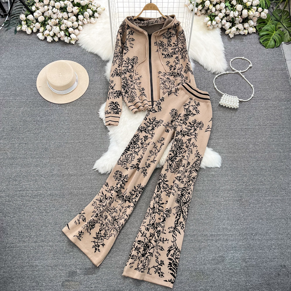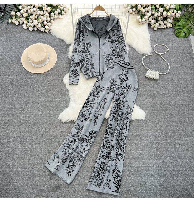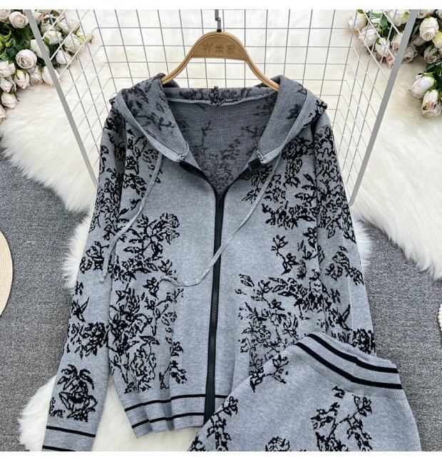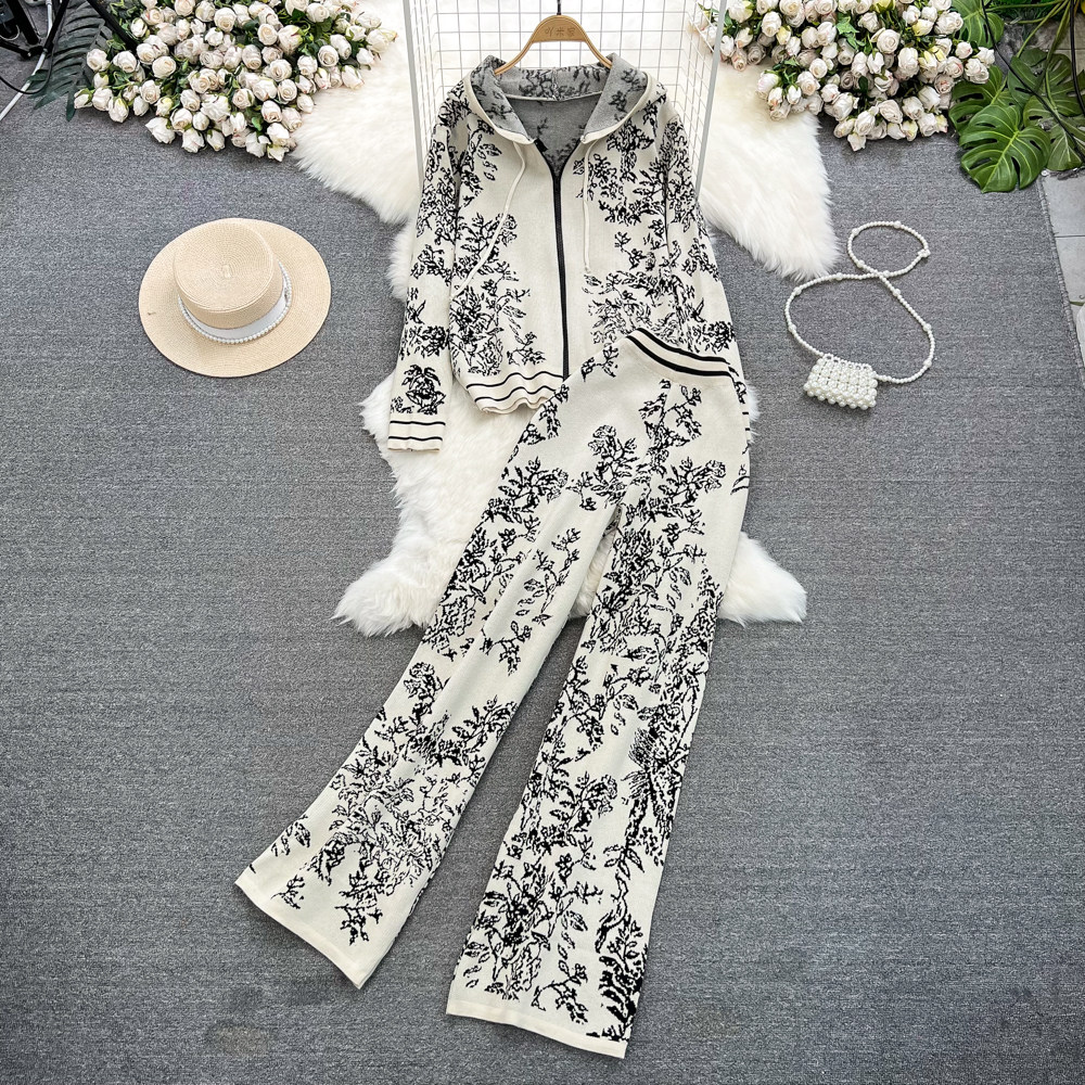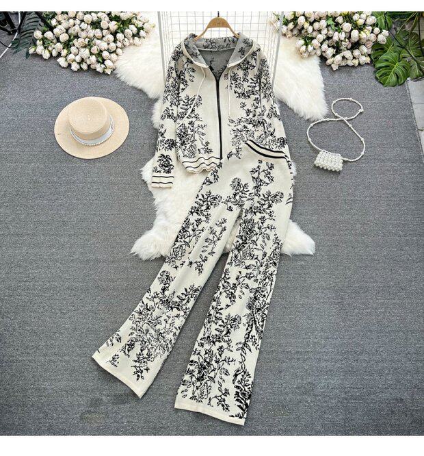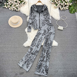 Комплект, трикотажные штаны с капюшоном, высокая талия