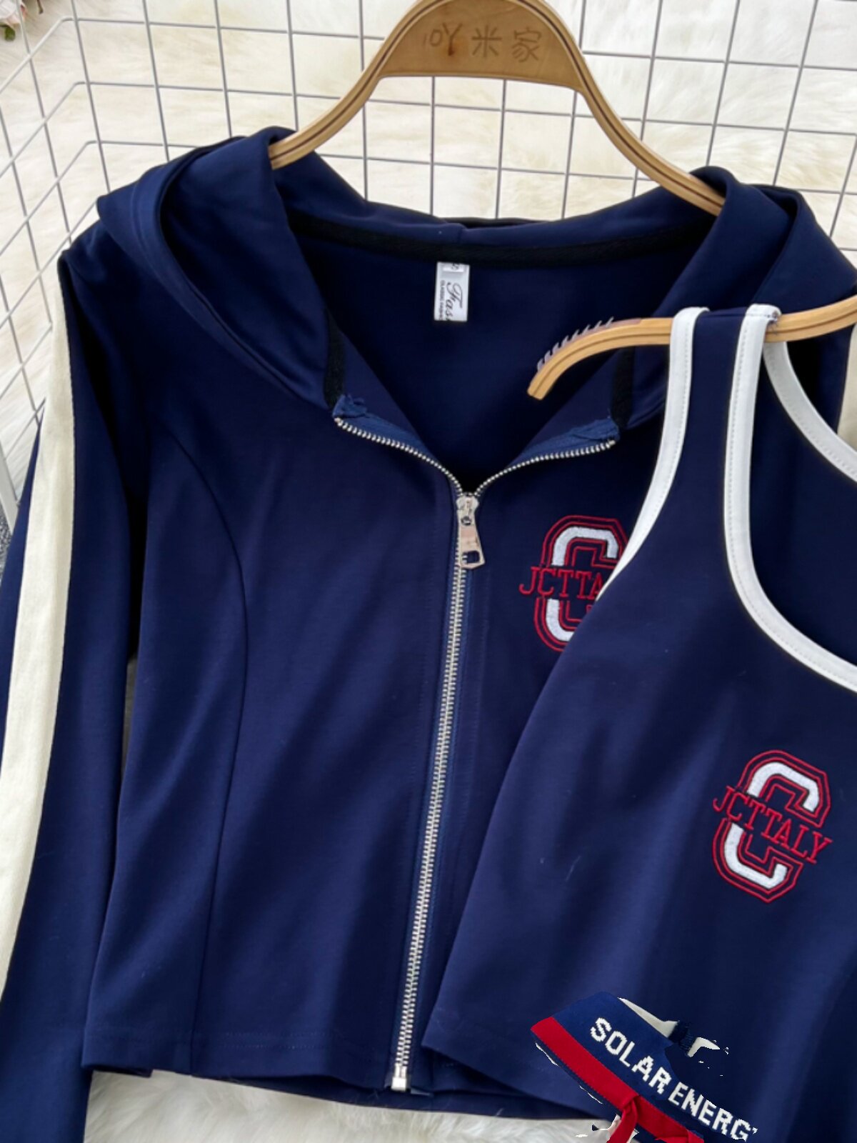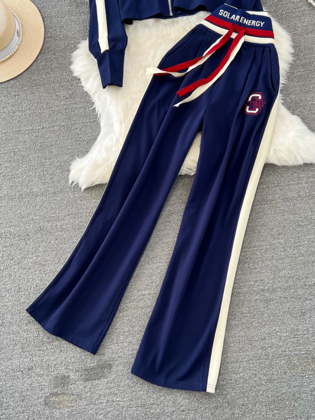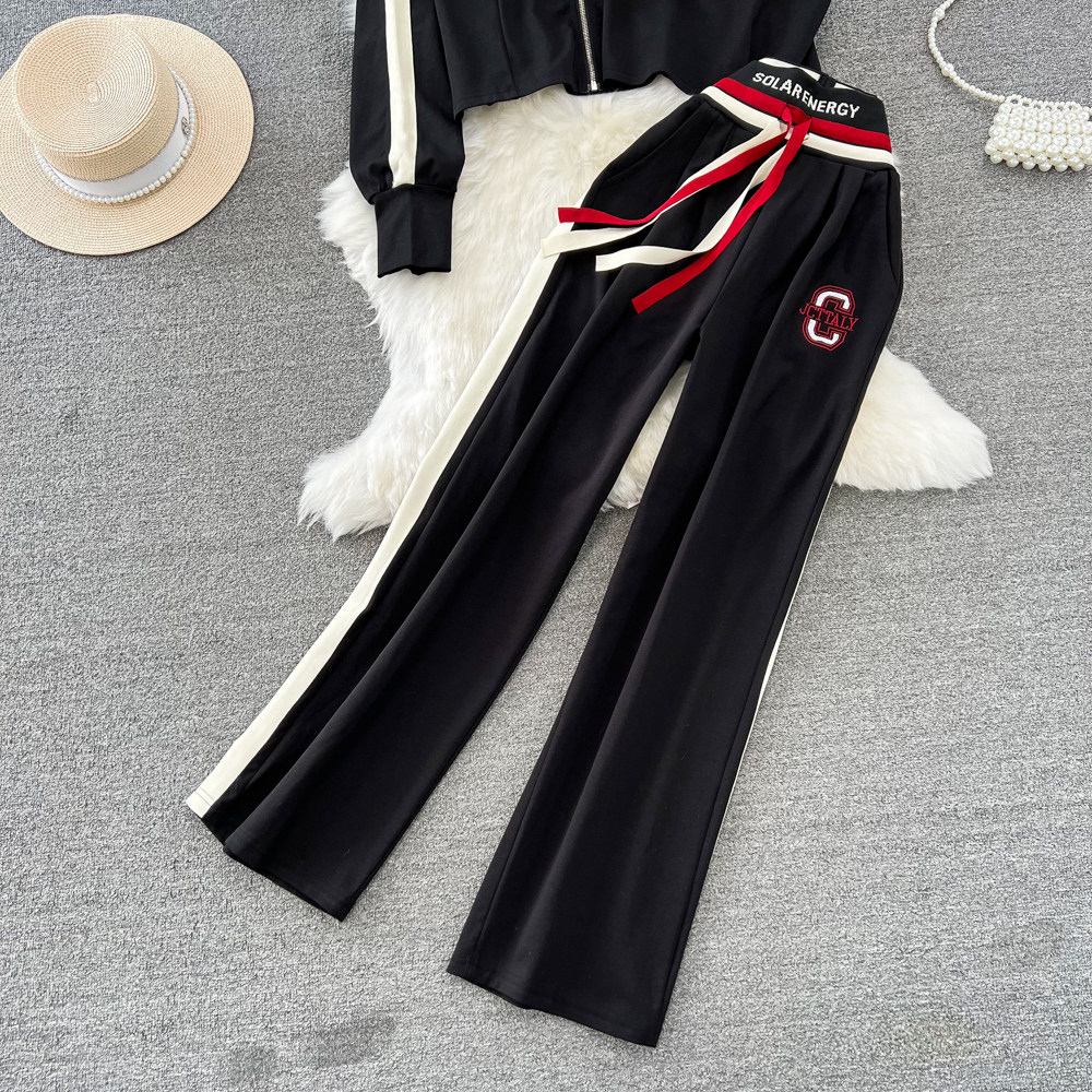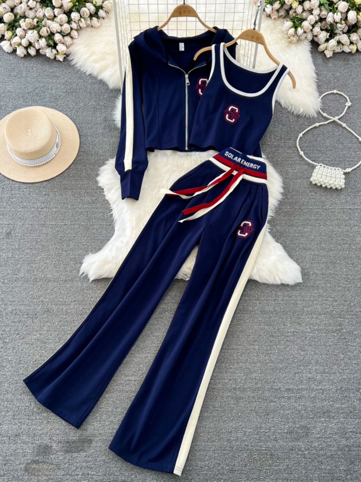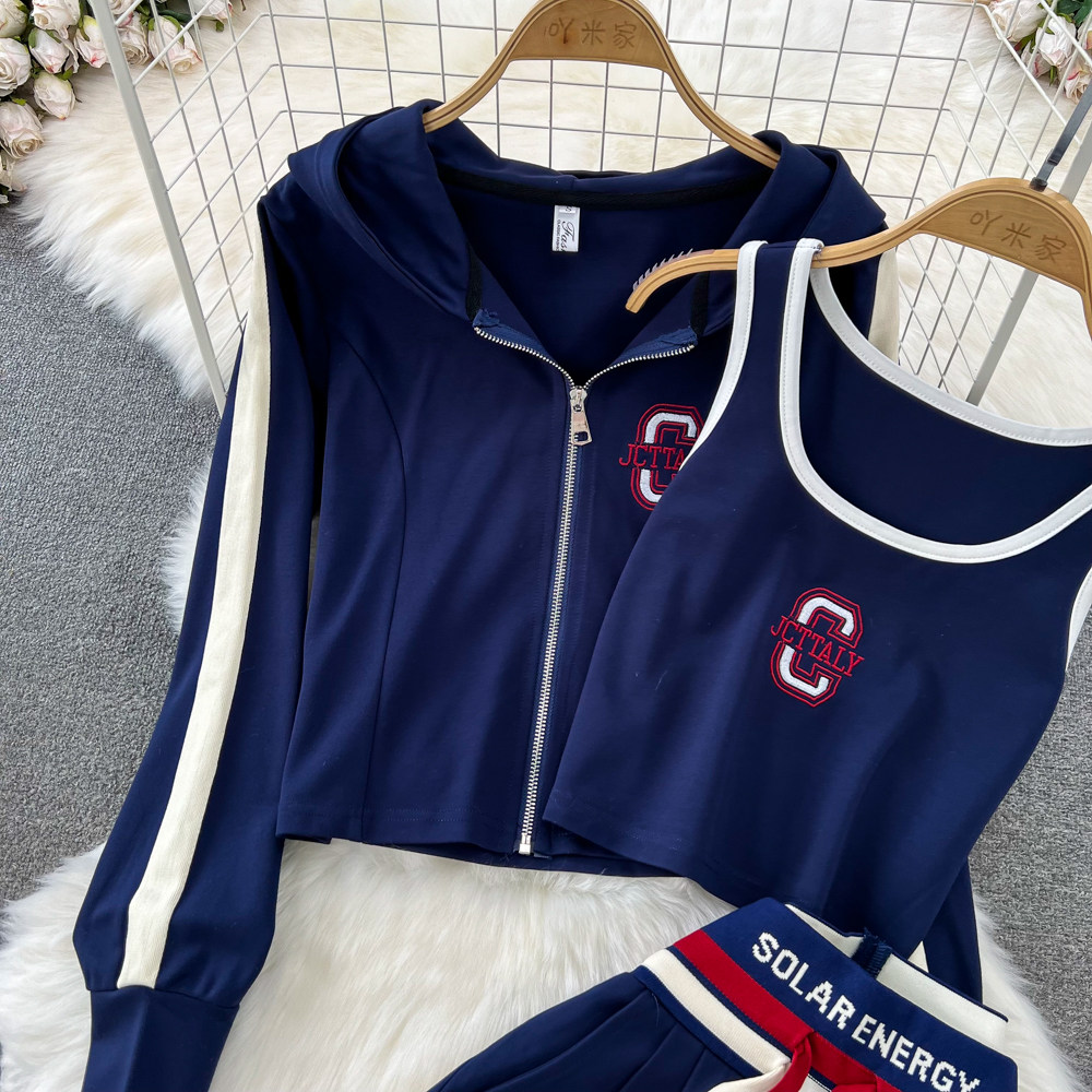 Комплект с молнией, толстовка с капюшоном, жилет, приталенные штаны, 3 предмета, высокая талия, свободный прямой крой