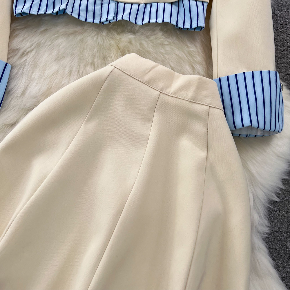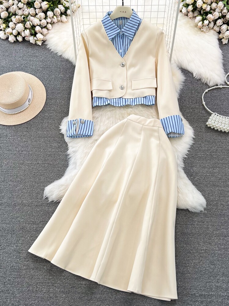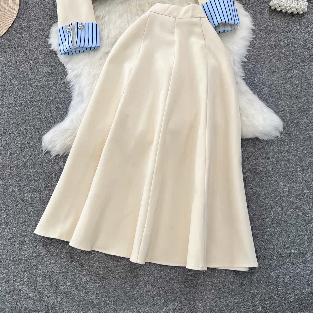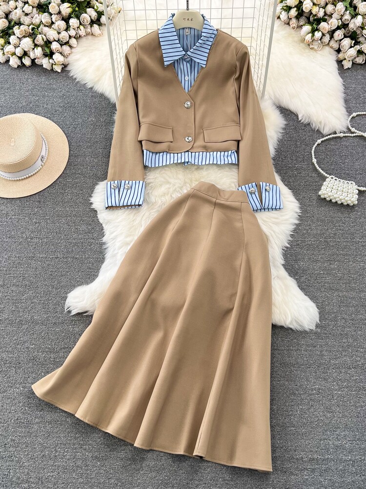 Дизайнерский комплект, костюм, юбка, тренд сезона, воротник поло, высокая талия