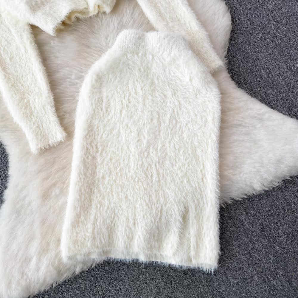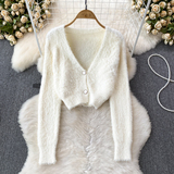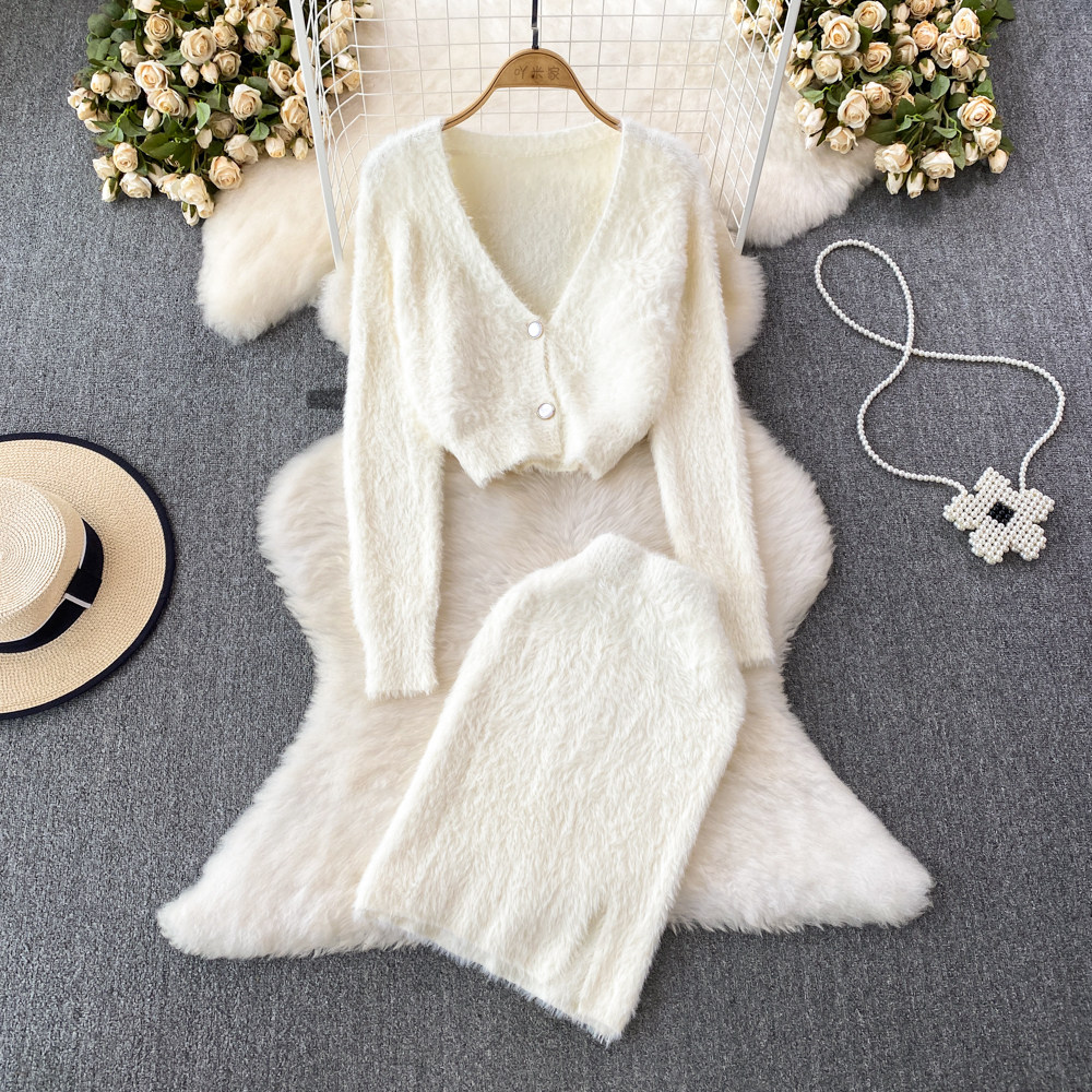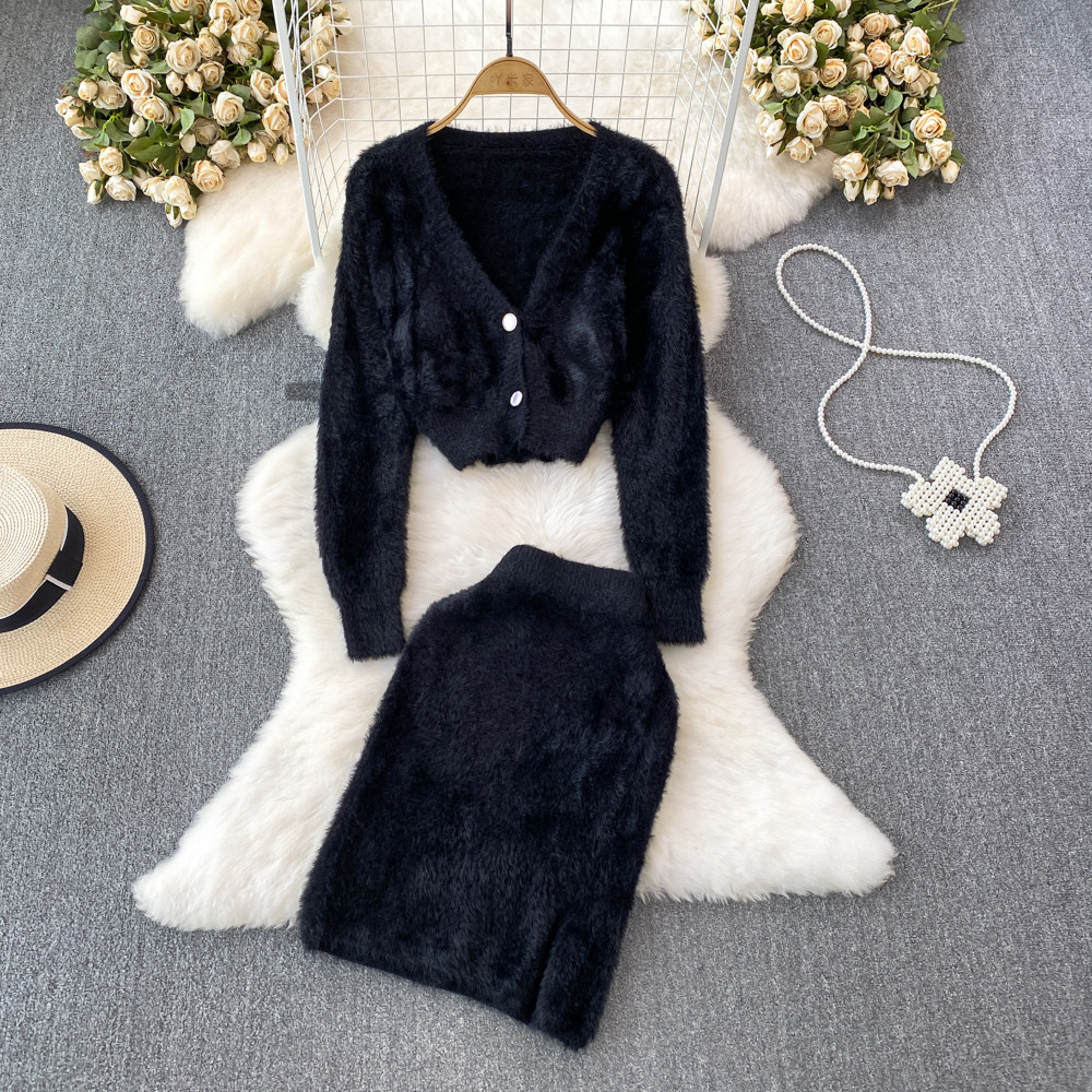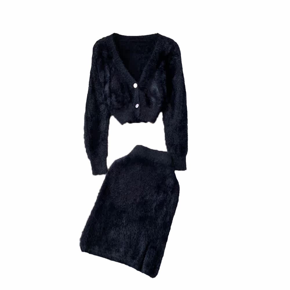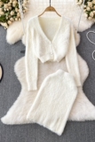Бархатный комплект, короткий свитер, куртка, поясная сумка, юбка, V-образный вырез, высокая талия