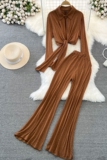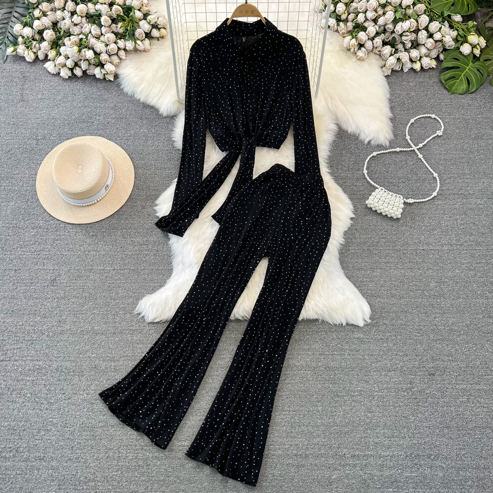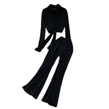 Комплект, лонгслив, приталенные штаны-клёш, штаны, в корейском стиле, высокая талия