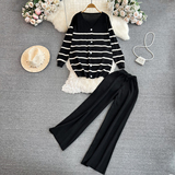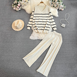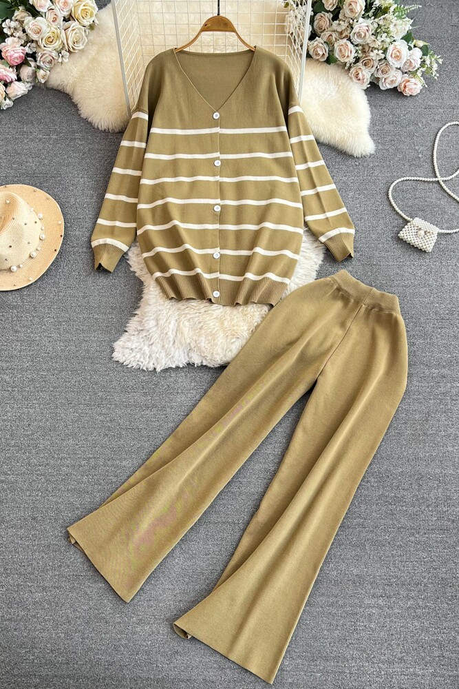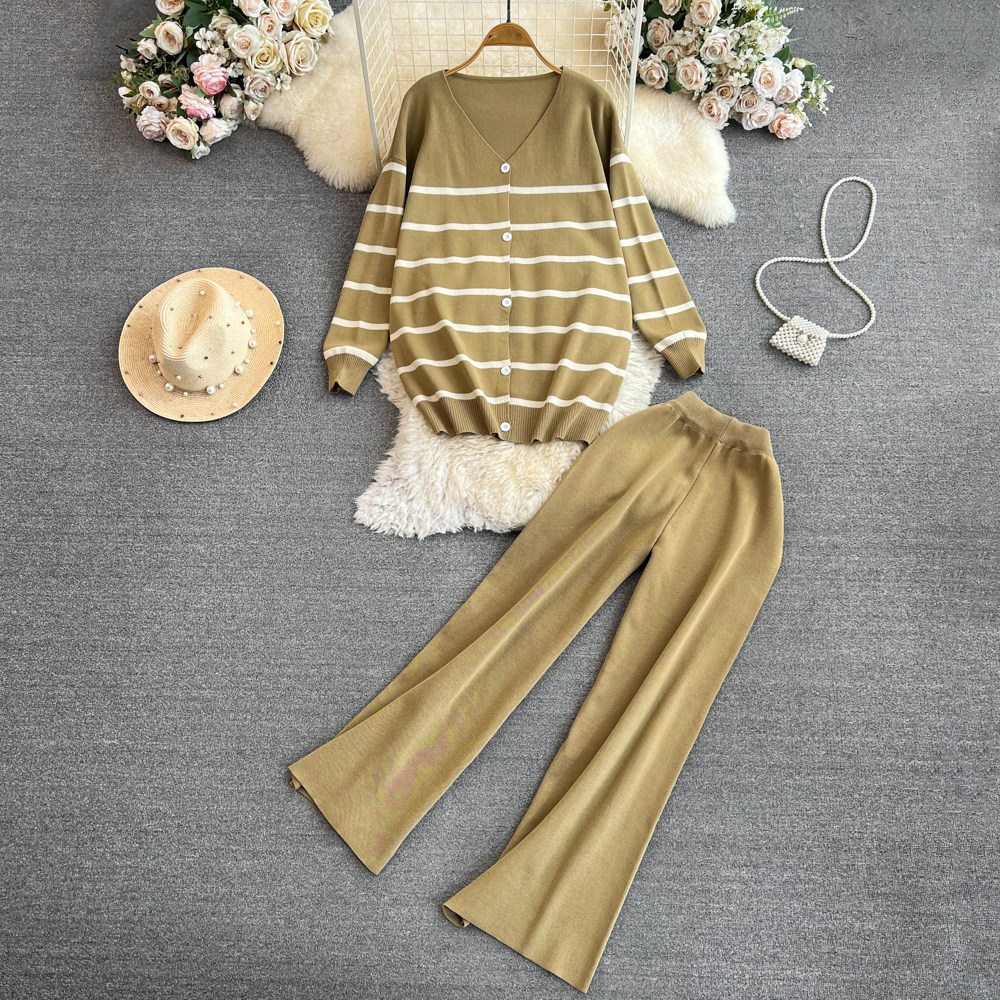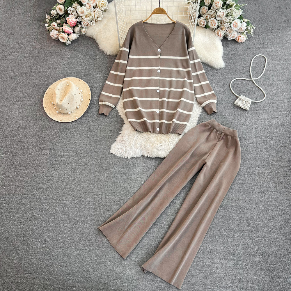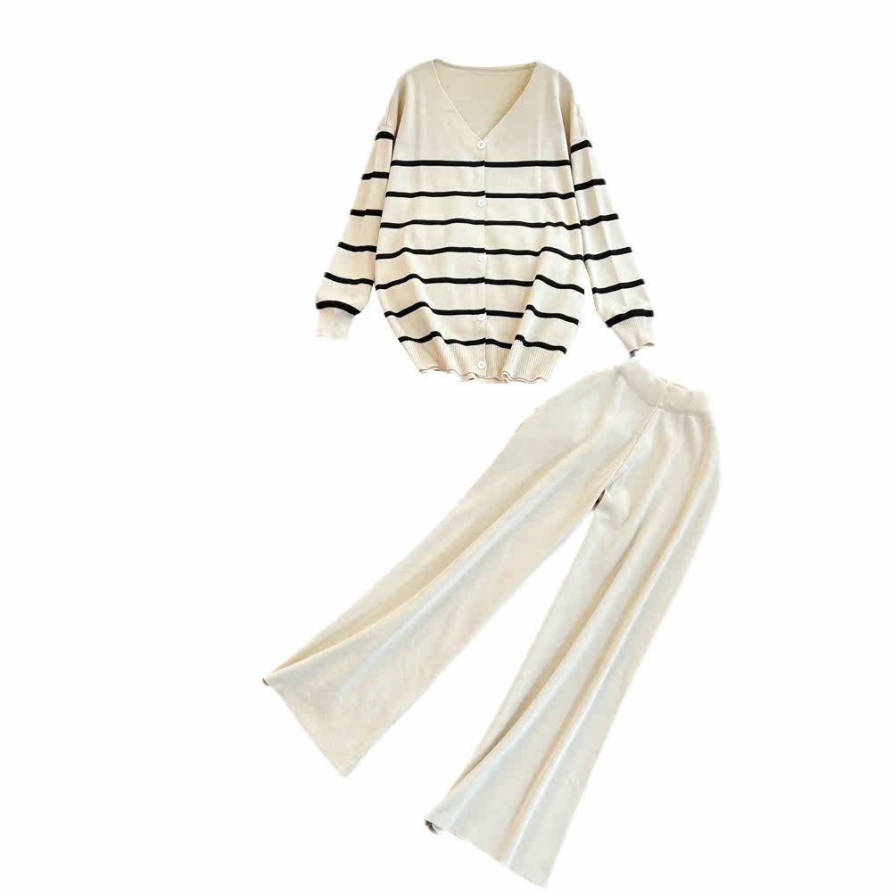 Комплект, лонгслив, трикотажная куртка, штаны, в корейском стиле, V-образный вырез, свободный крой, высокая талия