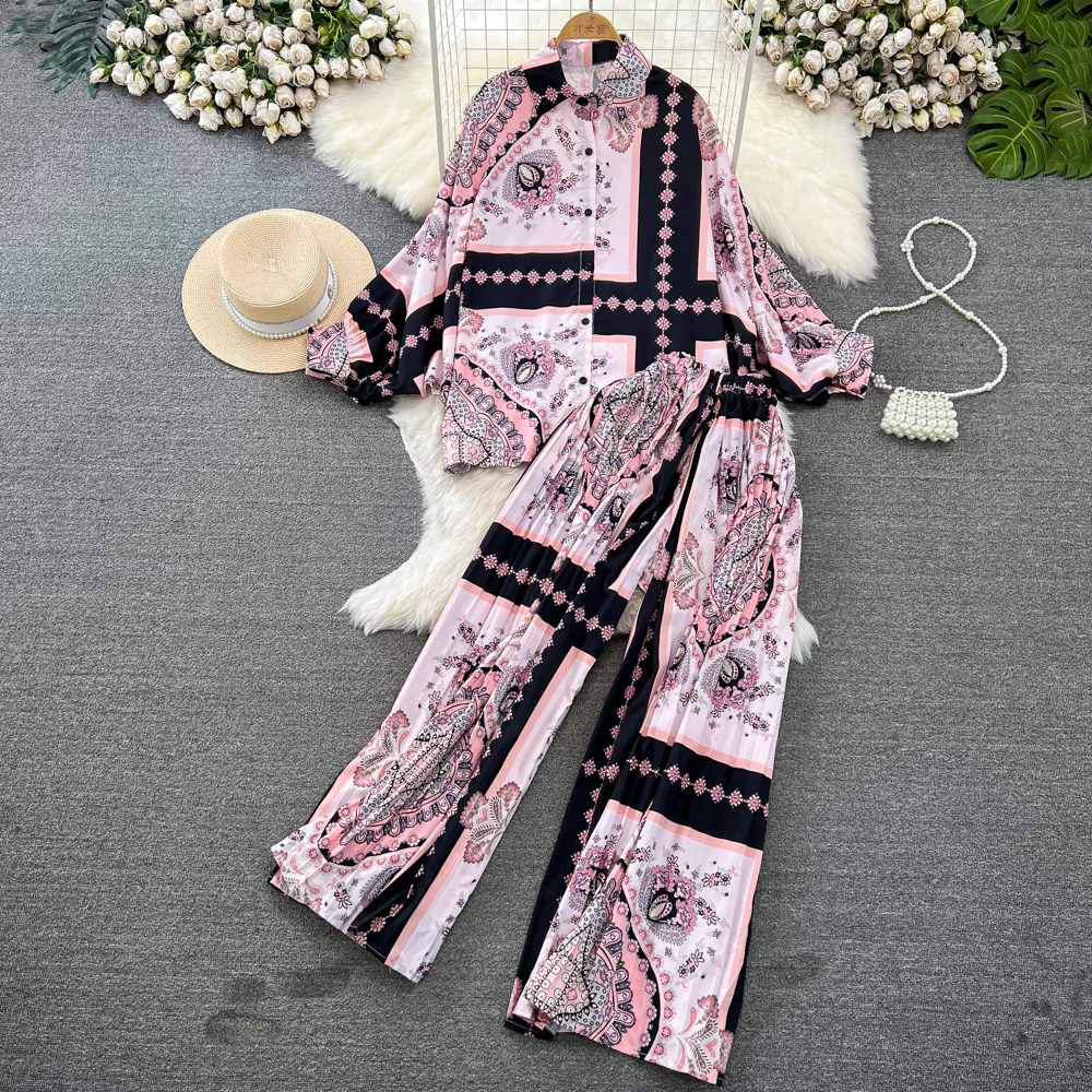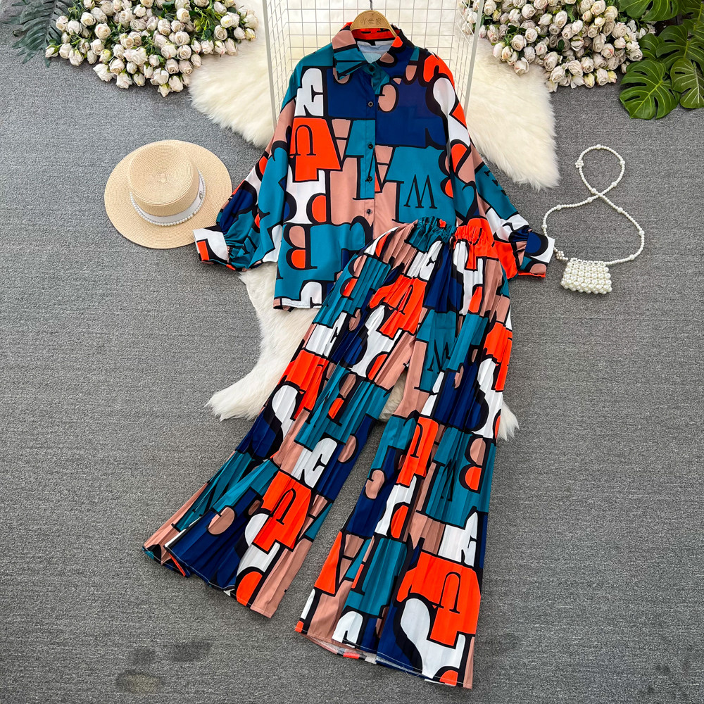 Комплект, лонгслив, приталенная рубашка, штаны, в корейском стиле, высокая талия, свободный прямой крой