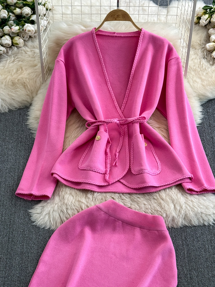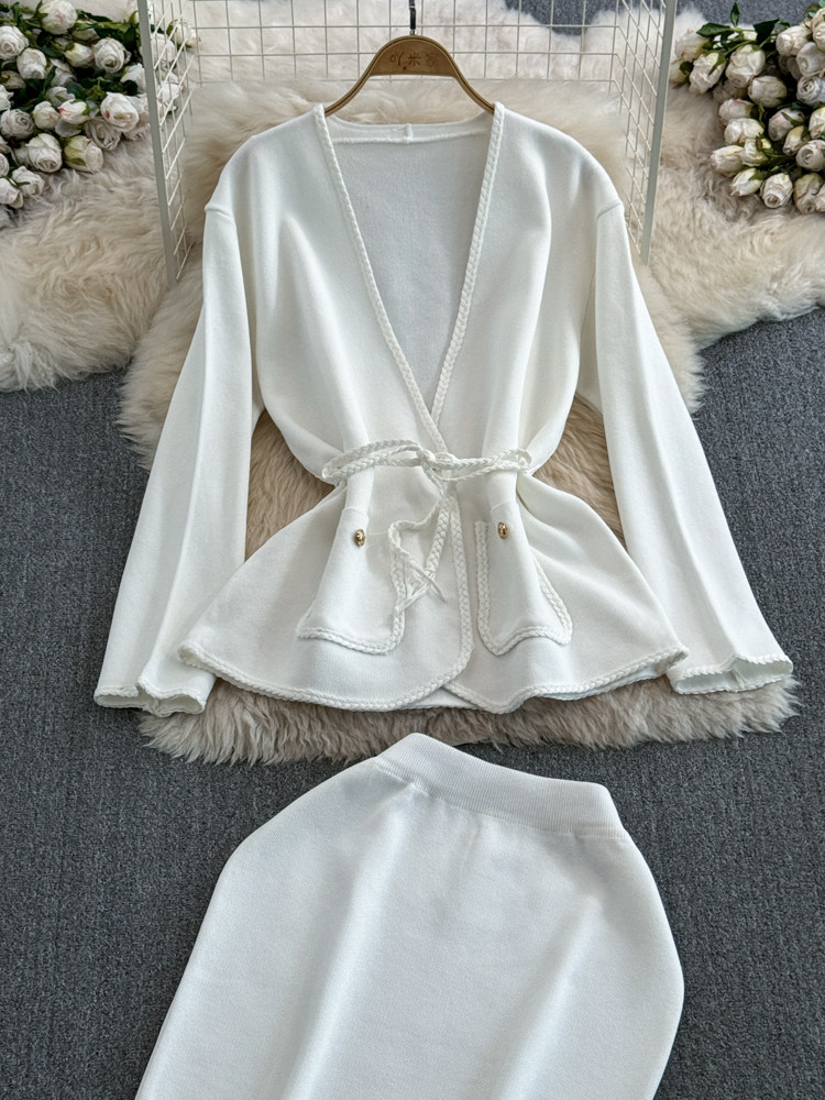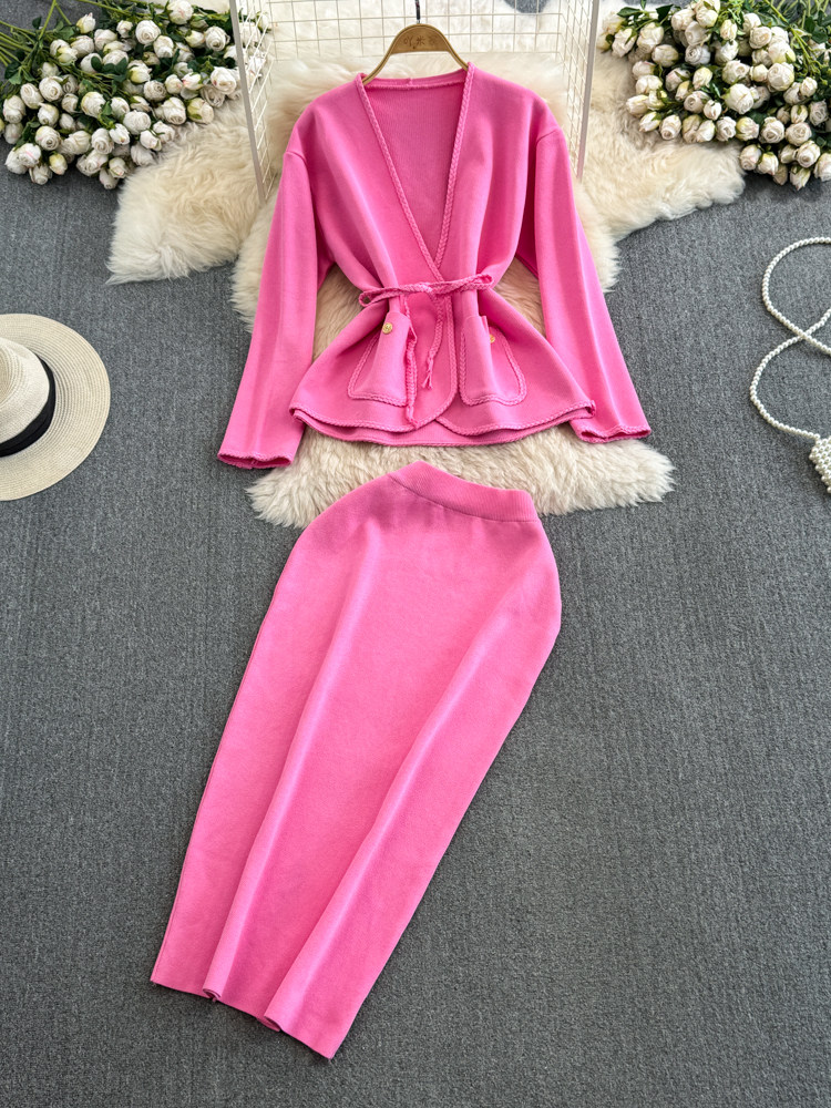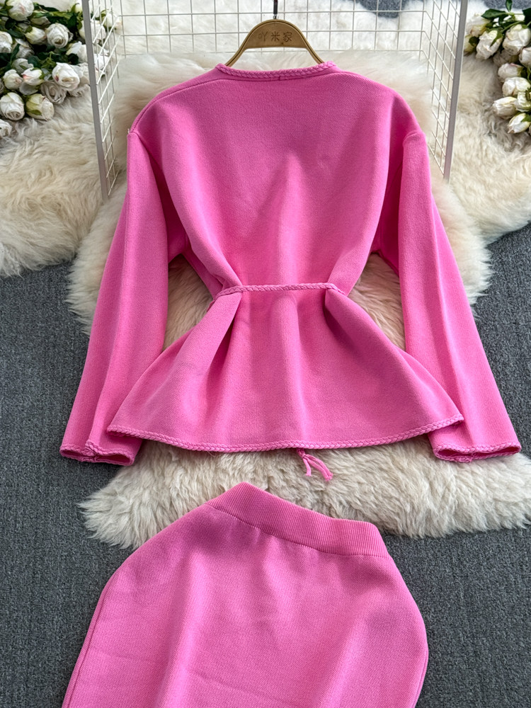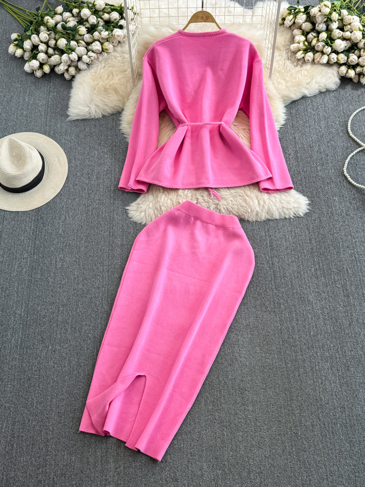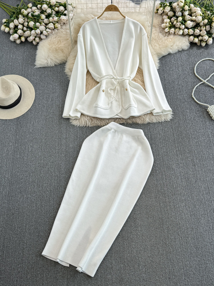 Комплект, лонгслив, приталенный корсет, трикотажная куртка, поясная сумка, юбка, V-образный вырез, высокая талия