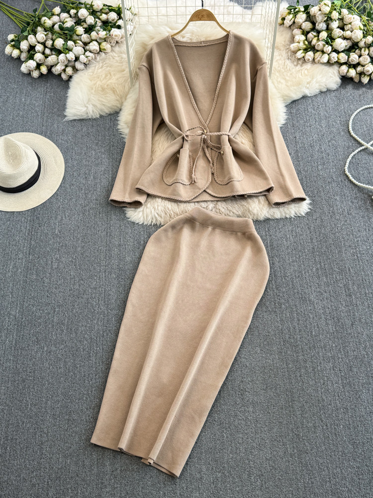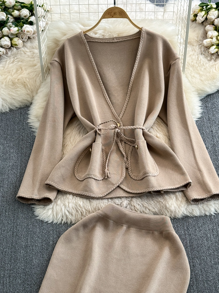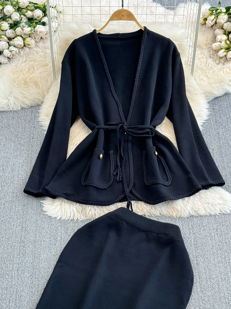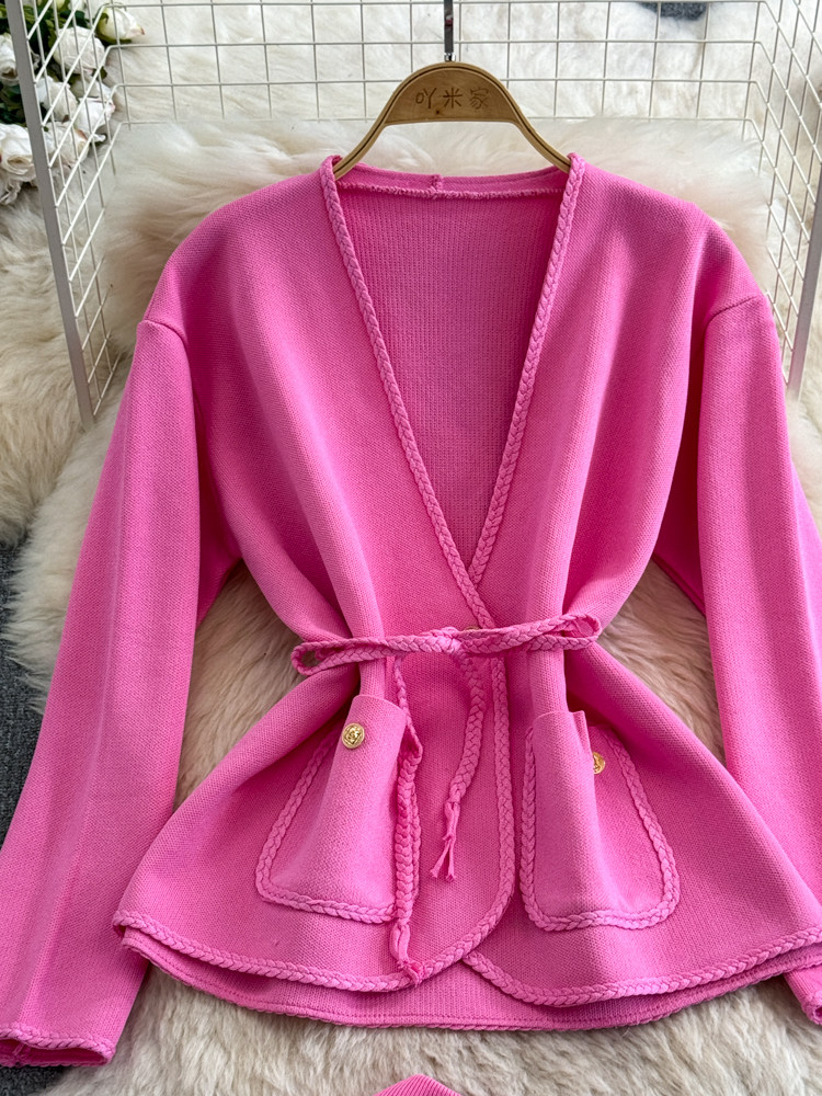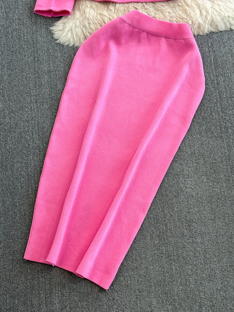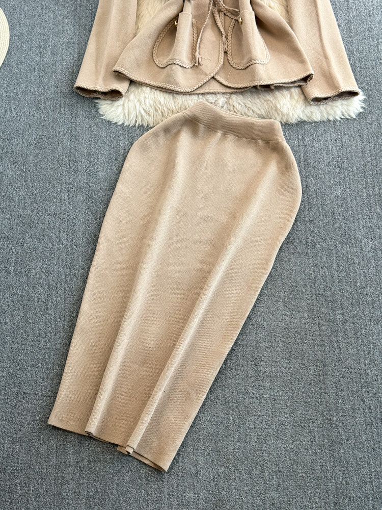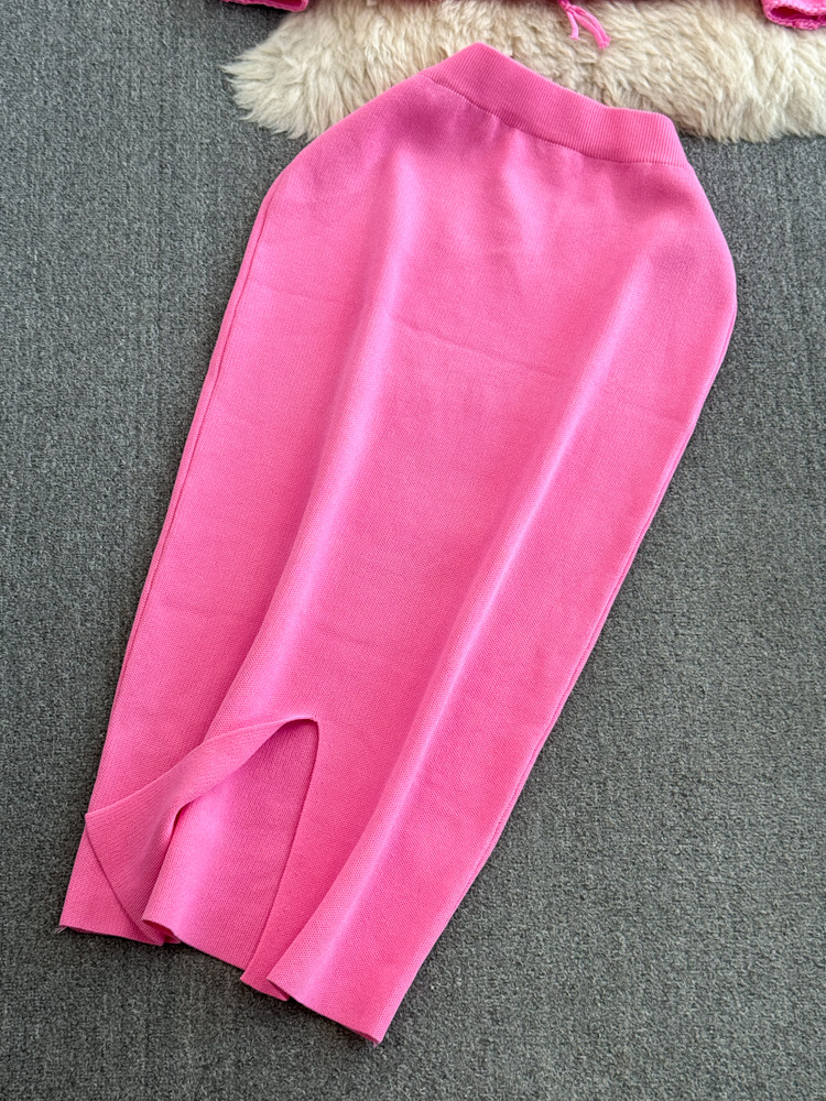 Комплект, лонгслив, приталенный корсет, трикотажная куртка, поясная сумка, юбка, V-образный вырез, высокая талия