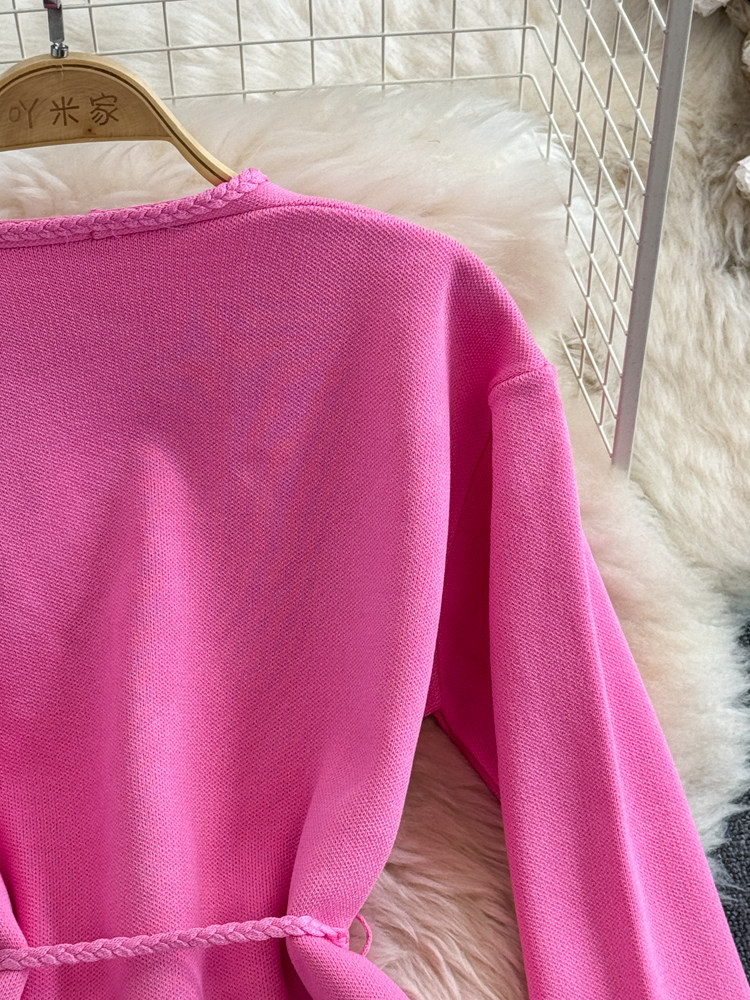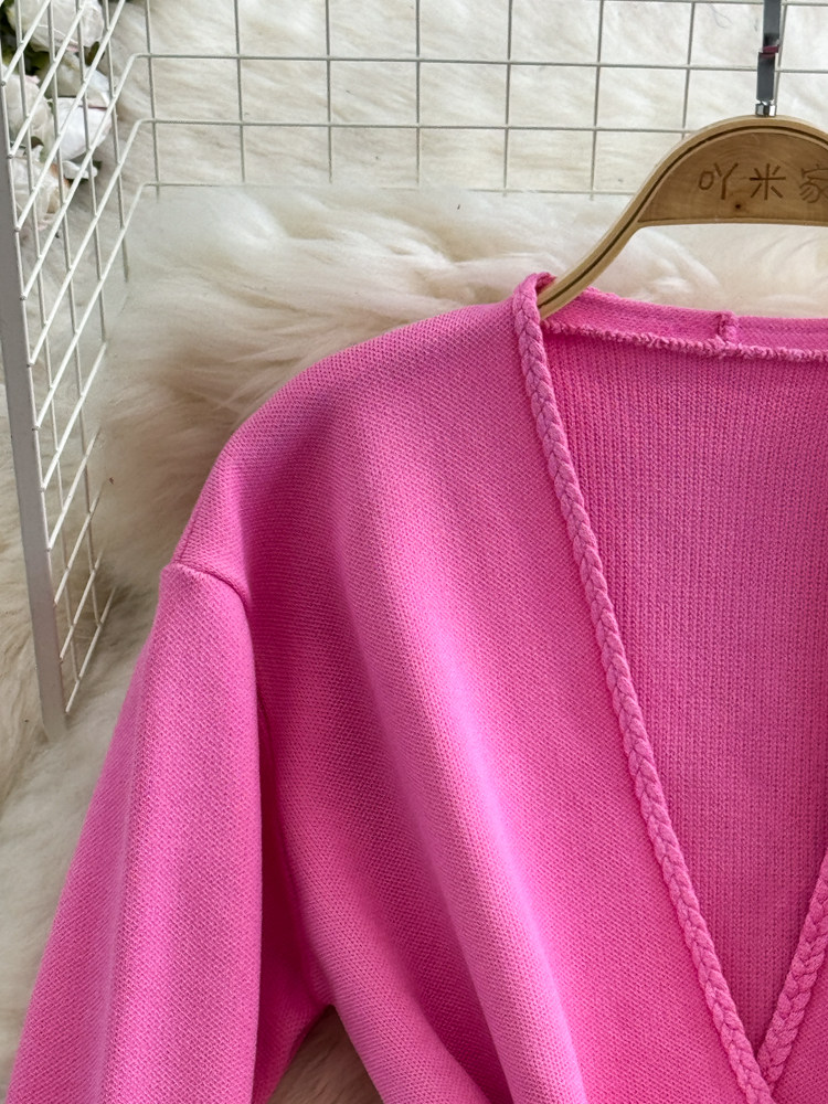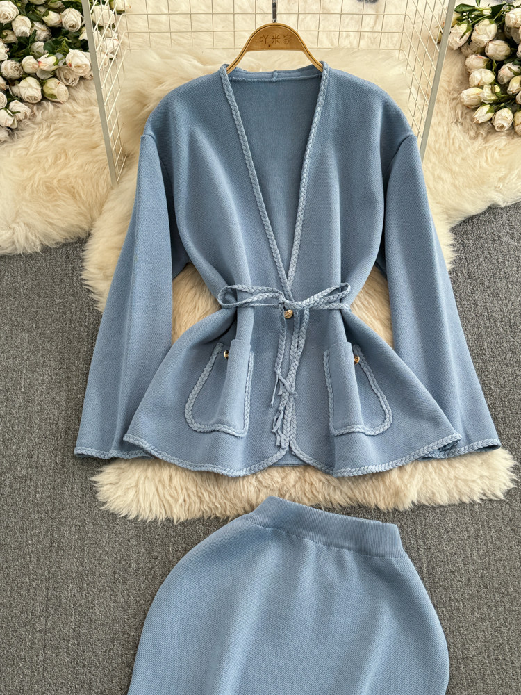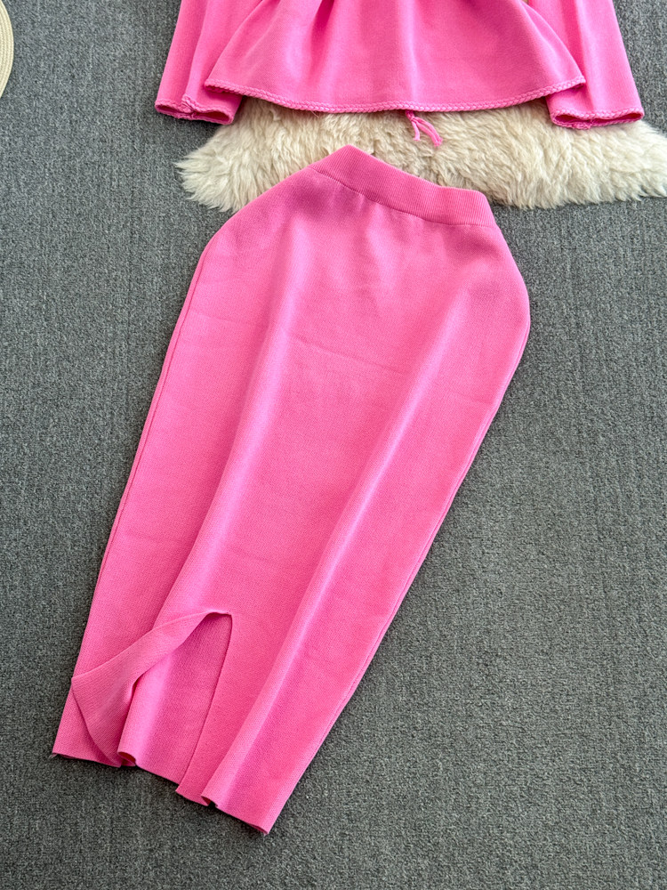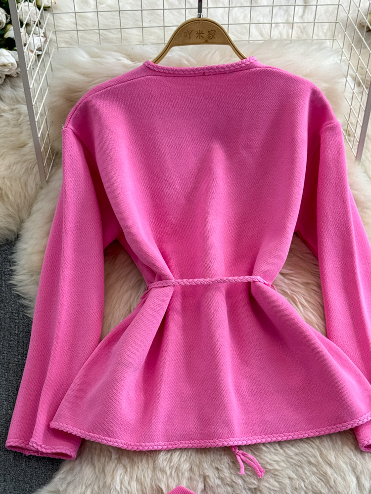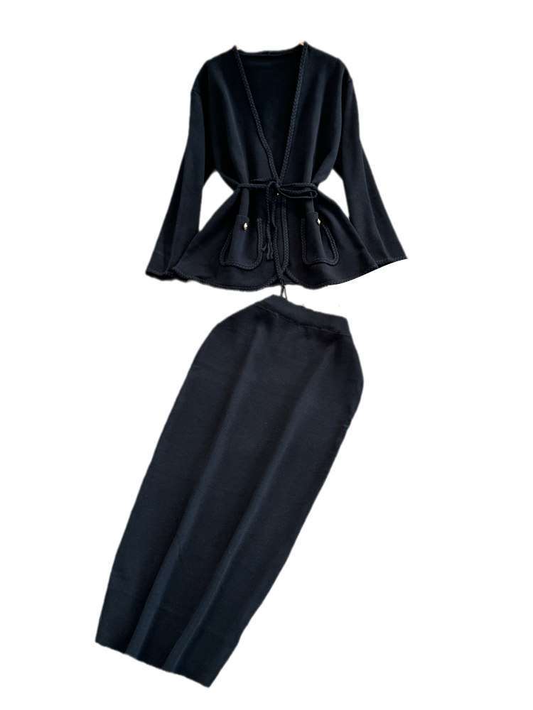 Комплект, лонгслив, приталенный корсет, трикотажная куртка, поясная сумка, юбка, V-образный вырез, высокая талия