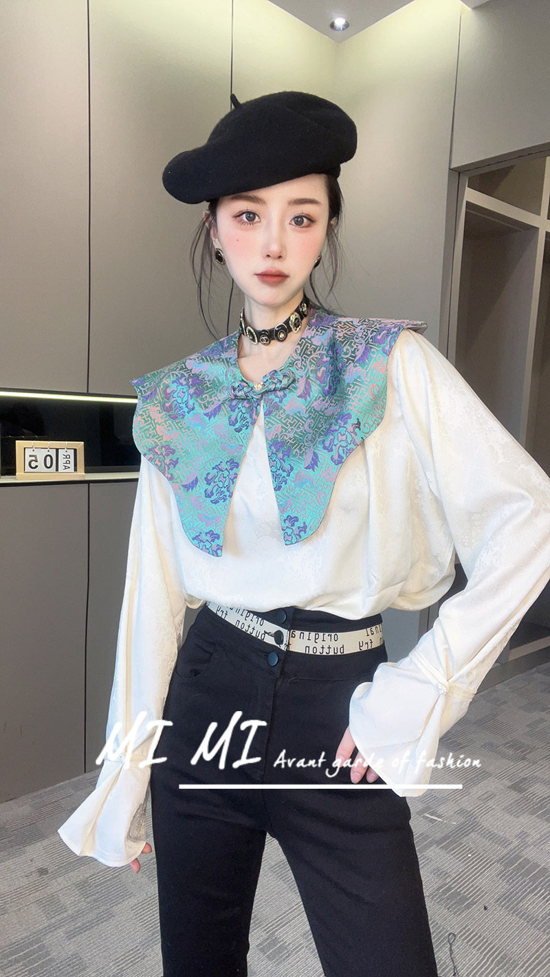Ретро воротник, базовый мегафон, приятный телу комплект, осенняя рубашка, новая коллекция, европейский стиль
