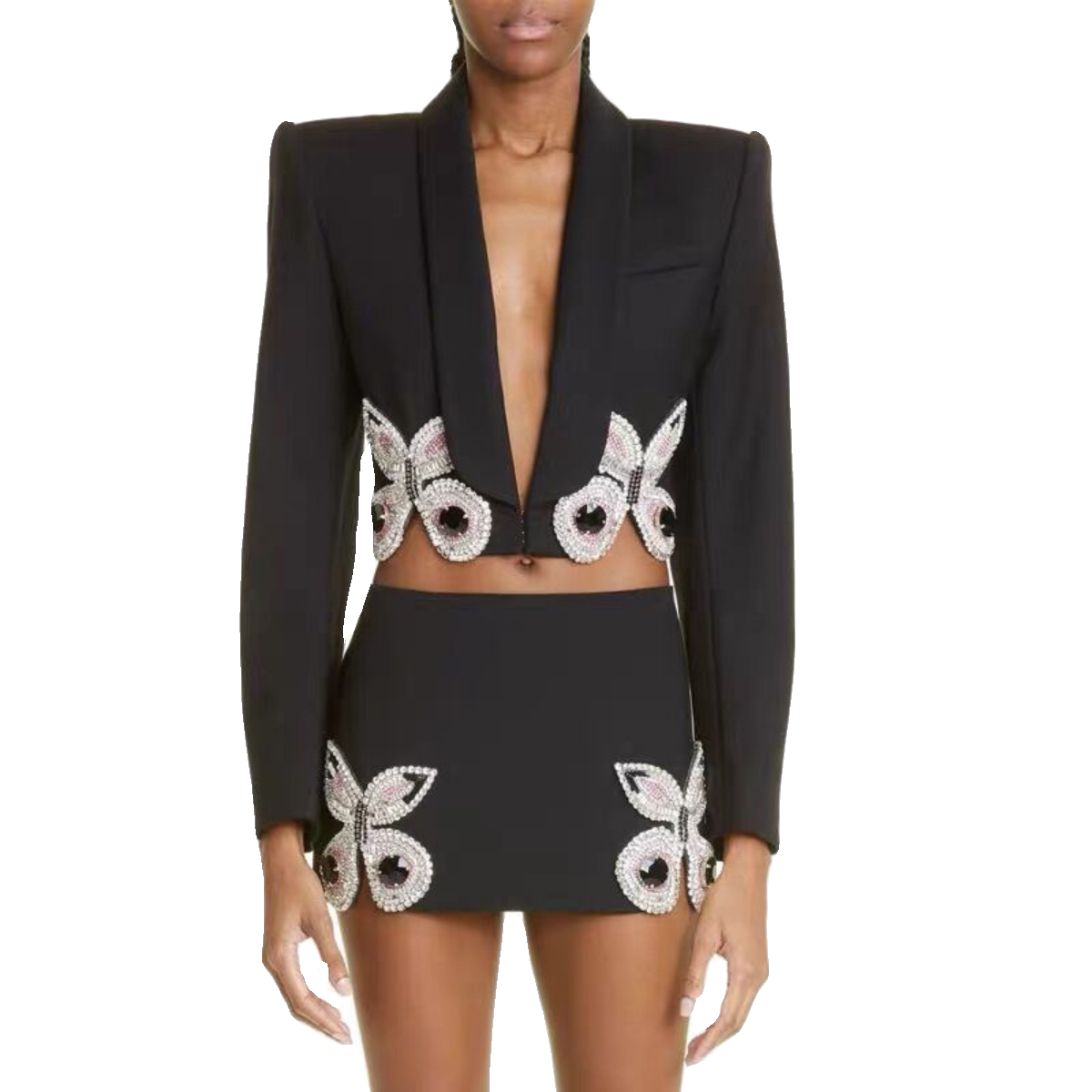 Бусины, короткий костюм, юбка, комплект