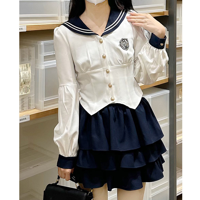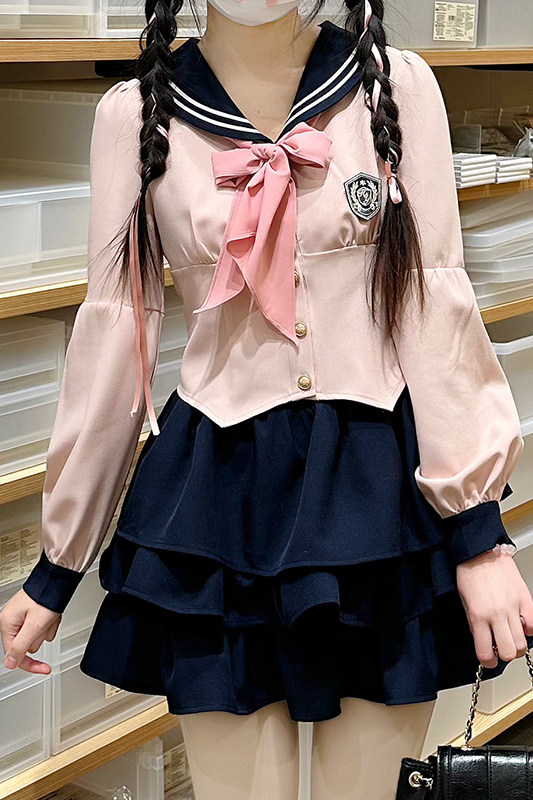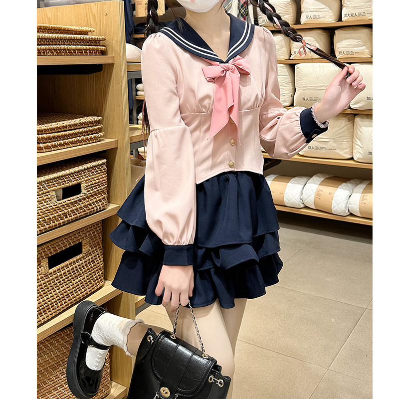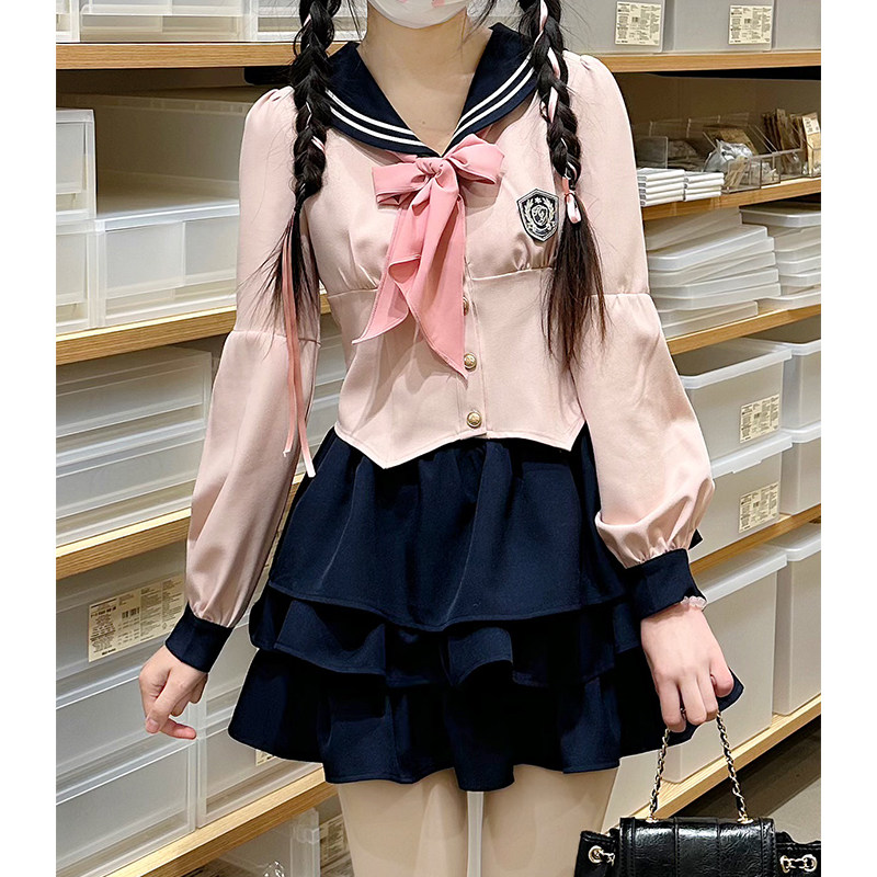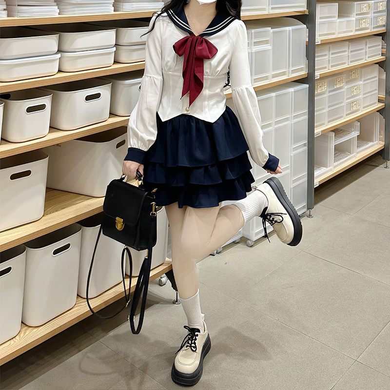Оригинальная студенческая юбка в складку, весенняя летняя рубашка, корсет, японский комплект