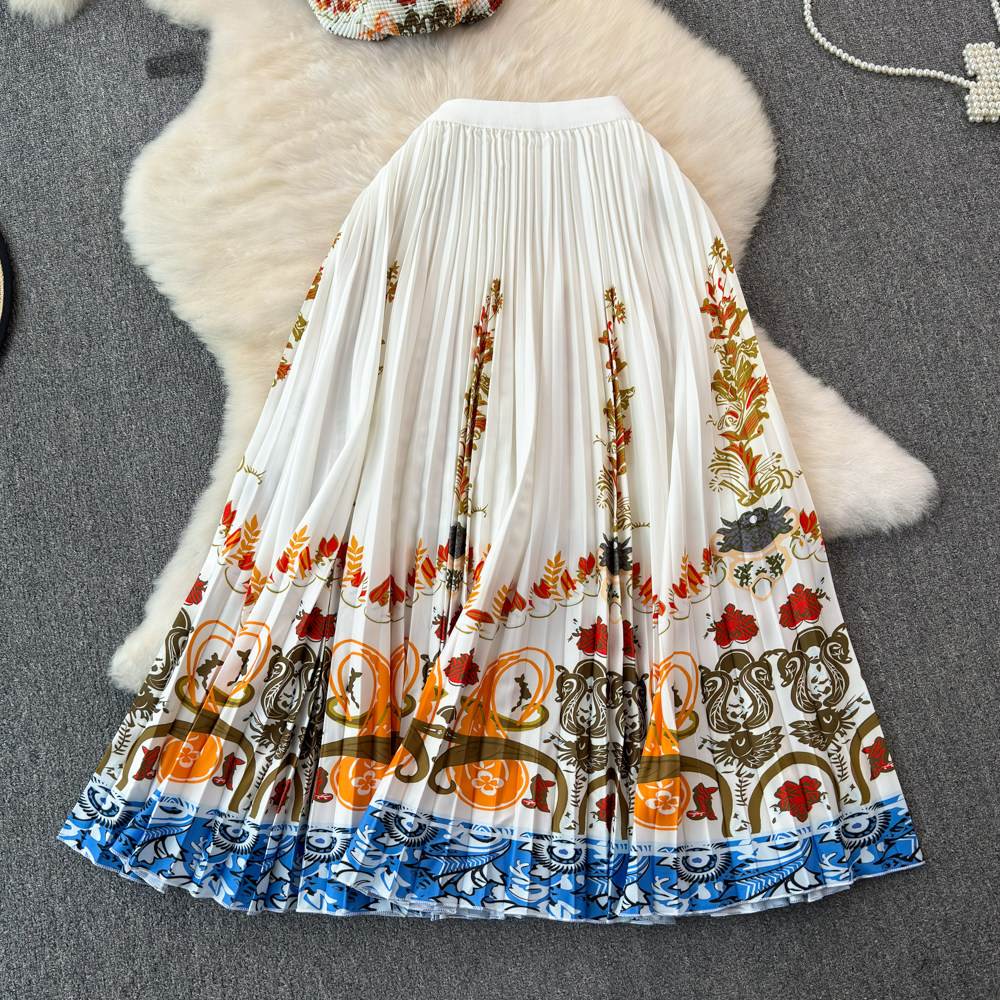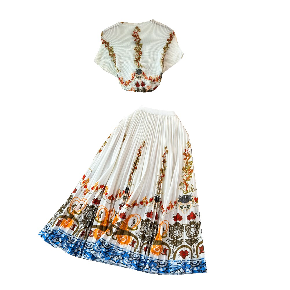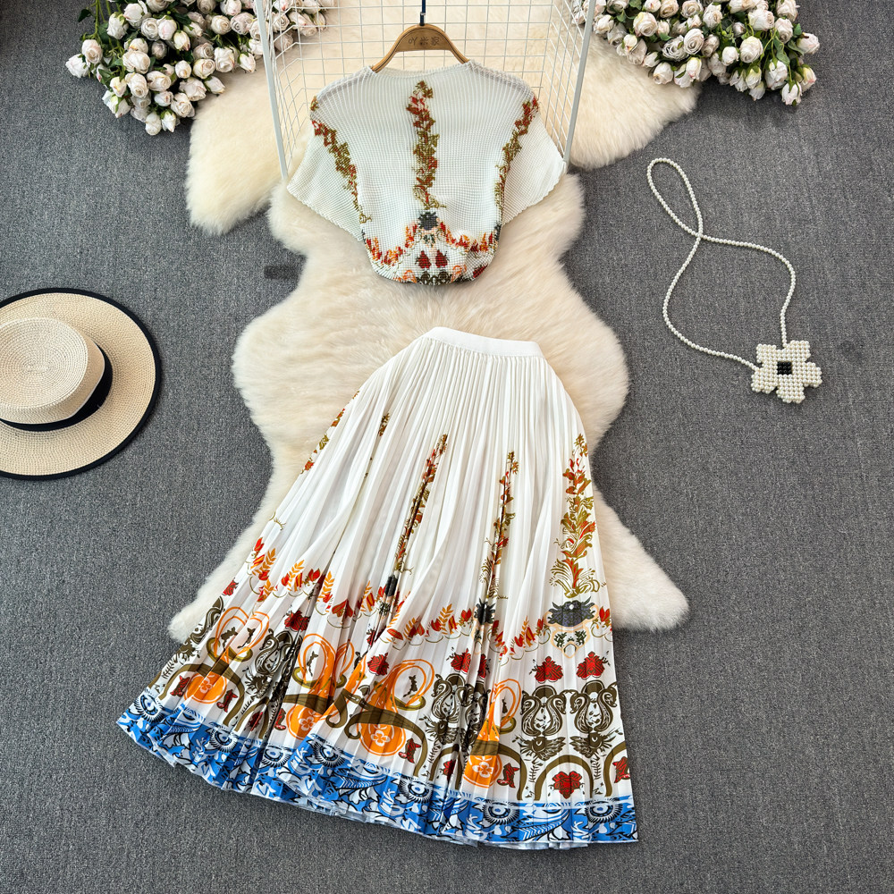 Этническая летняя одежда, эластичный комплект, юбка в складку, этнический стиль, высокая талия, плиссированная юбка